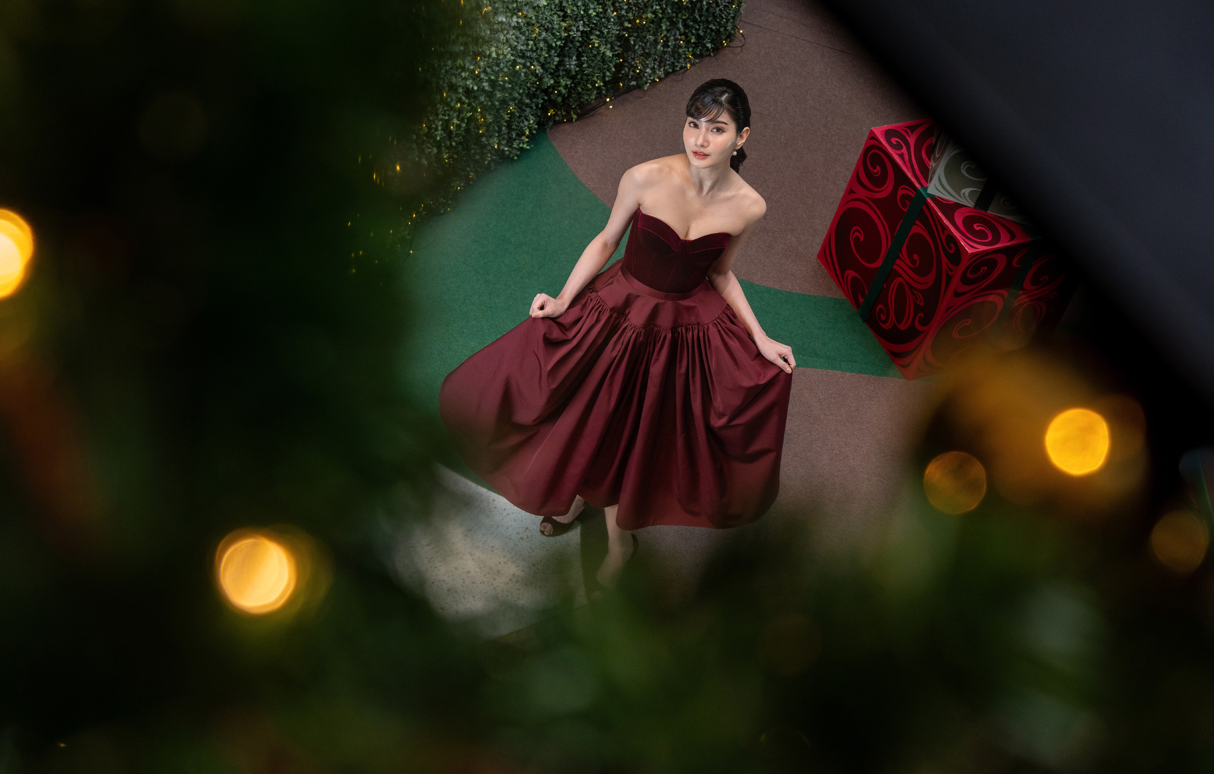 Red Tulle Net Skirt With Satin Crepe Waistband
