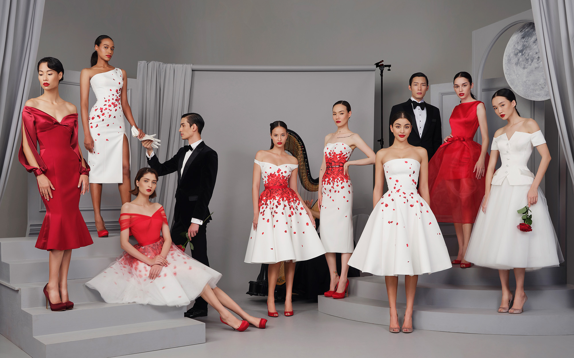 When POEM ladies are in full bloom, their beauties are radiated with elegance and mysterious sensation. Many shades of darker red representing the alluring essence of feminine charm eventually become the key idea for the sequel concept. With this, Timeless Chapter I also draws forth the stories of celestial phenomenon that gives off darker tones of red color, such as the Lunar eclipse and Blood Moon. Another highlight of the collection involves the creation of structural hourglass-shaped 1950s silhouette, incorporated by the tactful use of reddish color schemes such as maroon, black, and dark-red. All are presented on the garments through the house’s signature ombré techniques, playing with shades of light and shadow, and creating the glamorous femme-fatal look. “POEM Timeless Collection” is an ultimate compendium that truly reflects the house’s 15 years journey on the quest for creating beauty for every woman. It emphasizes the house’s identity where architectural perspectives intertwined with dress making techniques. This collection marks a wondrous journey for the Thai designer brand in tearing down the boundary and reaching out into a new realm, so that POEM can pass on the perfect aesthetic to modern Chinese women, fulfilling them with confidence to become the shining star in their own rights.