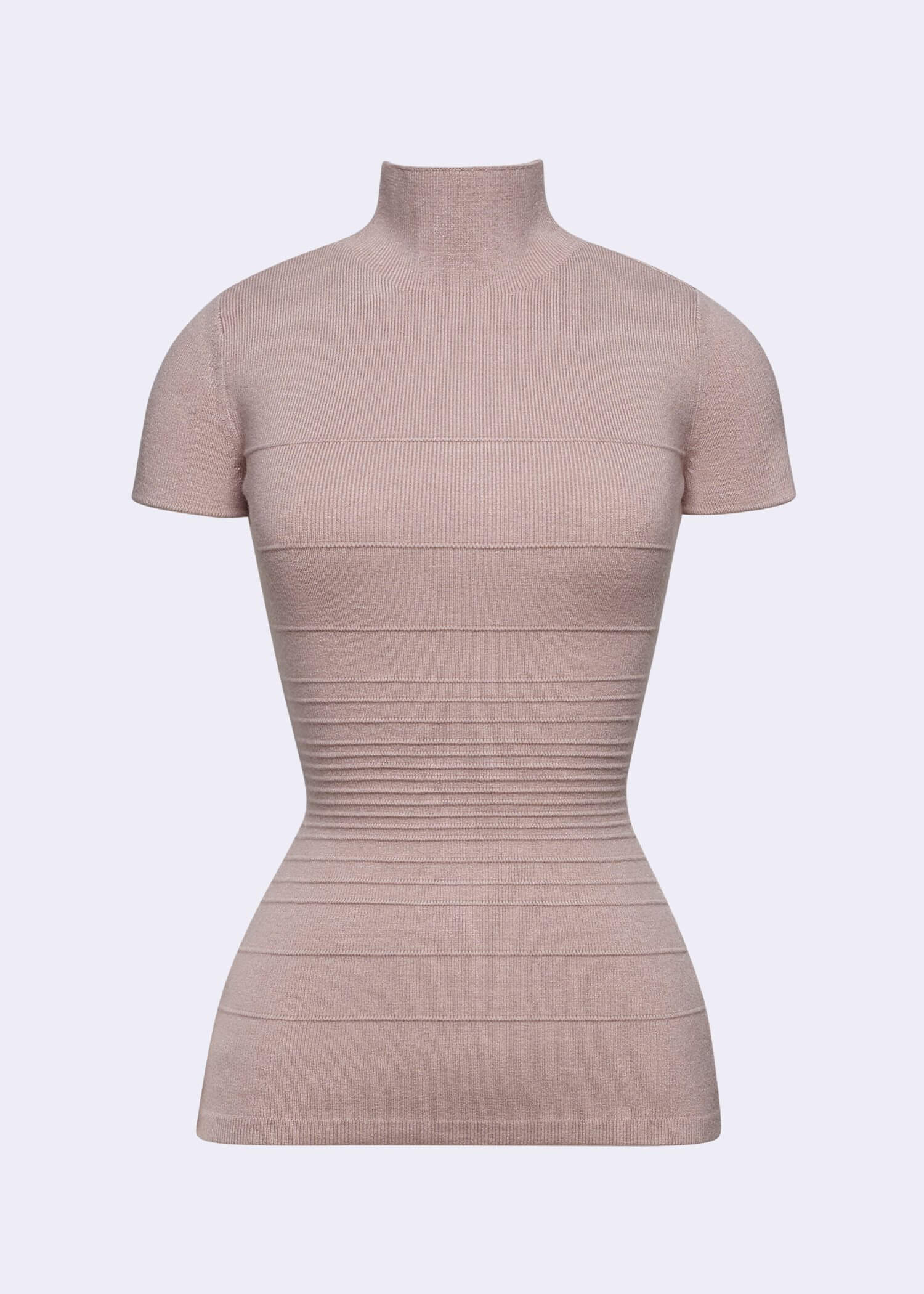Jumping off with the intrigued fascination behind body anatomy, perky and eccentric methods of layering were carried all the way throughout the collection with assorted flairs. By design, the structured corsets were styled over the downy high collar knitted pieces, incarnating the antithetical forming of flesh and bones.