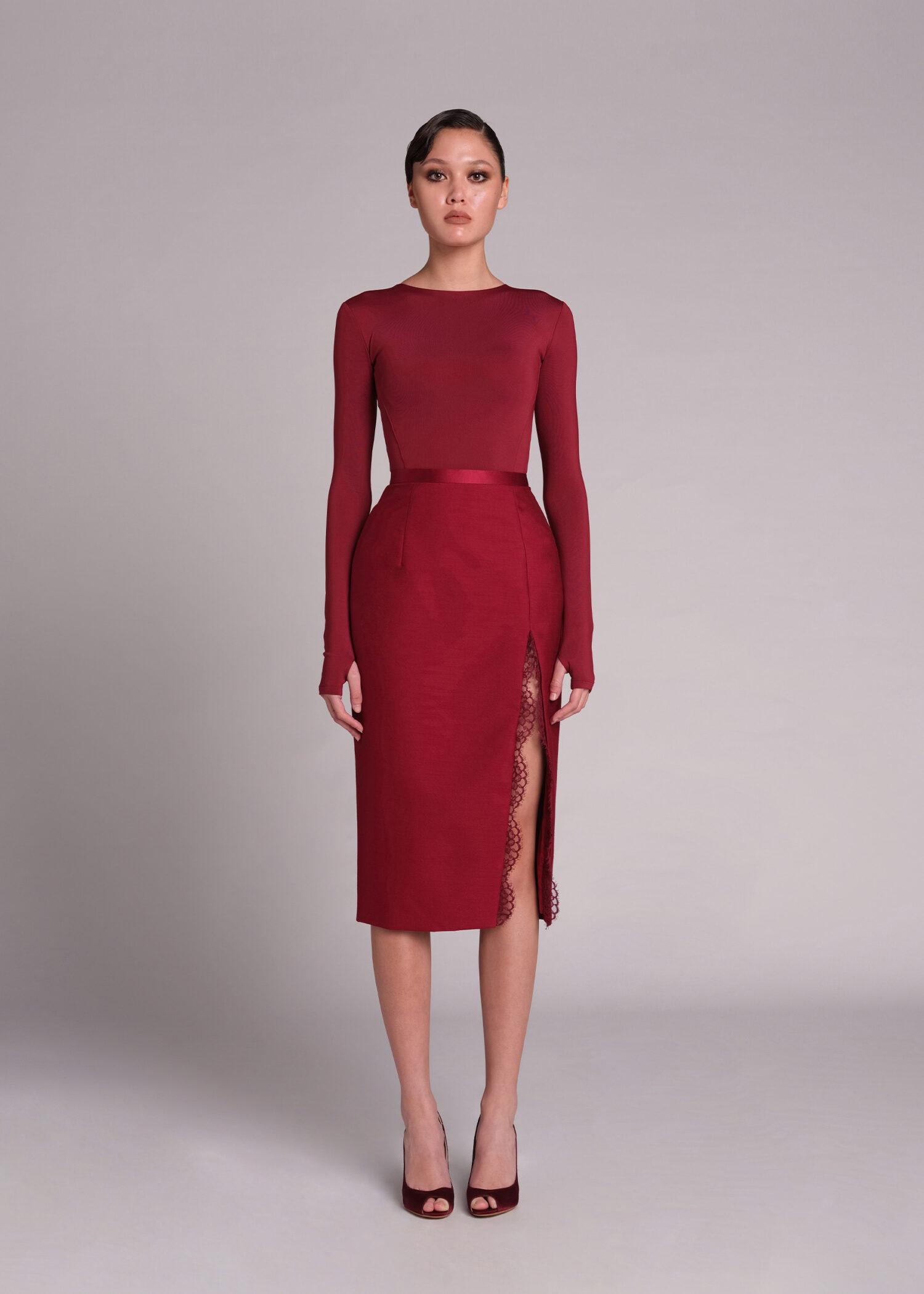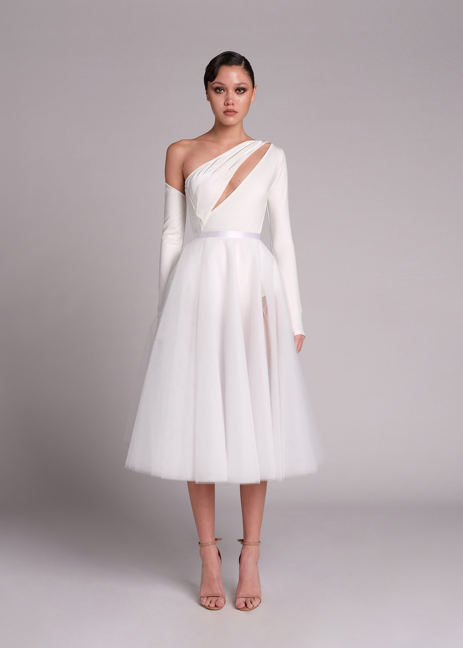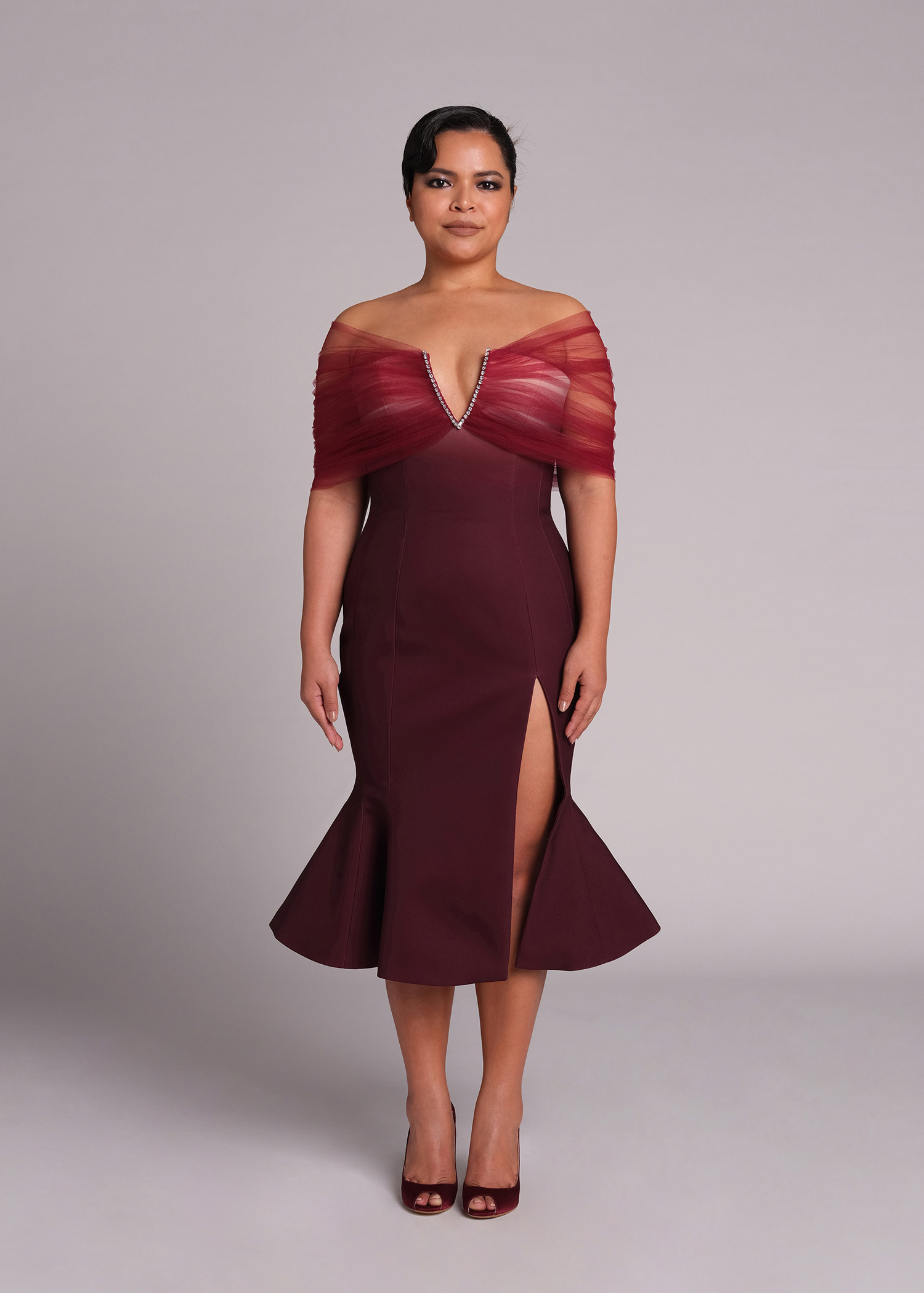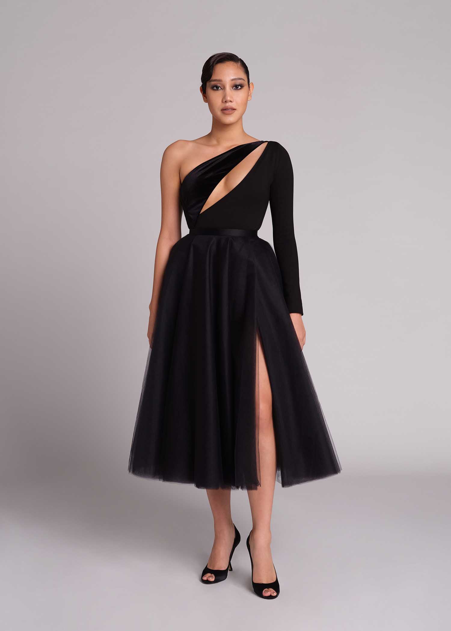 As the precise perspective lines are transposed from finely draped jersey skirts, magnifying the lines of the hips to daring slashed bodice details, each masterpiece shows an opulent expression and androgynous grace. The collection arrays just the right combination of classic and audacity, heart-made to compliment bodies of all shapes and sizes.