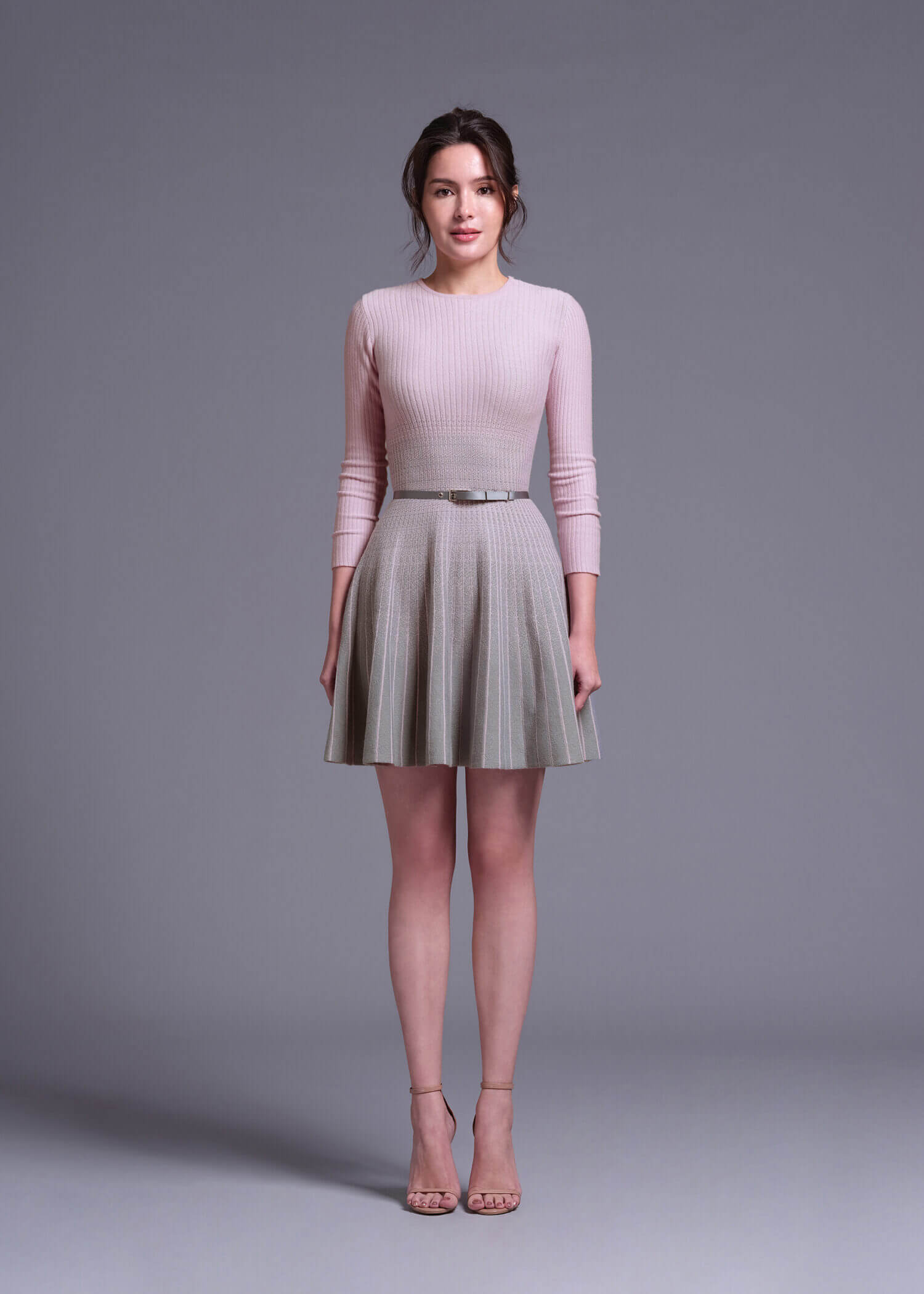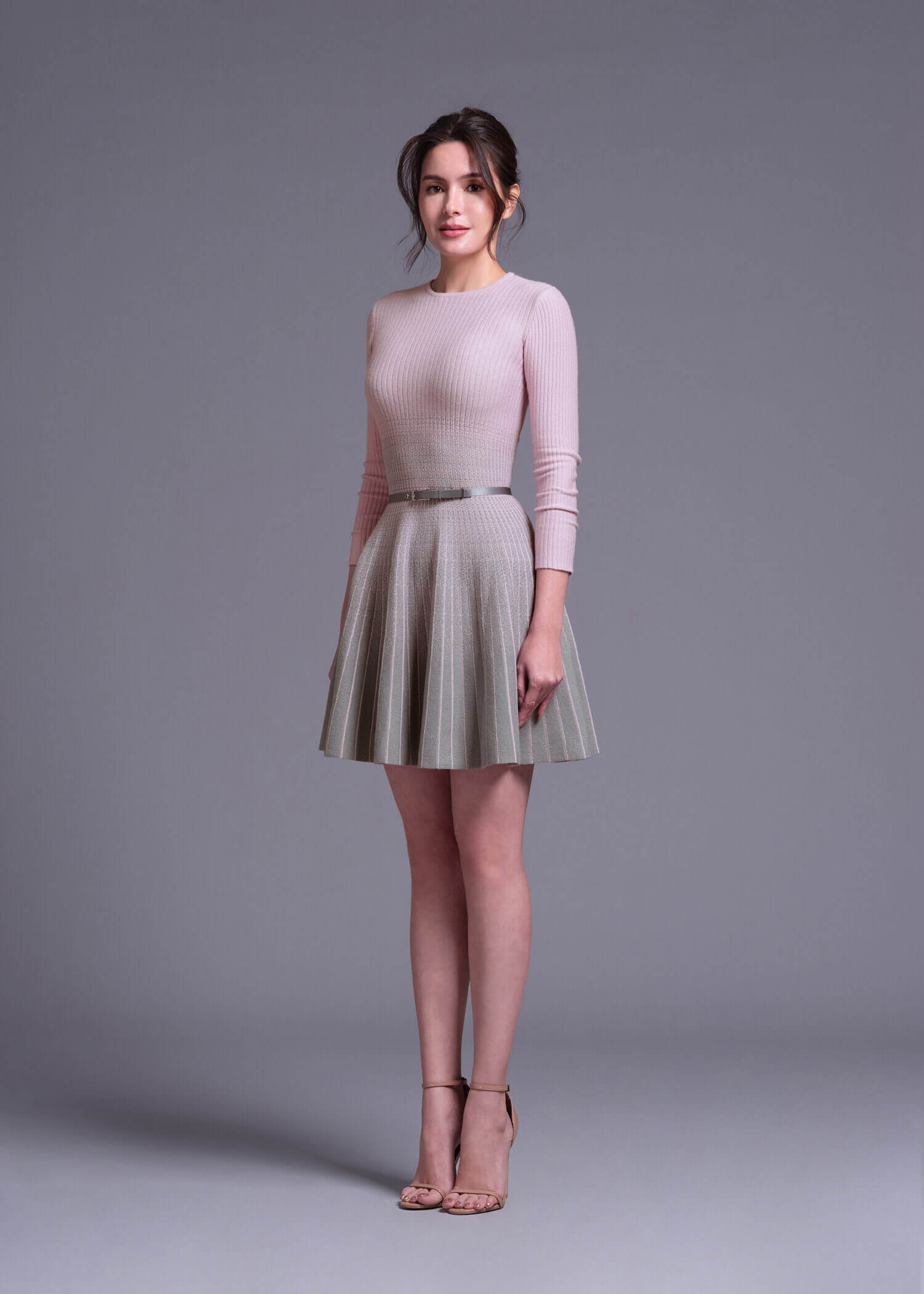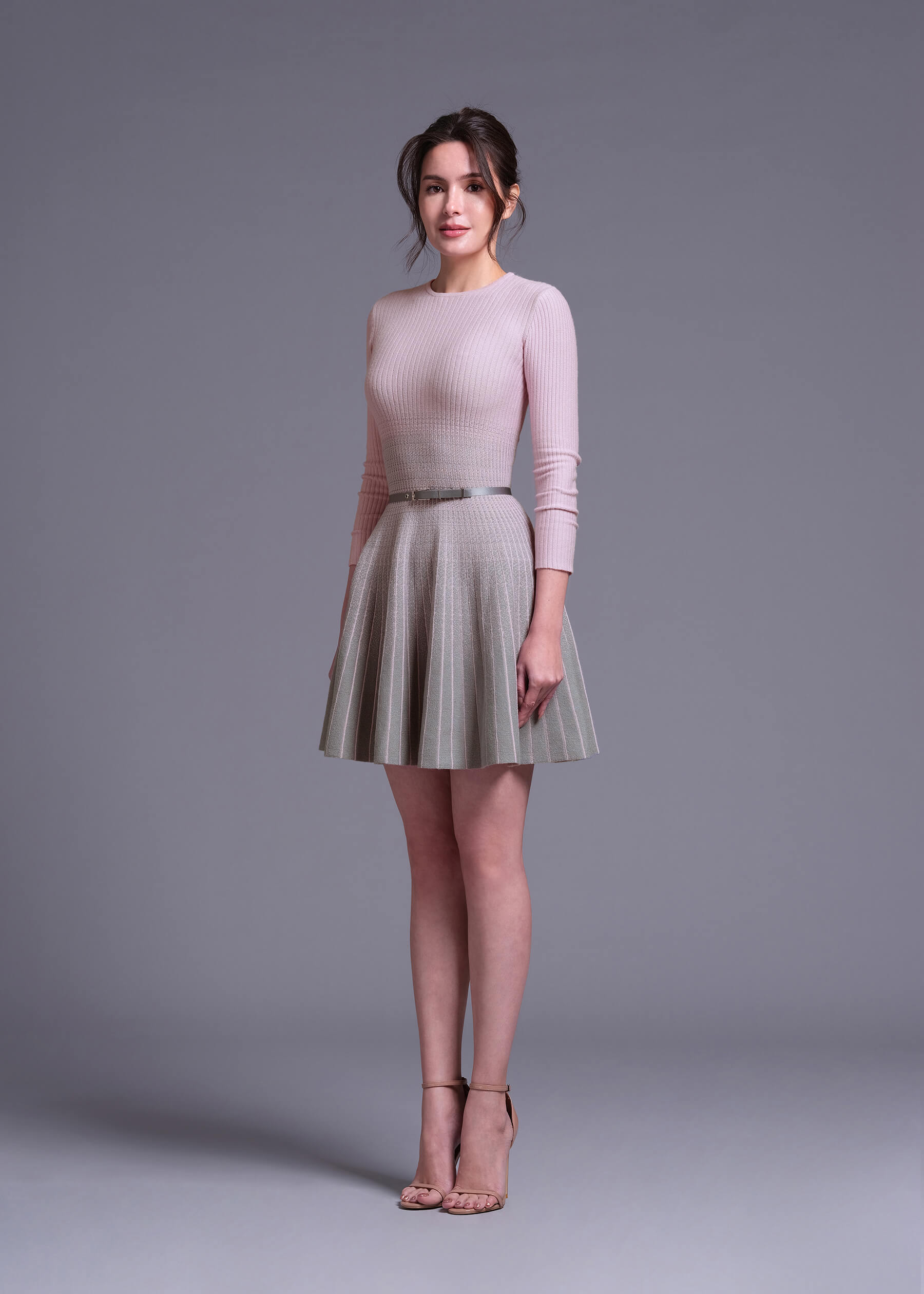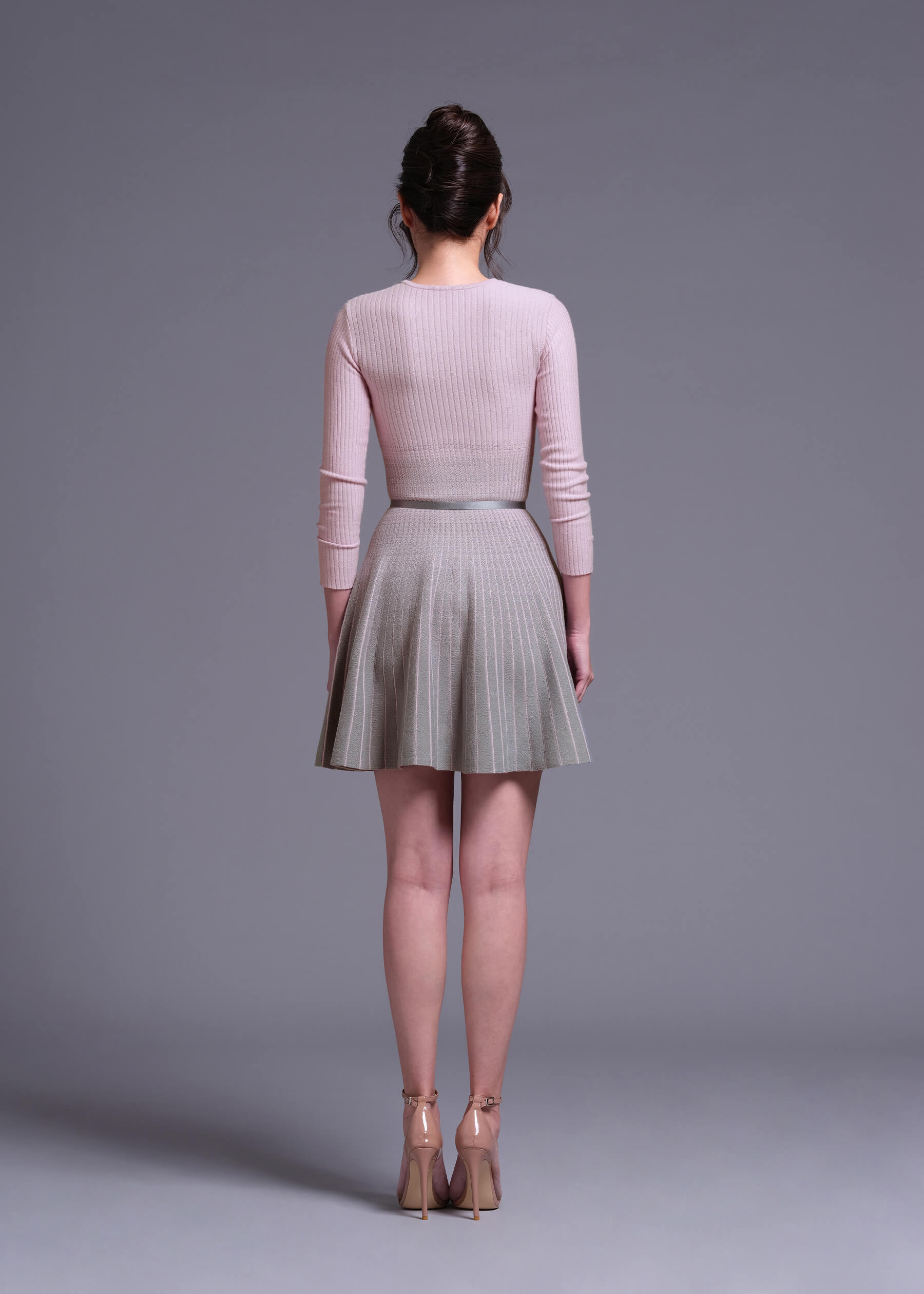 “Gamma” Rose Quartz Ombre Grey Mini Knit Dress