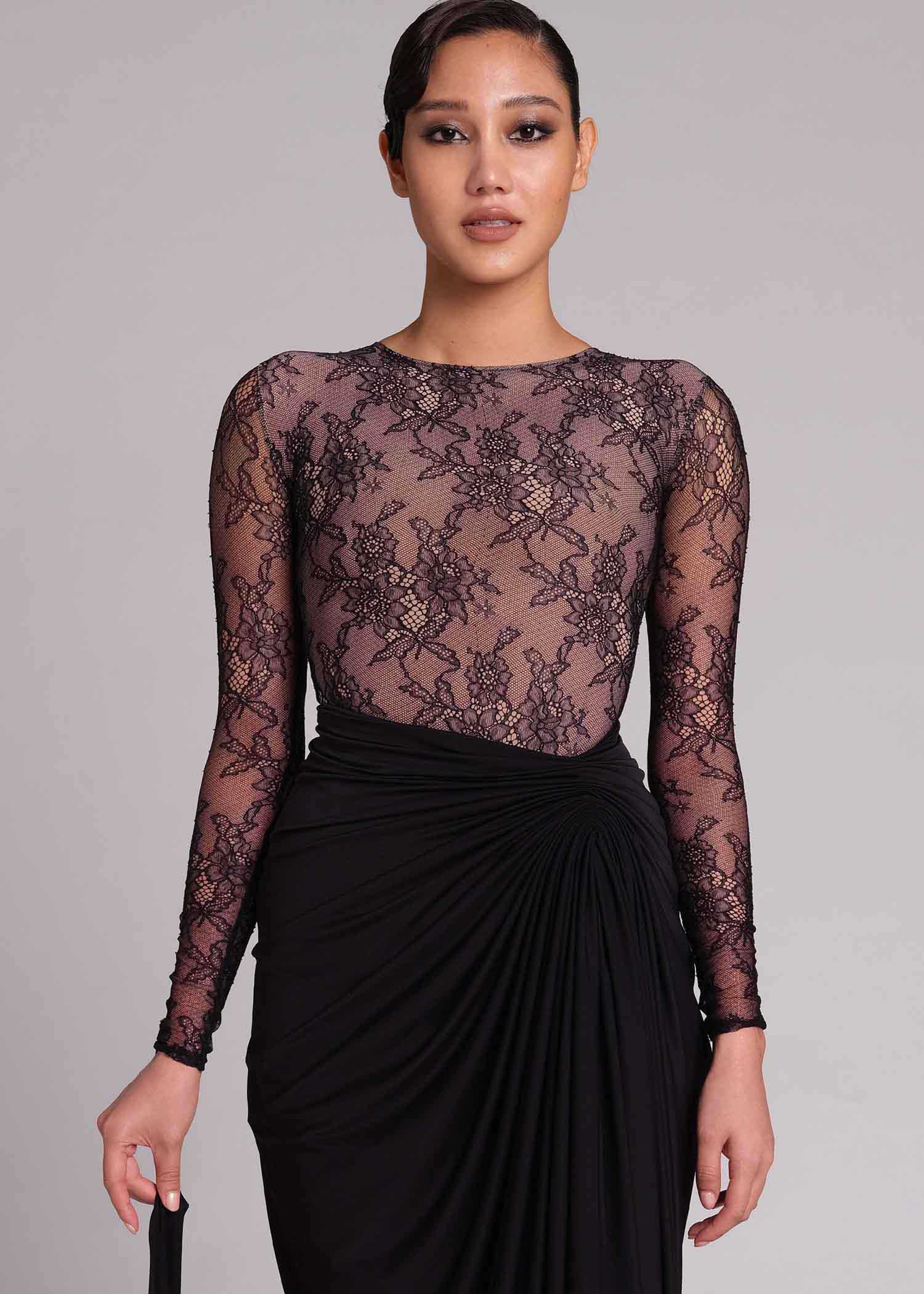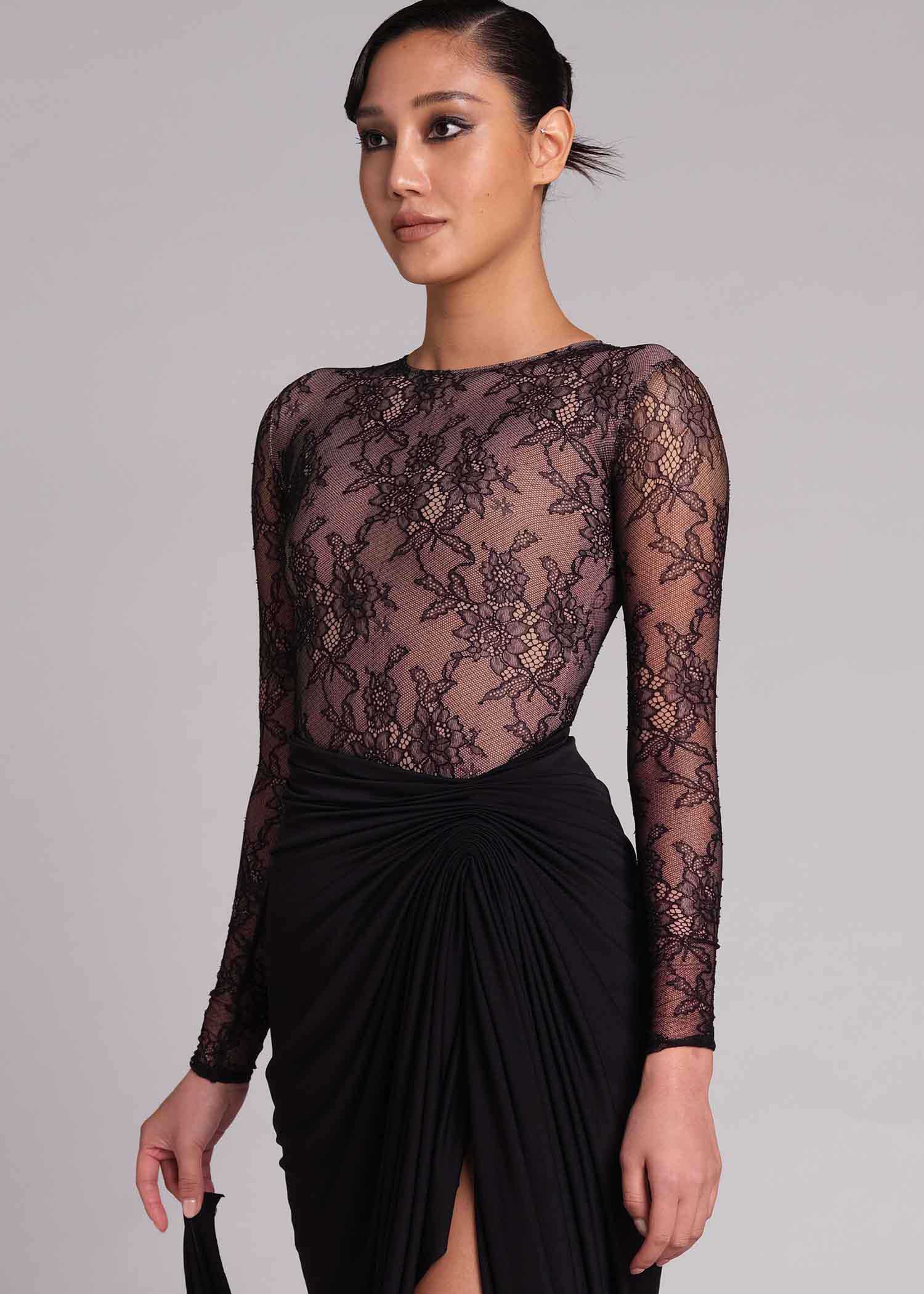 Our Black Flora Dentelle Long Sleeves Bodysuit, meticulously crafted for style and ease. This bodysuit features a timeless black color adorned with intricate floral dentelle detailing, offering a blend of elegance and allure. Made from high-quality fabric, it provides a flattering fit and comfortable wear. Ideal for pairing with skirts or trousers, its versatile design ensures effortless style for various occasions. Our bodysuit is a must-have for those who appreciate refined fashion with a modern twist.