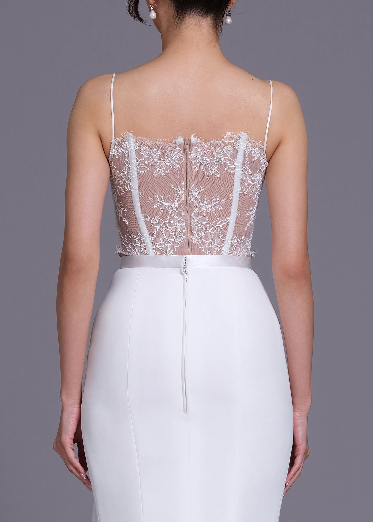 Our Off-White Floral Dentelle Bustier Corset, a stunning piece of craftsmanship that combines timeless elegance with contemporary style. Made from luxurious floral dentelle lace, this bustier corset offers a flattering fit with a structured bodice, enhancing your silhouette. The off-white color adds a romantic touch, making it perfect for bridal occasions, evening wear, or any event that calls for sophistication. Pair it with a matching skirt or high-waisted pants for a chic, modern look. Whether you’re walking down the aisle or attending a gala, this corset is sure to make a statement.