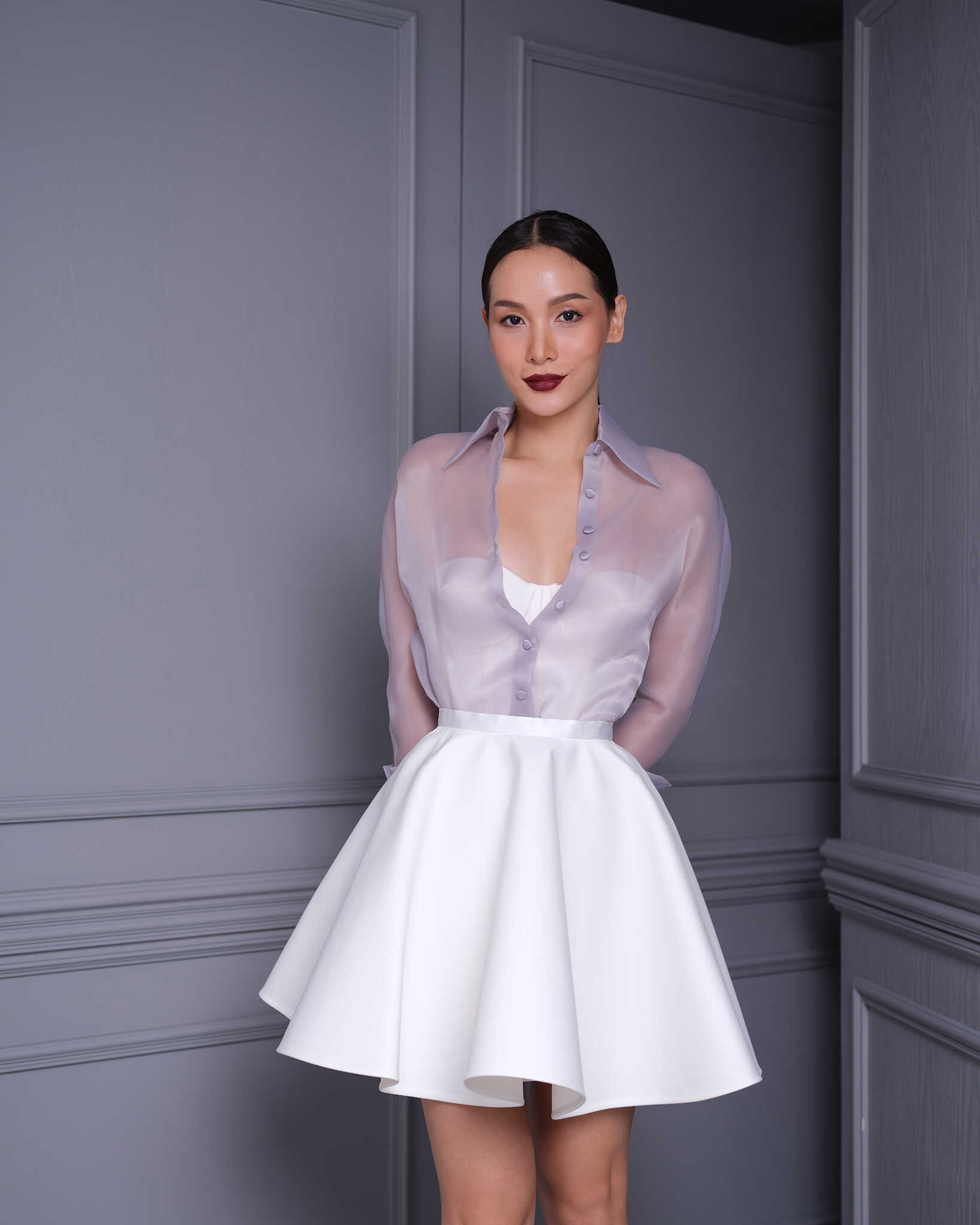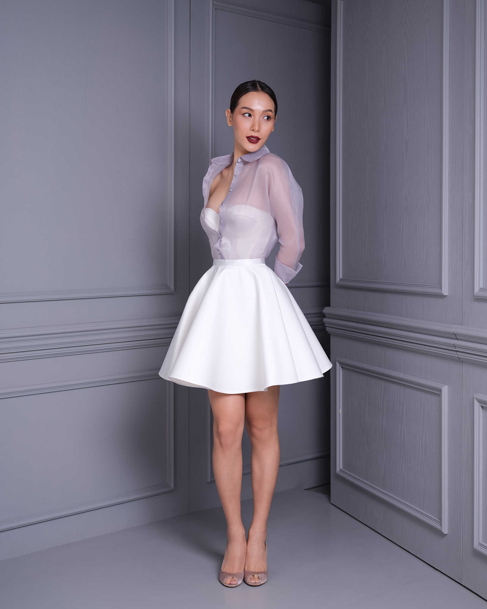 Elevate your wardrobe with the “Off-white Rayon Spandex Bustier Corset”, a captivating blend of vintage glamour and contemporary style. Designed to highlight your silhouette, this bustier features a structured fit and soft, stretchable rayon spandex for comfort. The subtle off-white hue complements a variety of outfits, whether layered under a jacket or styled solo for an evening look. this corset is an essential piece for those seeking to make a sophisticated statement.