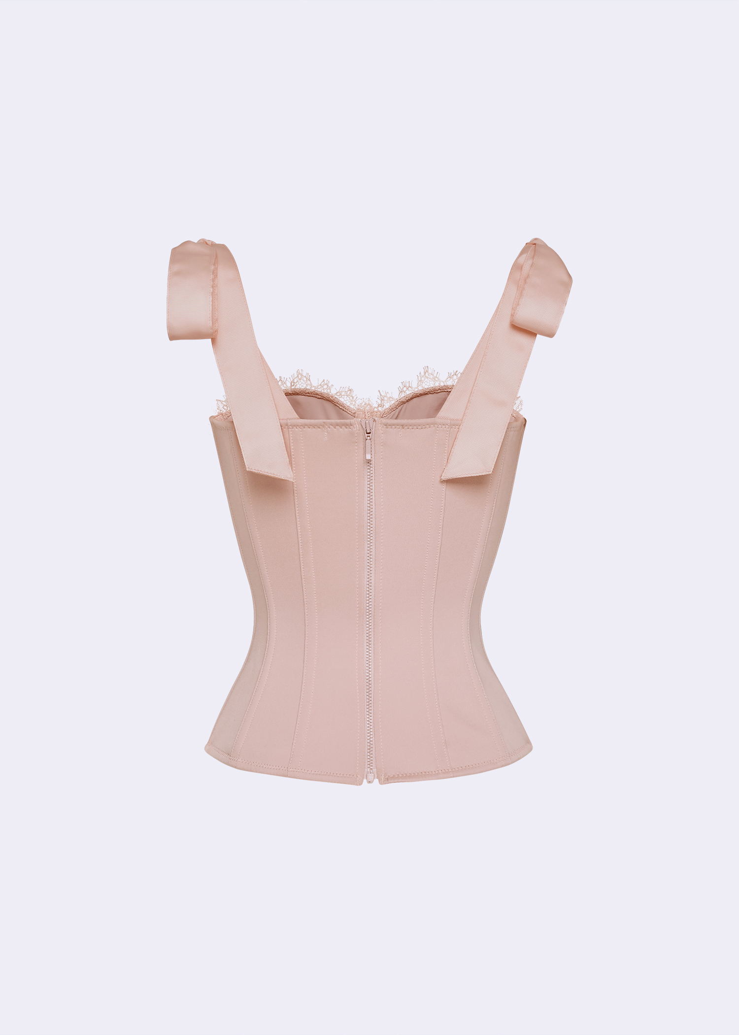 ‘Felicia’ Nude Polyester Spandex Bustier Corset, a blend of allure and elegance. Crafted from high-quality polyester spandex, this corset offers a smooth and comfortable fit. The delicate lace and grosgrain ribbon detailing add a touch of sophistication, creating a flattering silhouette. Perfect for intimate occasions or as an undergarment for enhancing outfits, the ‘Felicia’ corset promises both style and support. Designed to contour your curves beautifully, it provides a secure fit with adjustable features for personalized comfort. Elevate your lingerie ensemble with this timeless piece that exudes confidence and charm.