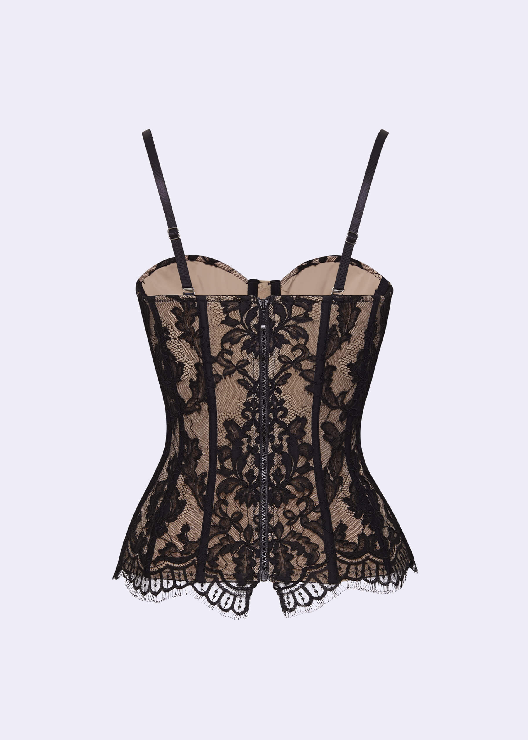 The ‘Narcissus’ Black Bustier Corset redefines modern elegance with a sensual edge. Made from high-quality powermesh, it offers a supportive and flattering fit that contours your silhouette beautifully. The delicate lace detailing adds a romantic, feminine touch, making this corset ideal for formal events, parties, or stylish evenings out. Pair it with high-waisted trousers or skirts for a sophisticated look, or layer it under a blazer for chic versatility. Designed for comfort and style, the ‘Narcissus’ corset is a must-have for bold, confident fashionistas.