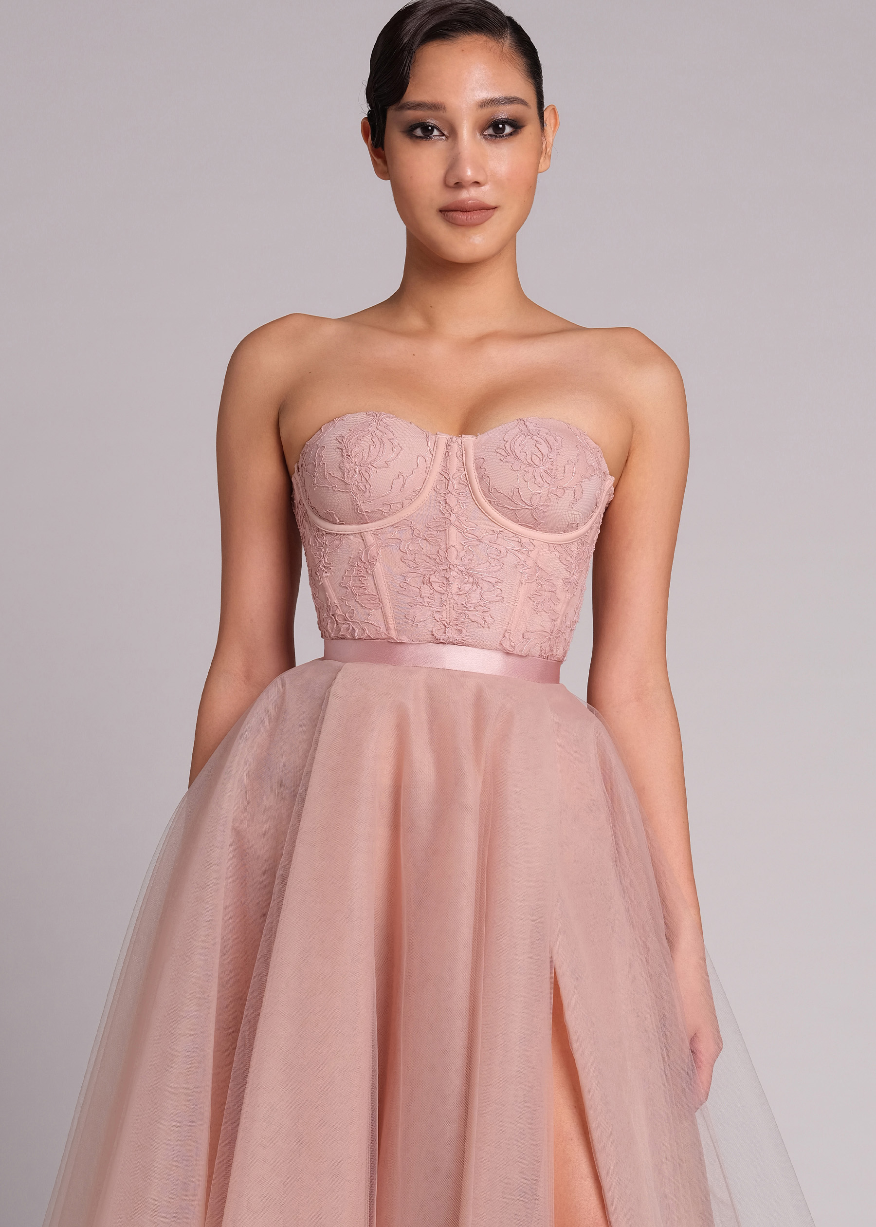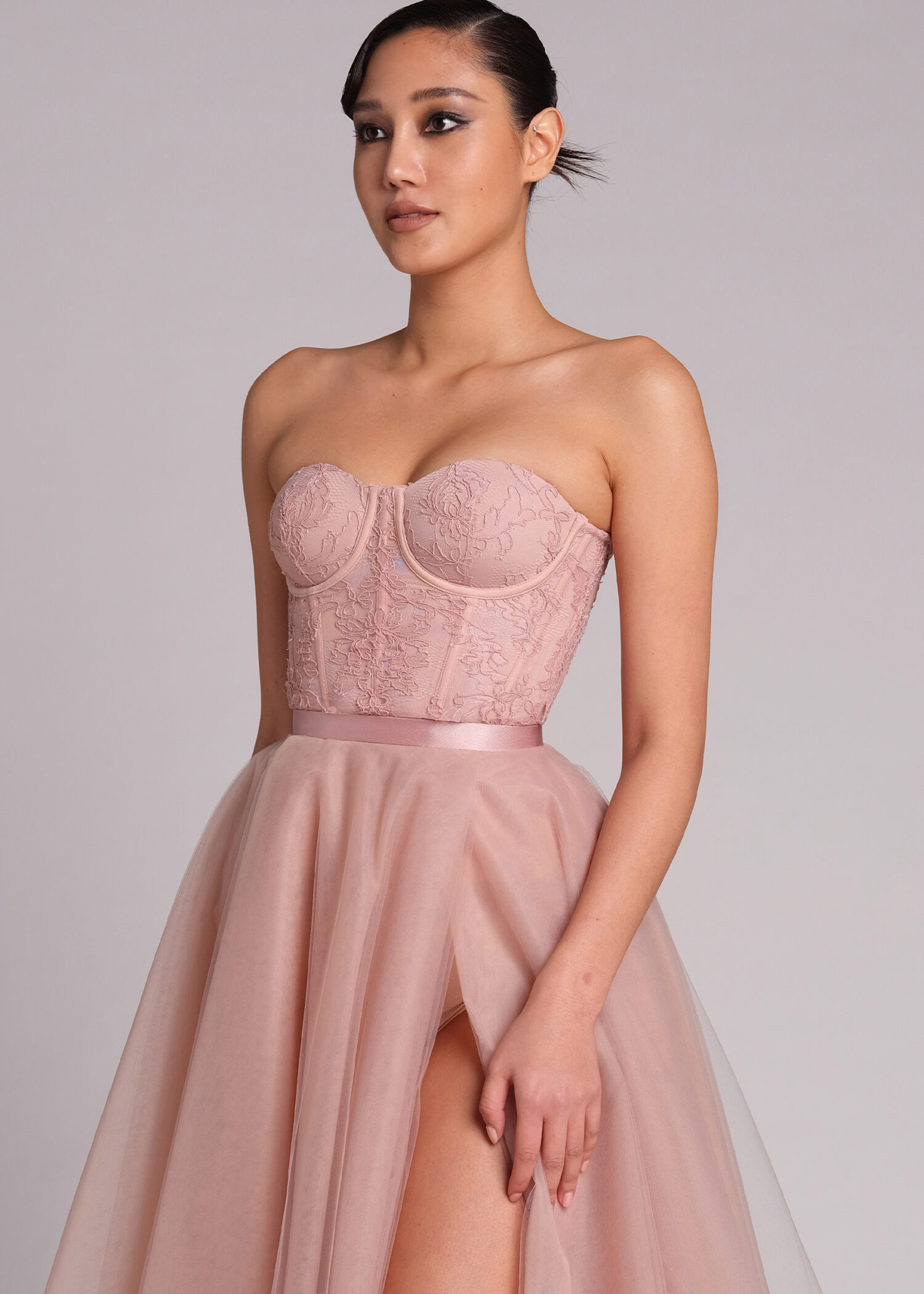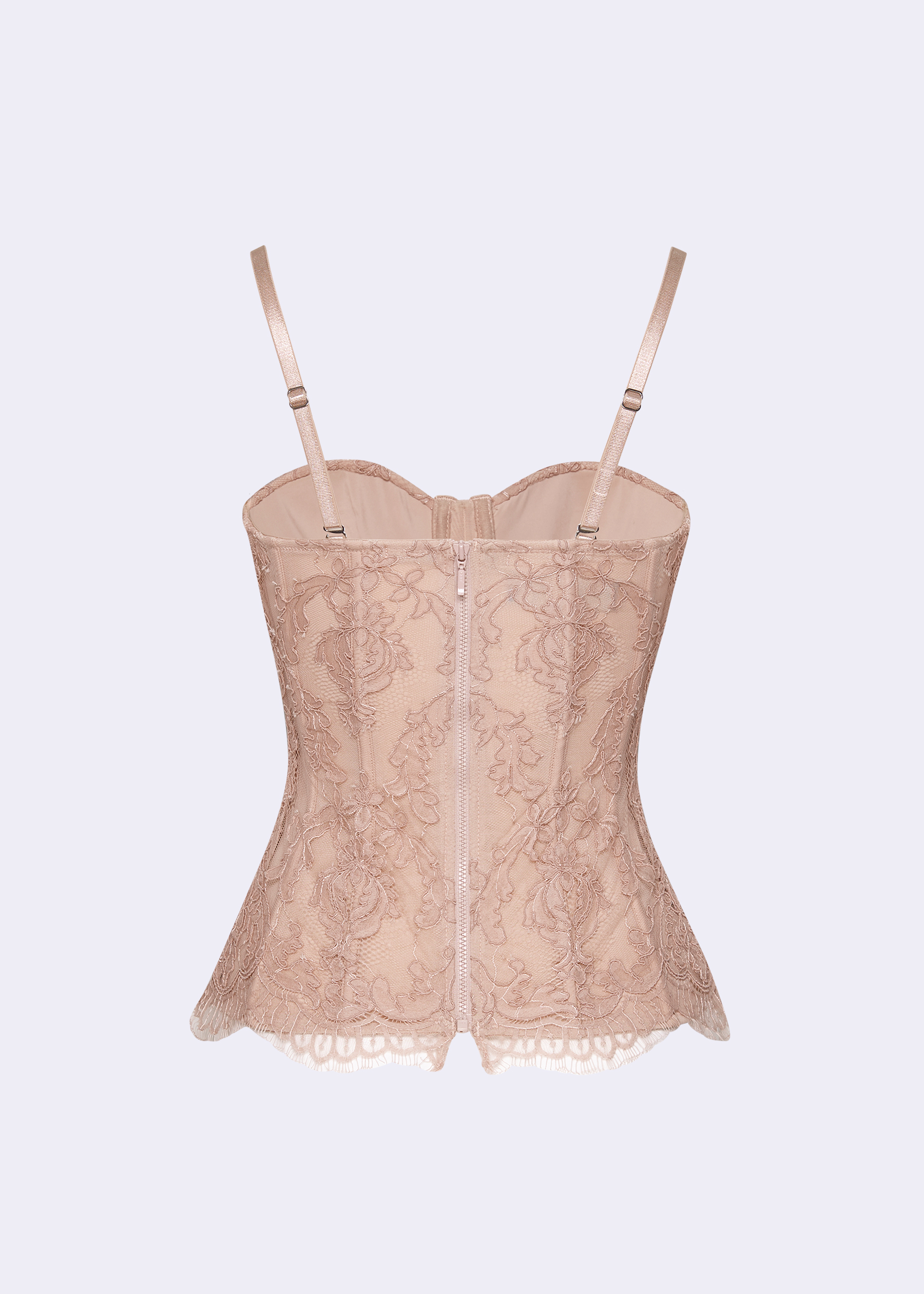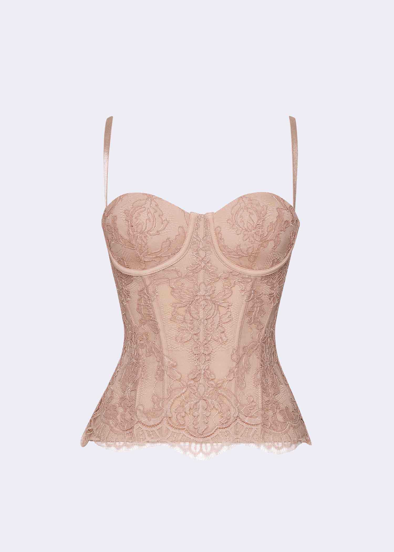 Our stunning Pink Power Mesh Bustier Corset, featuring delicate lace detailing. This piece blends elegance and sensuality, making it an essential addition for anyone looking to make a bold fashion statement.
