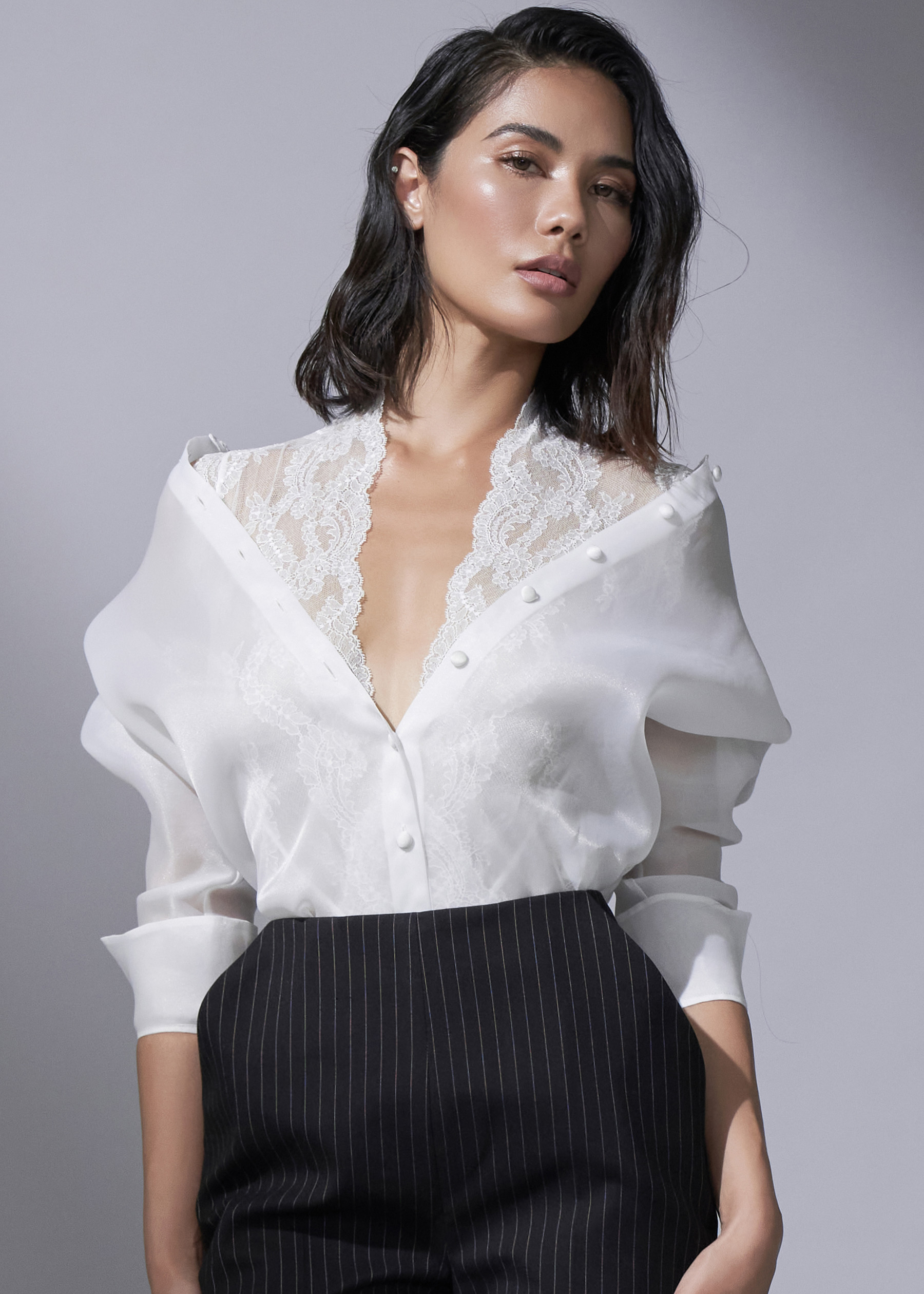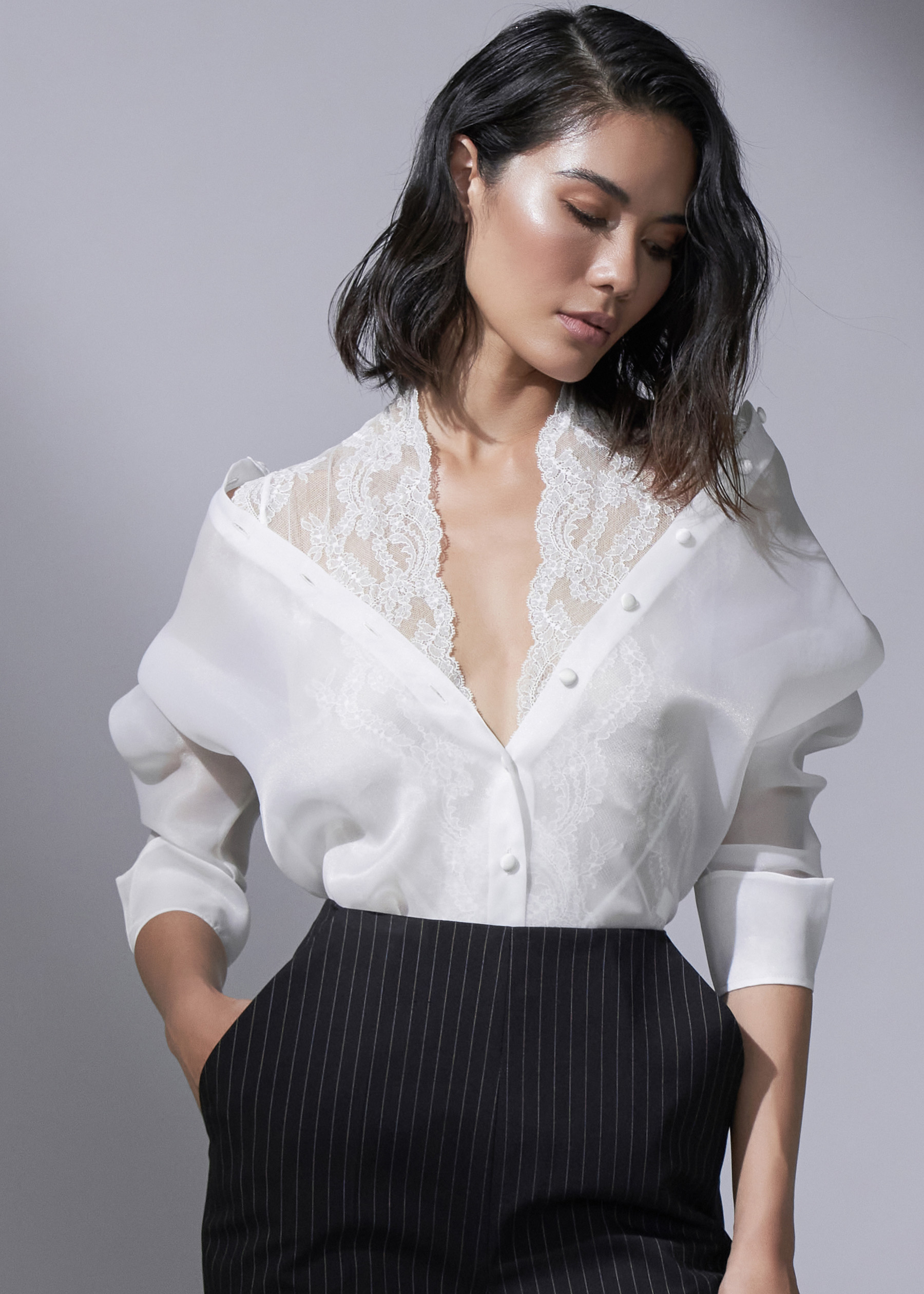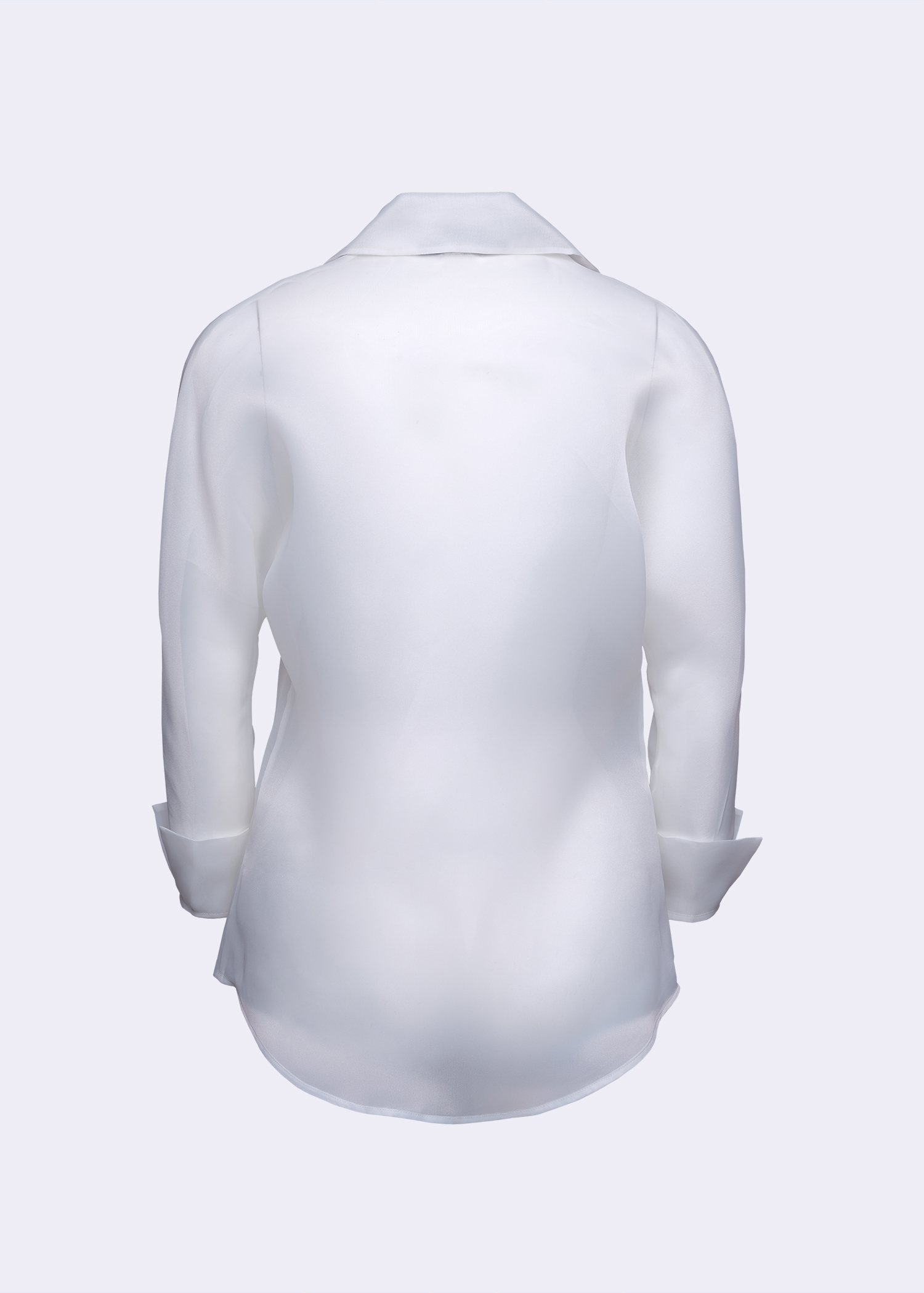 The Off-White Organdy Silk Shirt, a blend of exquisite organdy silk fabric that offers both sophistication and breathability. This shirt features a timeless off-white hue, ideal for versatile styling from office meetings to evening outings. Its lightweight and airy feel make it comfortable for all-day wear, while the silk fabric adds a touch of luxury.