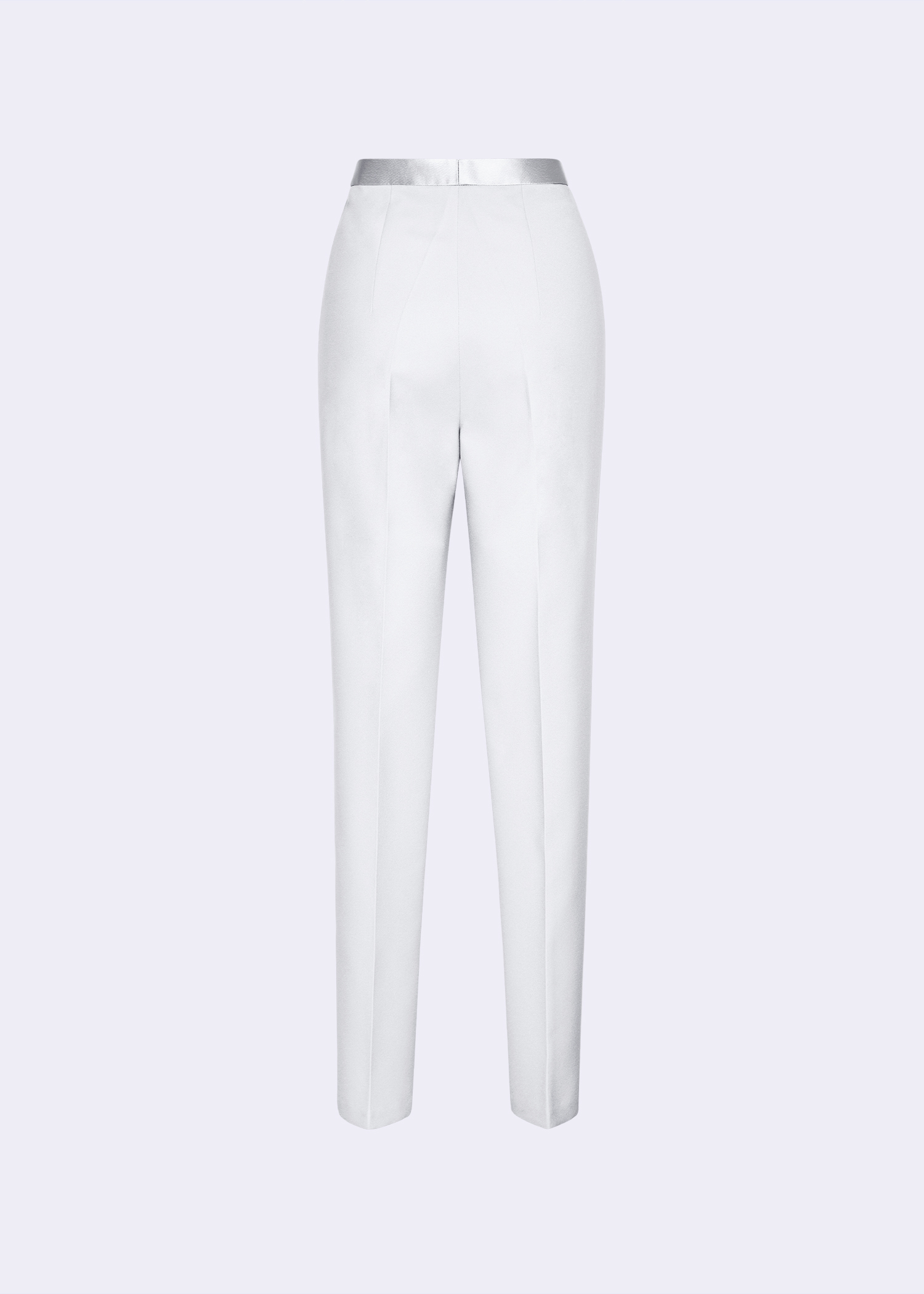 The off-white polyester cigarette pants. Featuring a satin-crepe waistband, they offer a tailored fit that transitions seamlessly from day to night. Perfect for creating sophisticated looks with minimal effort.