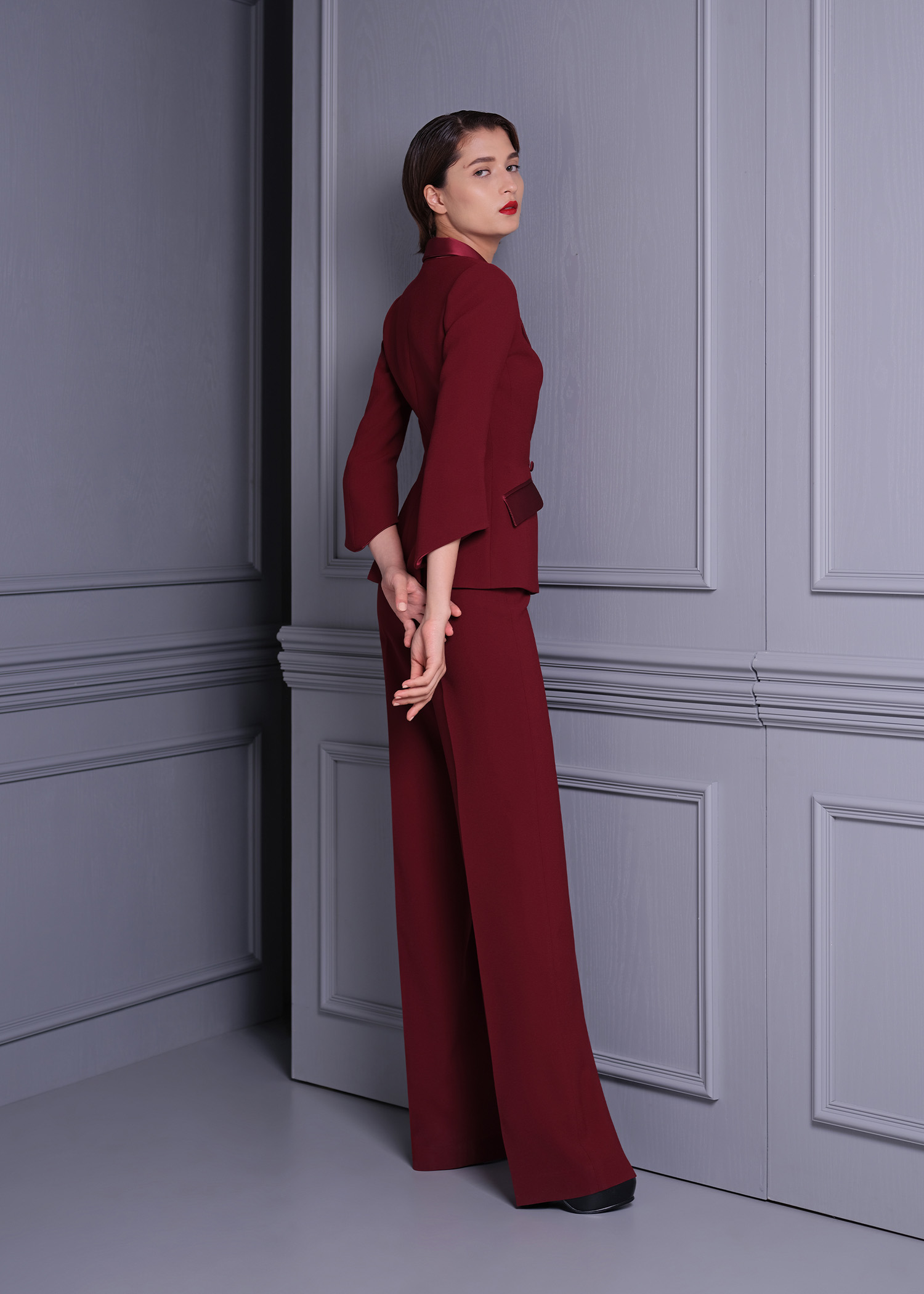 “Rocket” Wine High-Waist Trousers, meticulously crafted for both style and comfort. These trousers feature a rich wine color that radiates elegance and sophistication. Made from high-quality polyester, they boast a flattering high-waist design that enhances your silhouette and offers a tailored fit. Ideal for pairing with blouses or tops, their versatile style ensures effortless elegance for various occasions.