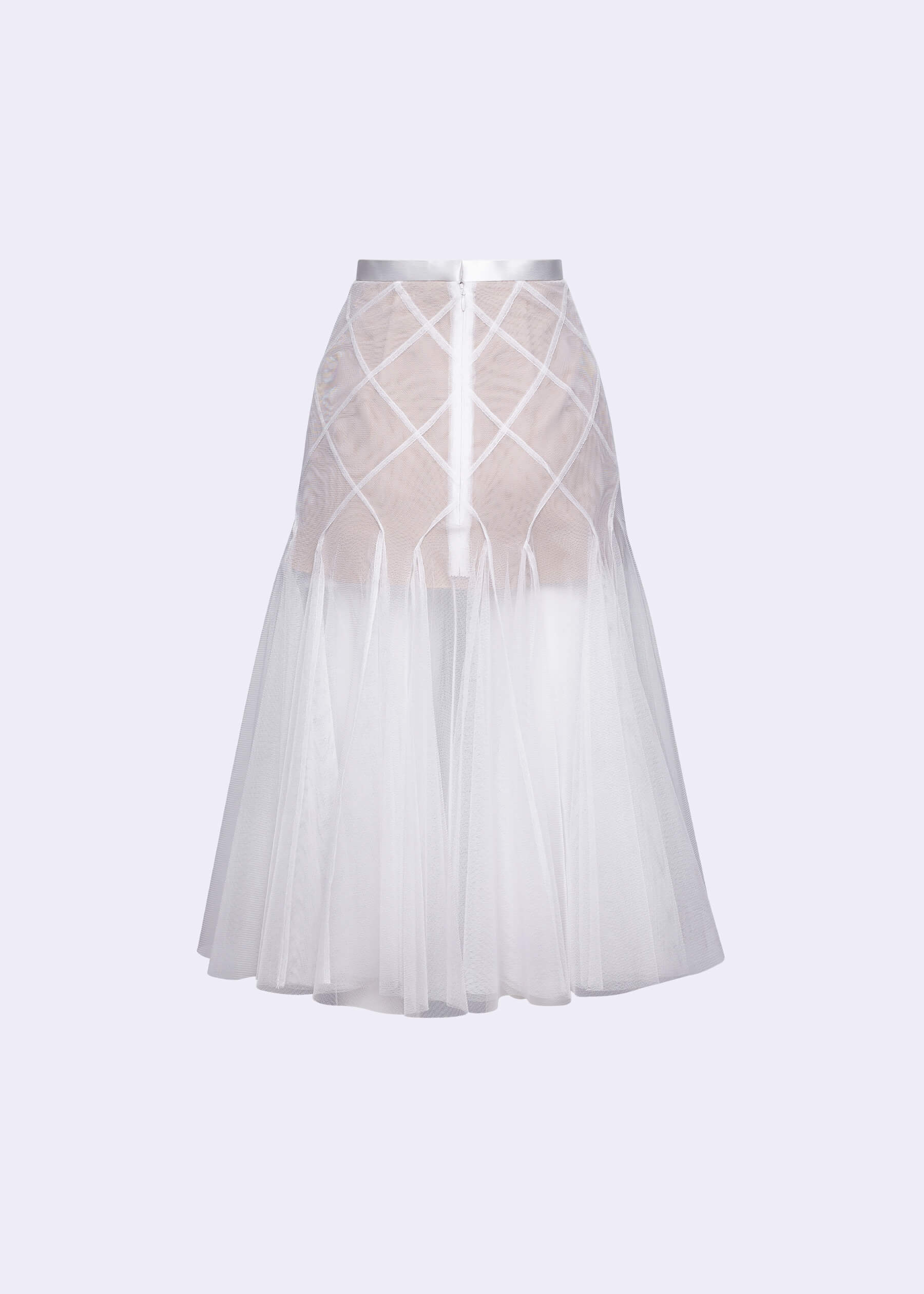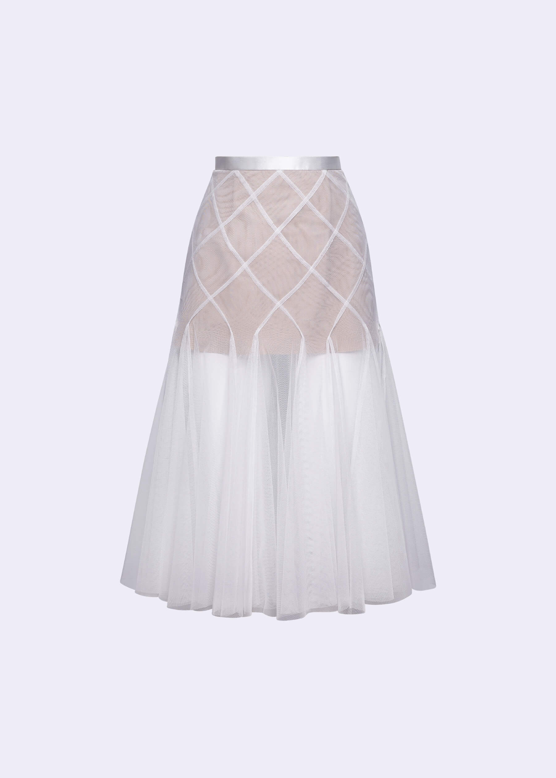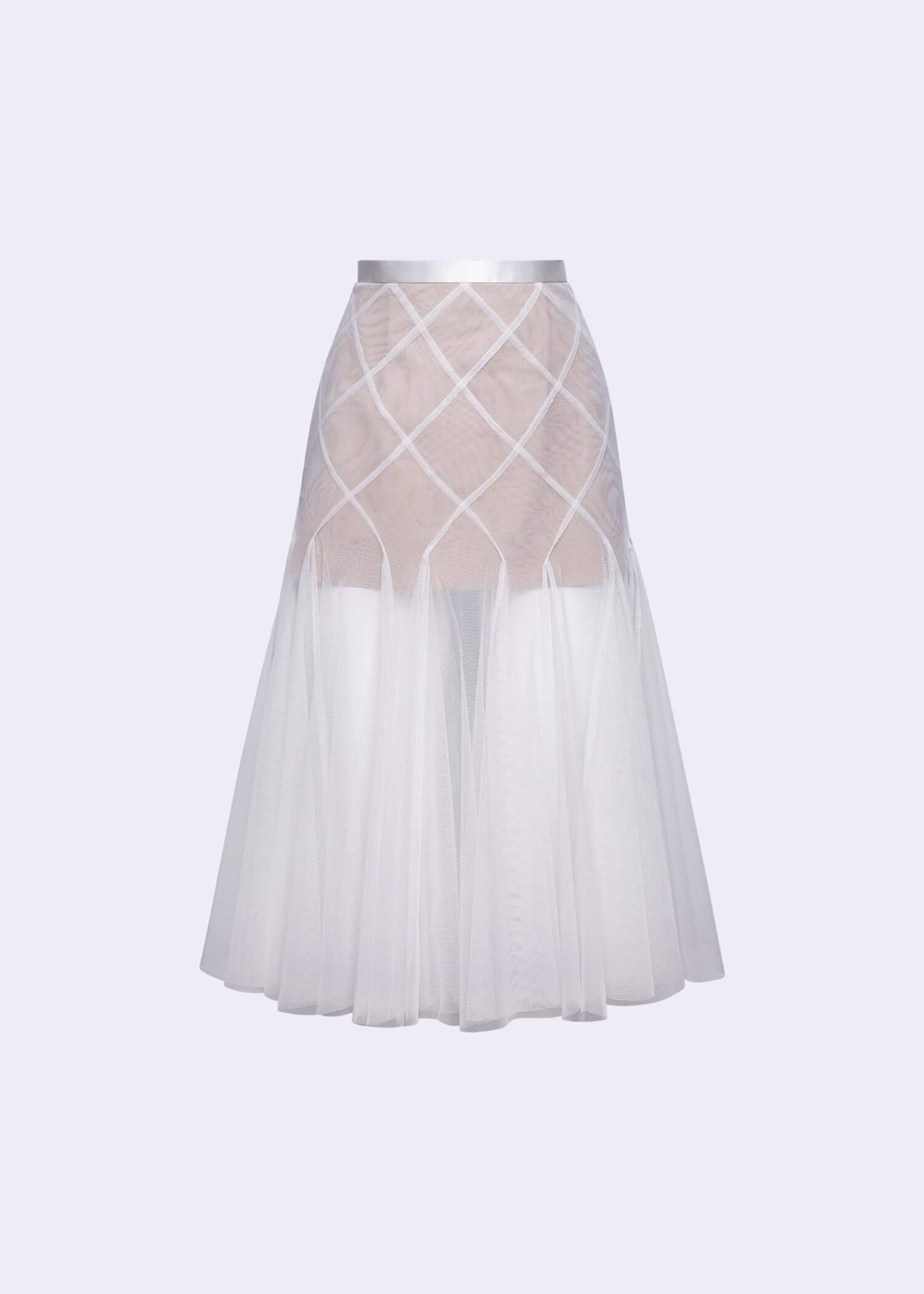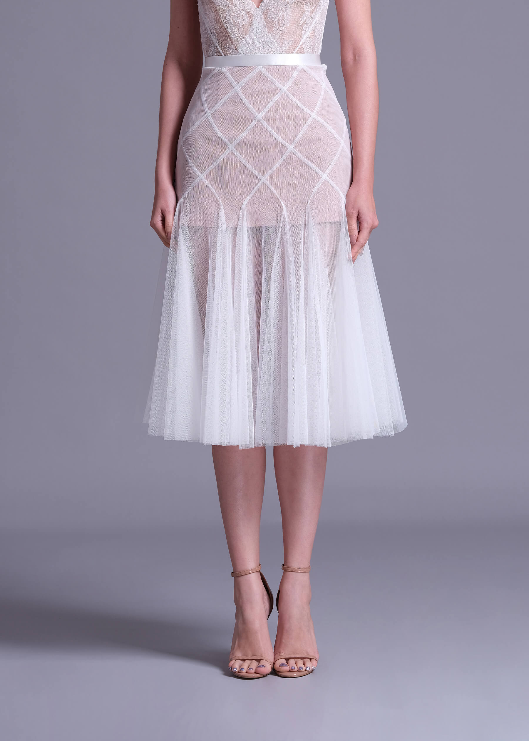 The “Datura” off-white polyester net skirt with nude lining, a captivating piece that effortlessly blends elegance and modern style. This skirt features a unique double layer intertwine-cut design, creating a visually stunning look that is perfect for any occasion. Crafted from high-quality polyester net with a soft nude lining, the “Datura” skirt offers a comfortable and luxurious feel. The intricate intertwine-cut design adds depth and movement to the skirt. Whether you’re dressing up for a special event or looking for a chic everyday outfit. Pair it with a blouse and heels for a polished look or keep it casual with a simple top and flats.