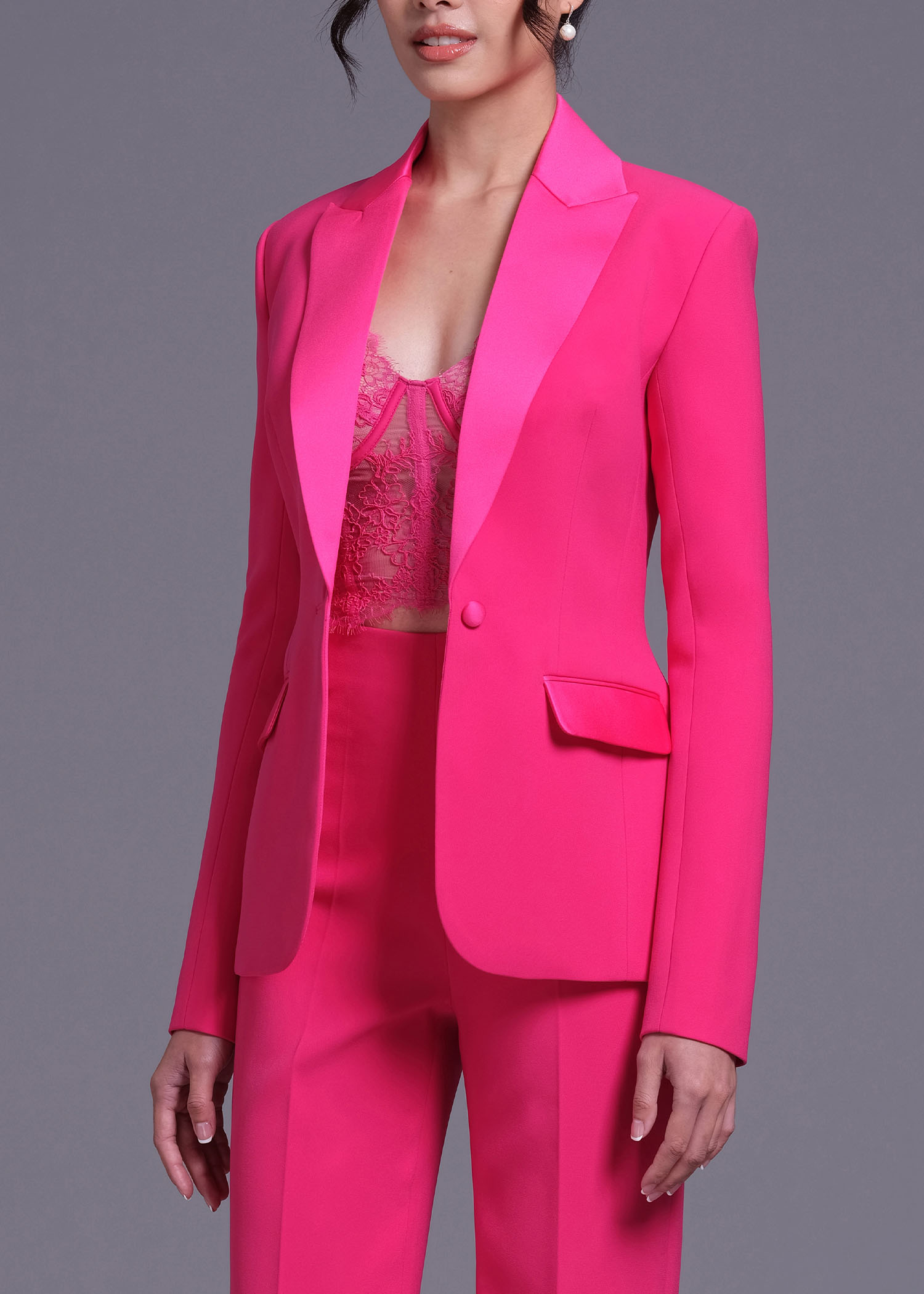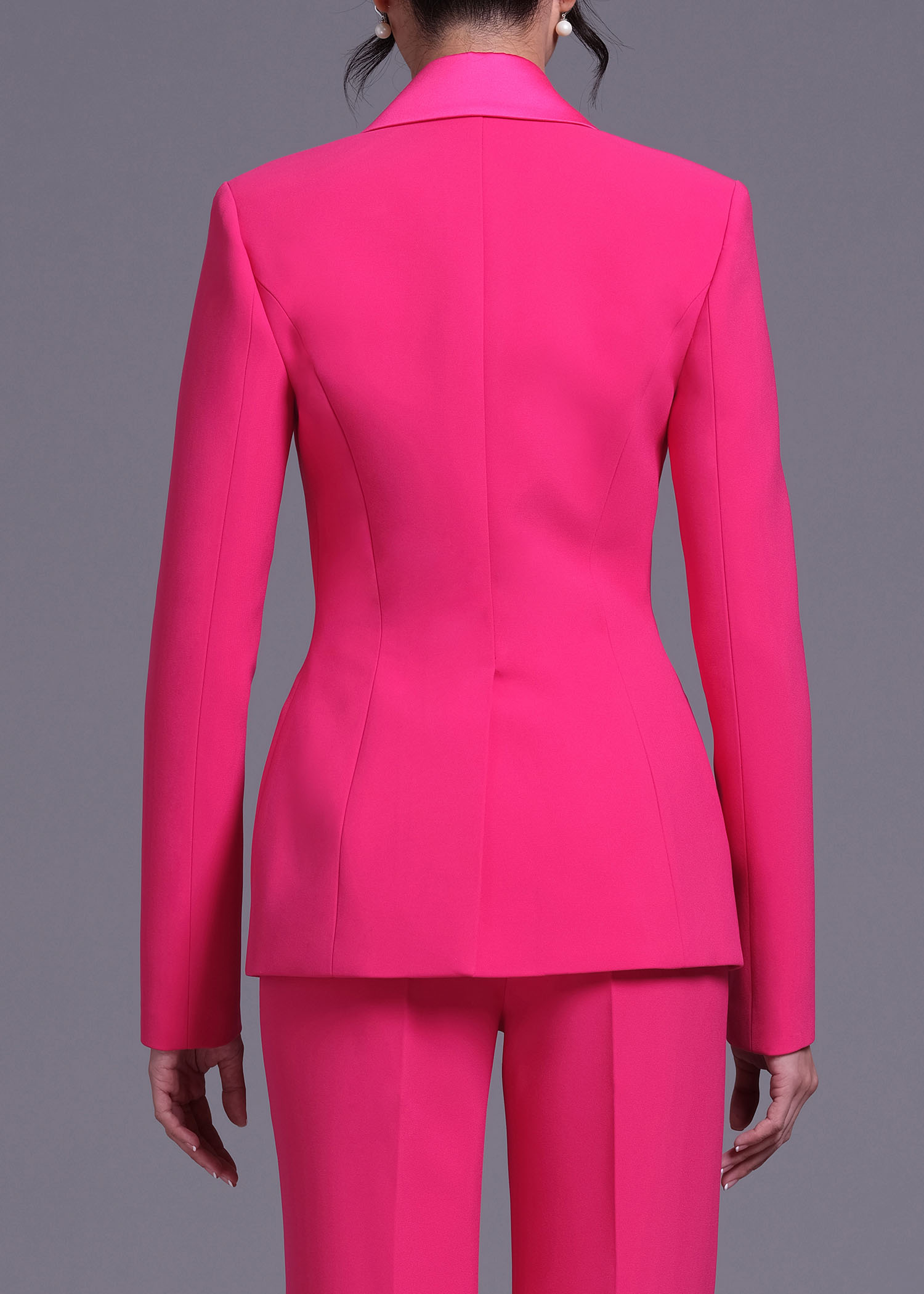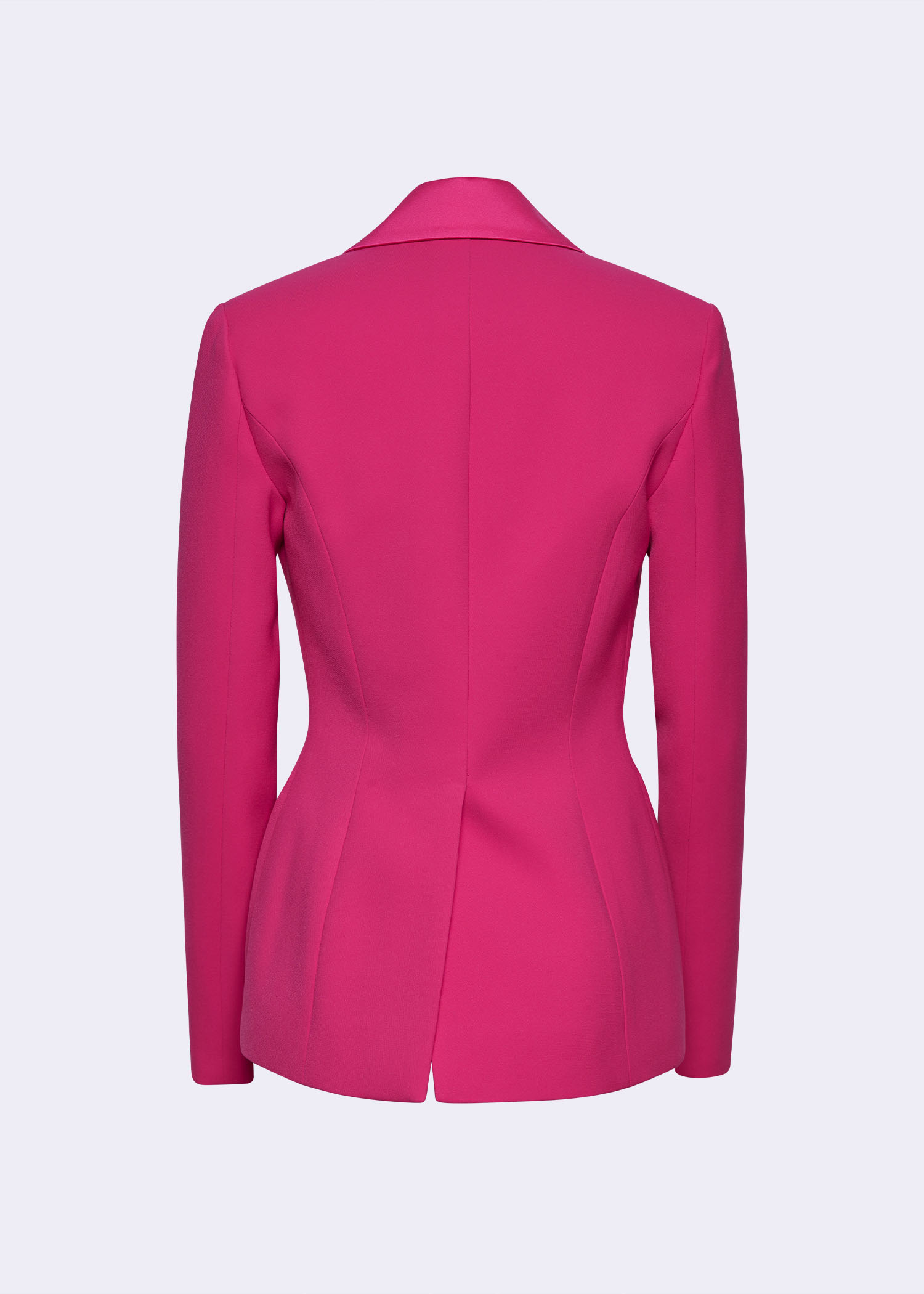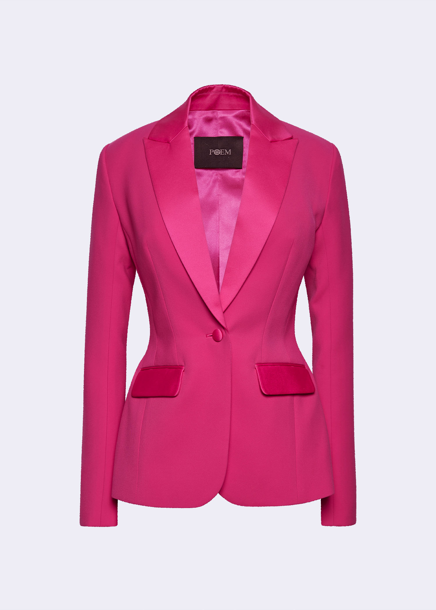 The magenta polyester jacket featuring satin-crepe detail. This single-breasted jacket combines modern style with classic elegance, making it an ideal choice for professional and formal events.