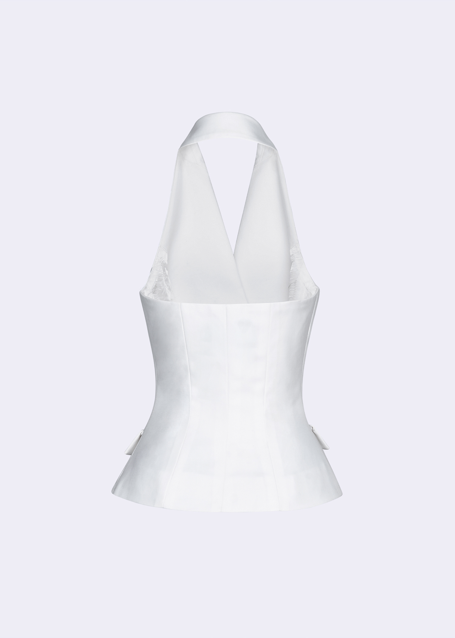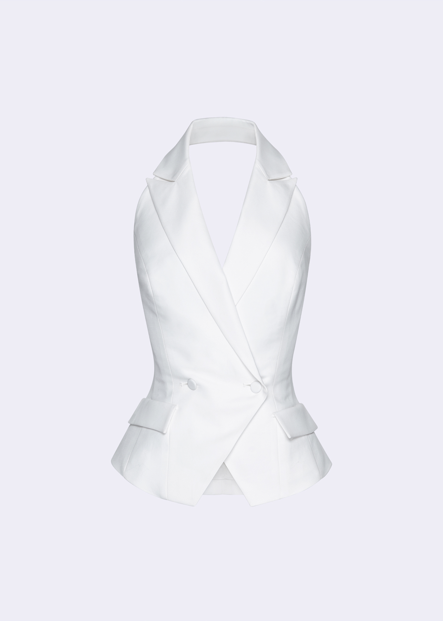 The Off-White Cotton Peak Lapel Halter Waistcoat, a versatile piece that combines classic design with contemporary flair. Made from premium cotton, it features a sleek peak lapel and a halter neckline, offering a unique twist on traditional waistcoats. Perfect for layering over a blouse or wearing on its own, this waistcoat adds sophistication to any outfit. Ideal for both casual and formal occasions, its tailored fit ensures a flattering silhouette. This waistcoat is a must-have for those who appreciate quality craftsmanship and timeless style.