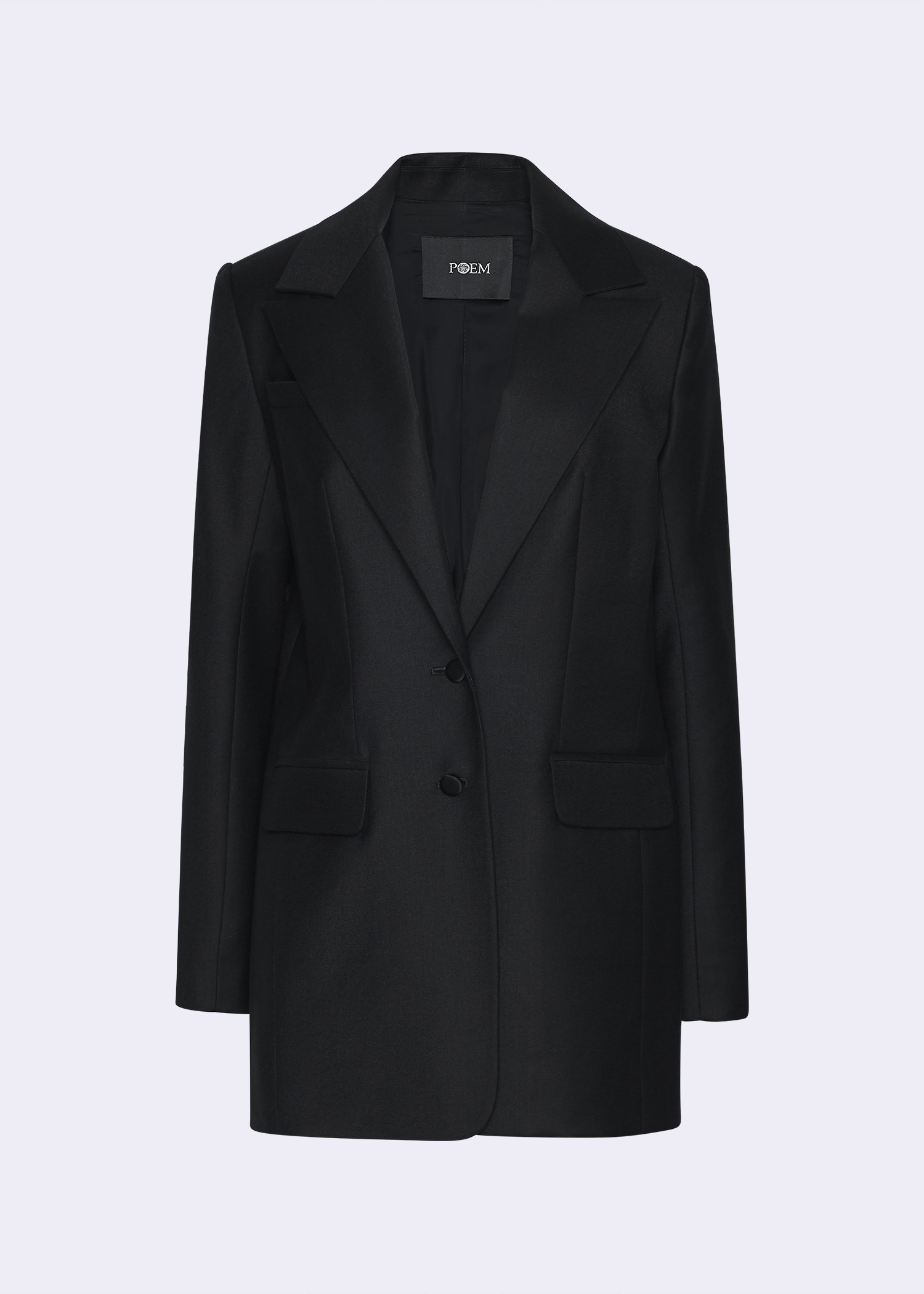 Our Black Wool Single-Breasted Jacket, made from premium wool, this jacket combines luxurious warmth with impeccable style. The classic black color exudes elegance, ensuring versatility for both formal and casual occasions. Ideal for layering over blouses or dresses, this jacket effortlessly transitions from office meetings to evening engagements.