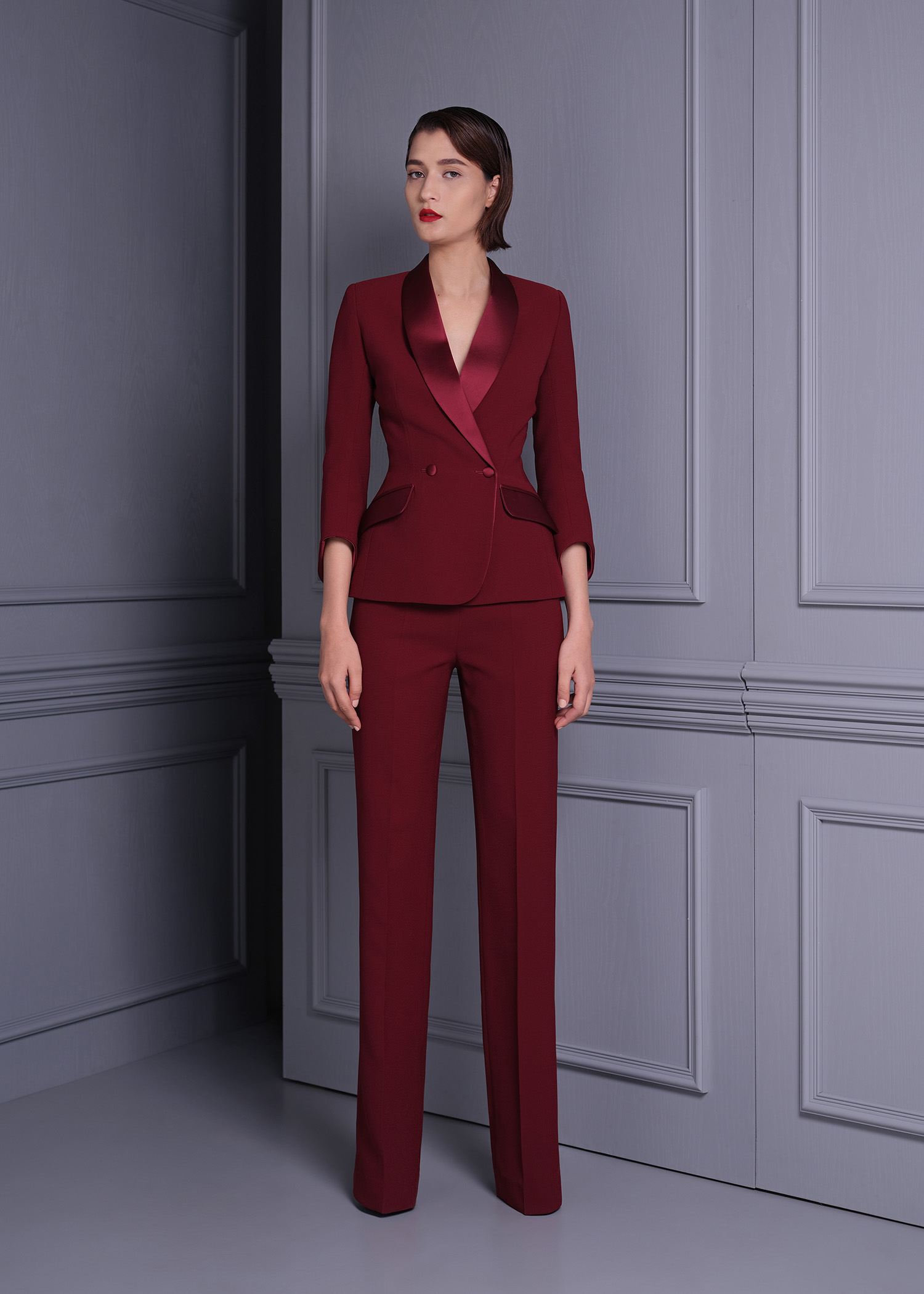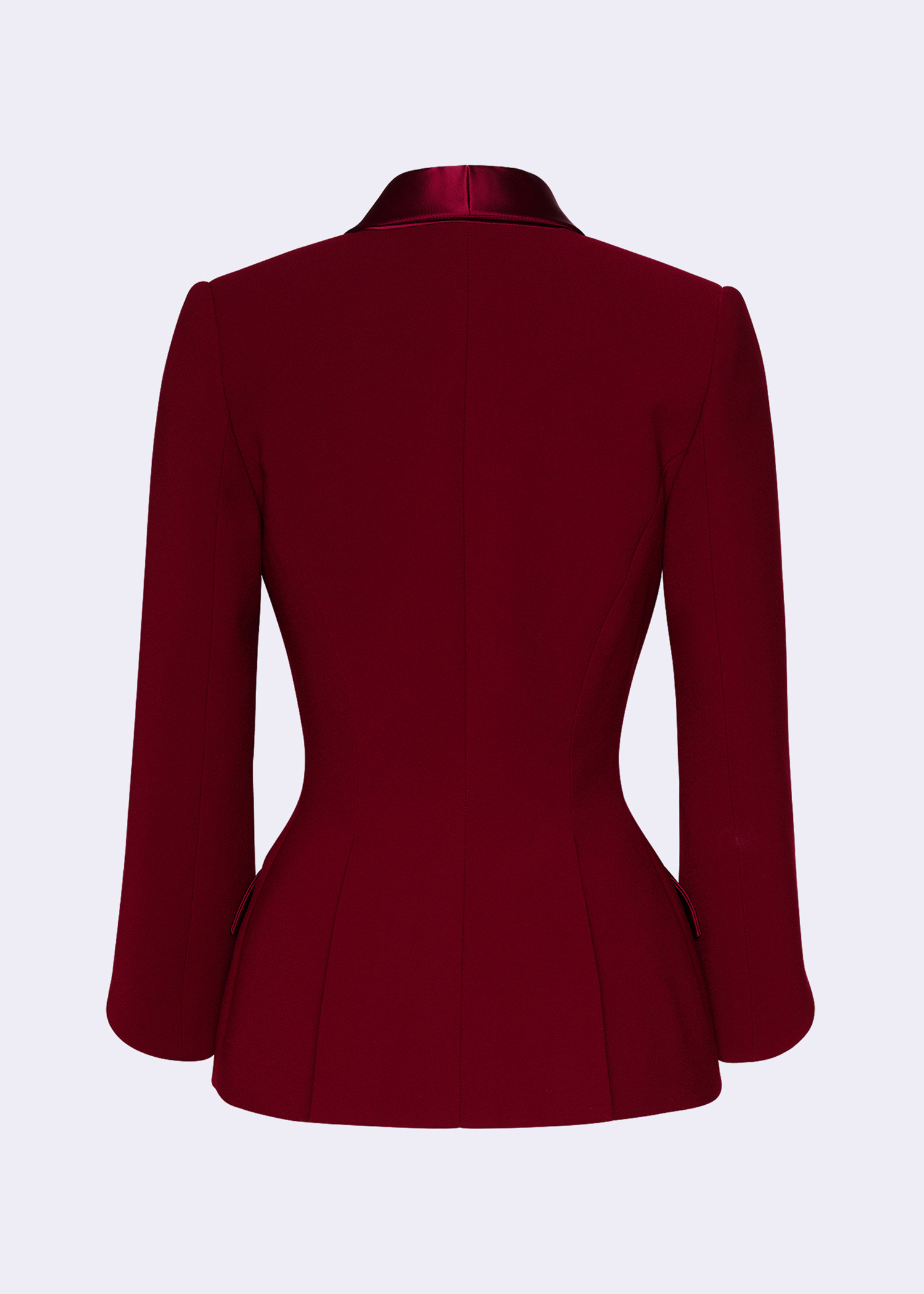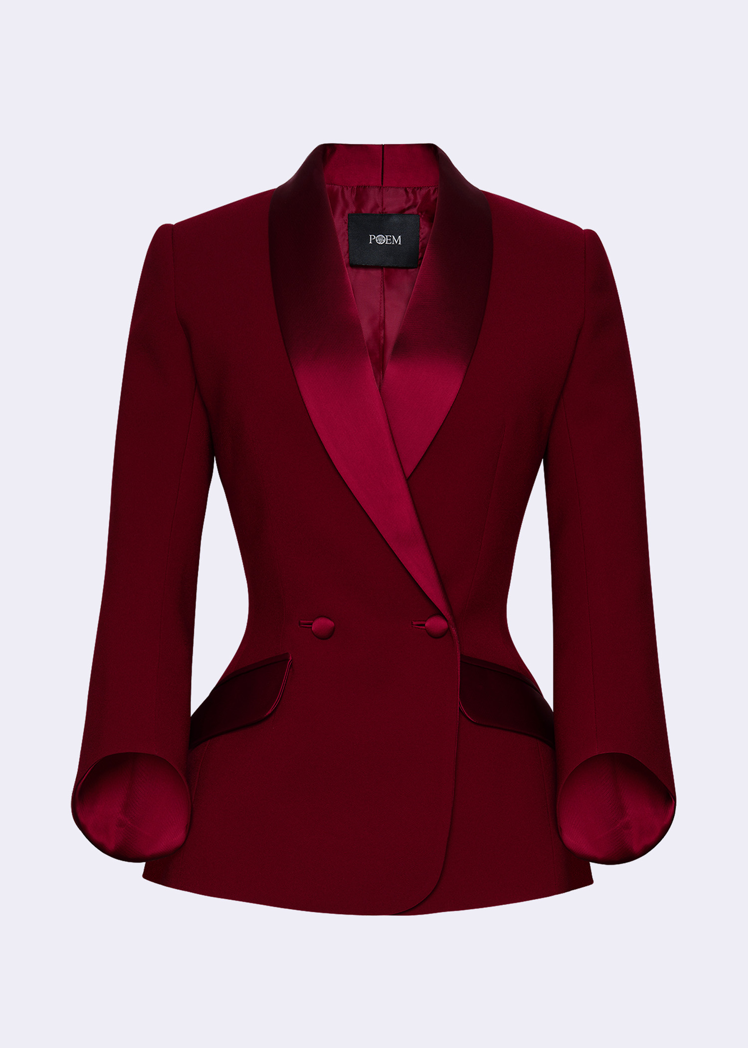“Katharine Hepburn” Wine Double-Breasted Jacket, meticulously crafted for both style and comfort. This jacket features a rich wine color with satin crepe details, inspired by the iconic Katharine Hepburn’s timeless elegance. Crafted from high-quality polyester, it offers a structured double-breasted silhouette that exudes sophistication. Ideal for pairing with trousers or skirts, its versatile design ensures effortless style for various occasions. Our jacket is a must-have for those who appreciate vintage-inspired fashion with a contemporary twist.