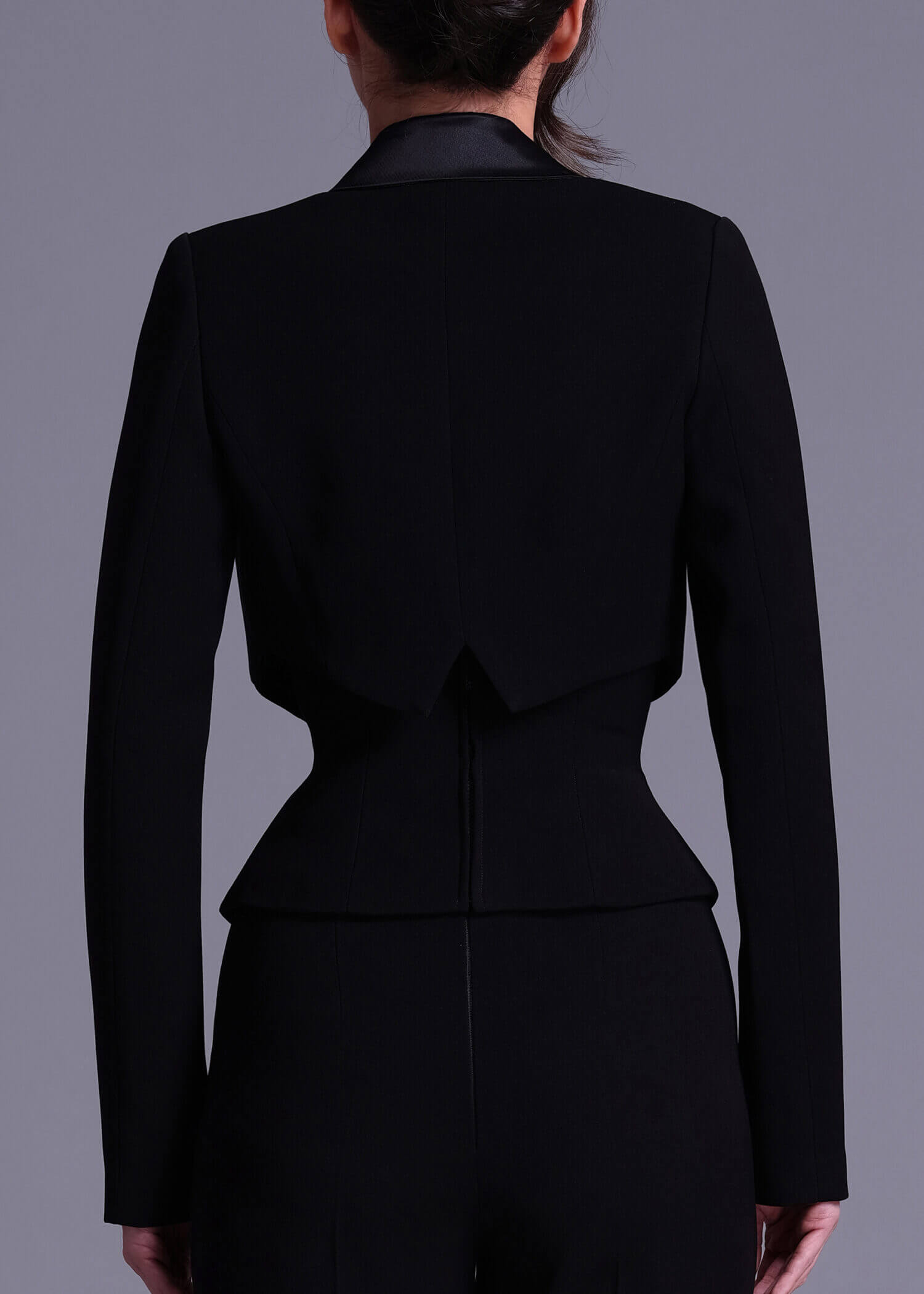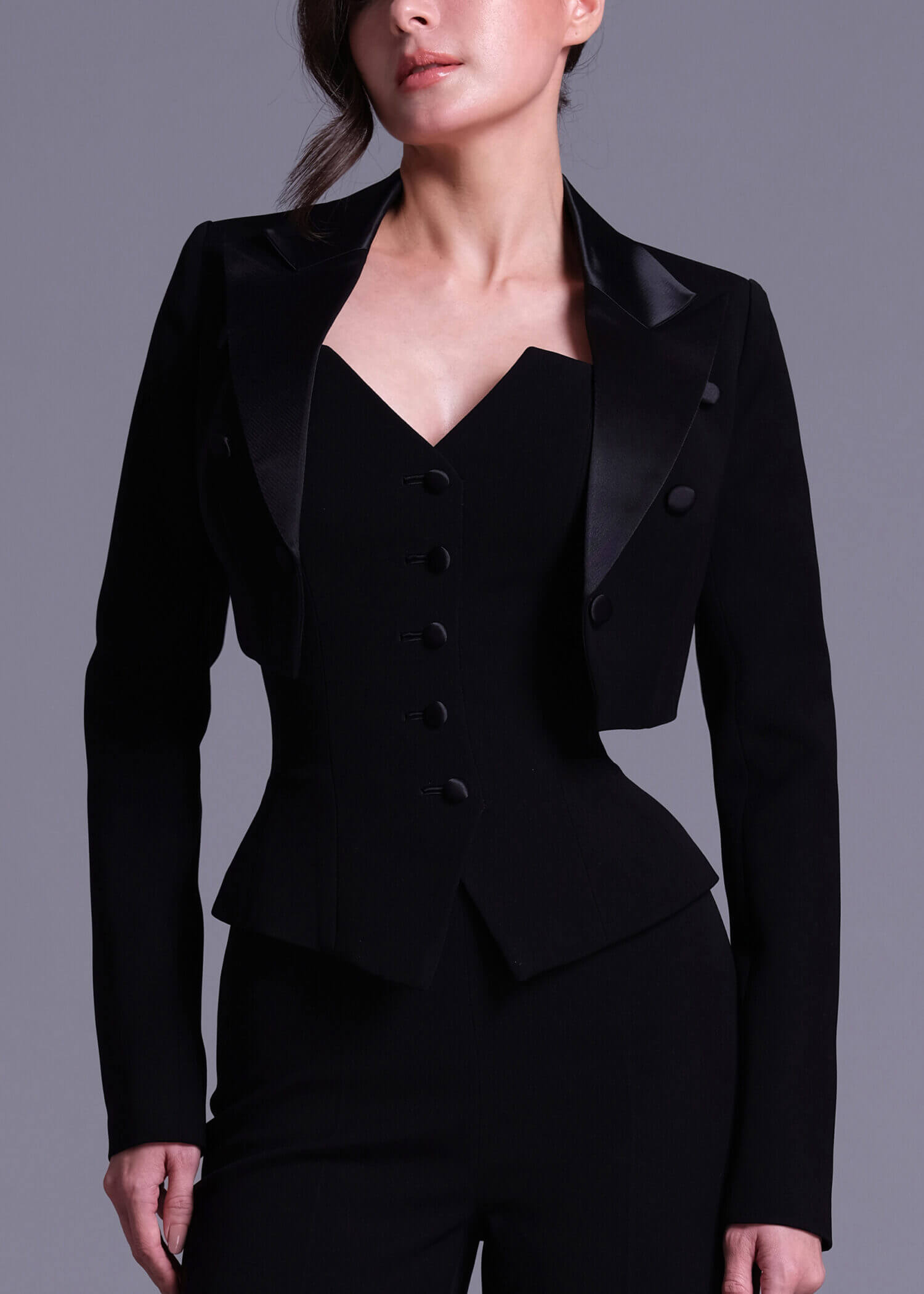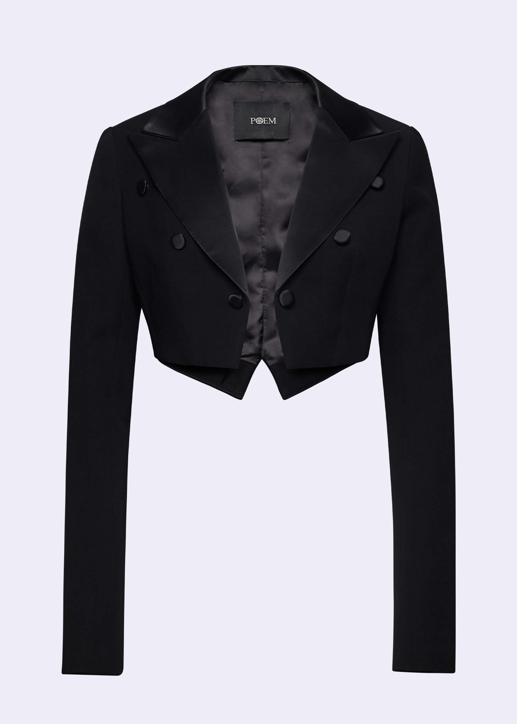 The “Triton” black cropped double-breasted jacket, featuring luxurious satin-crepe detail. Crafted from high-quality black polyester and accented with elegant satin-crepe detailing. The double-breasted design and cropped length provide a contemporary look. The premium materials ensure comfort and durability, allowing you to enjoy this stylish jacket for years to come. This modern and chic jacket is perfect for adding a sophisticated touch to any outfit, whether for work or a night out.