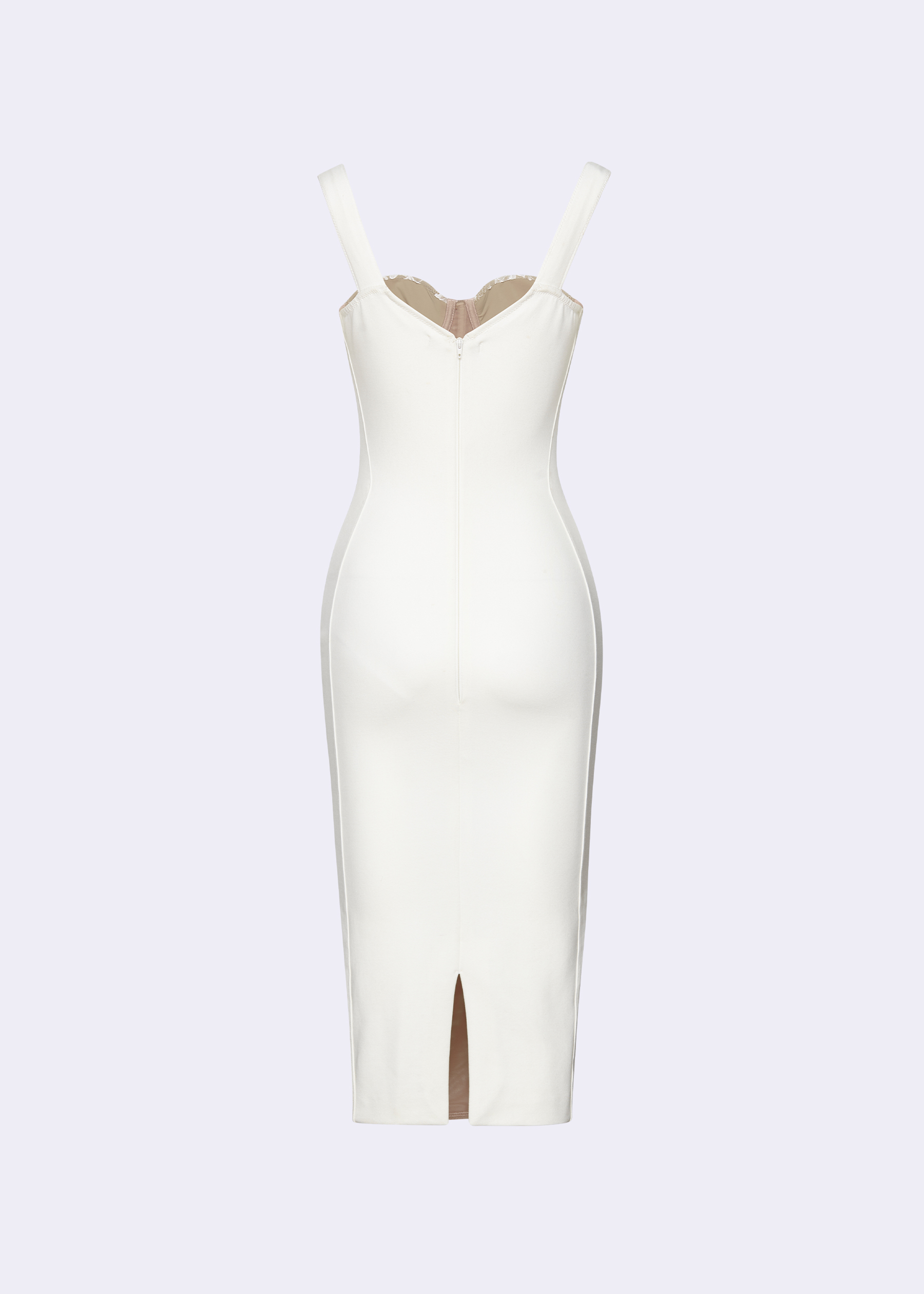 Off-white bustier sheath dress featuring exquisite floral dentelle detail. Crafted from a blend of rayon and spandex, this dress offers both comfort and style, hugging your curves in all the right places. Perfect for cocktail parties or special occasions, its bustier design and sheath silhouette exude elegance and confidence. Pair with statement jewelry and heels for a stunning ensemble that commands attention.