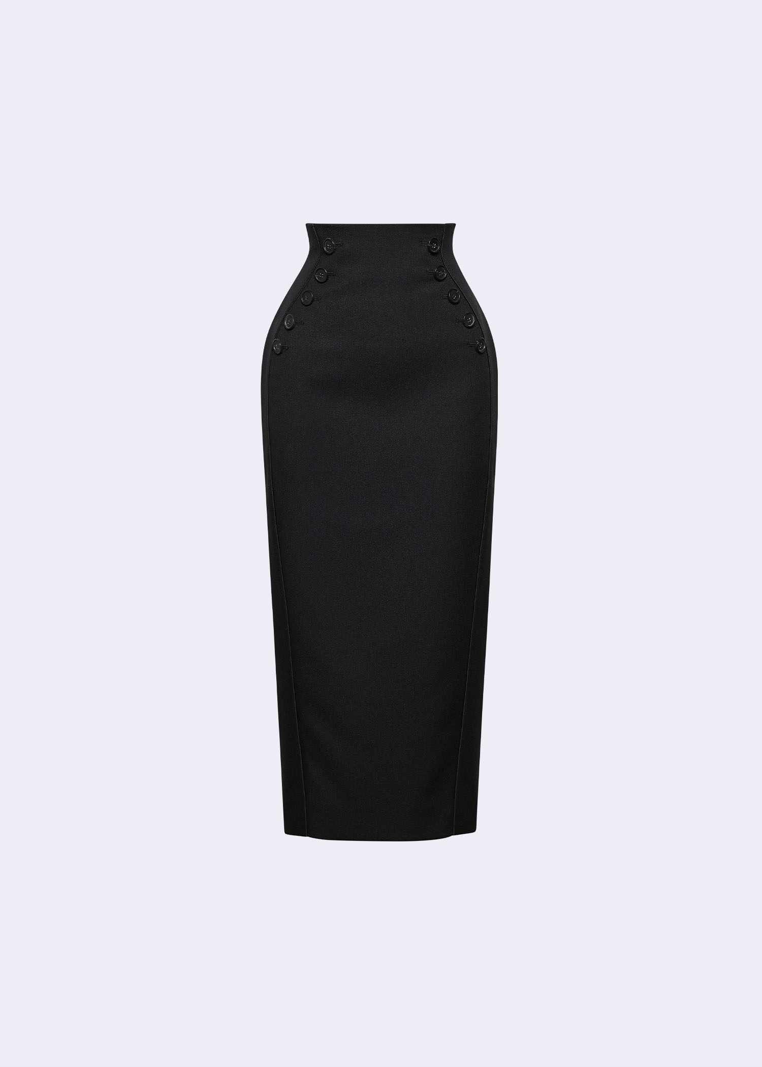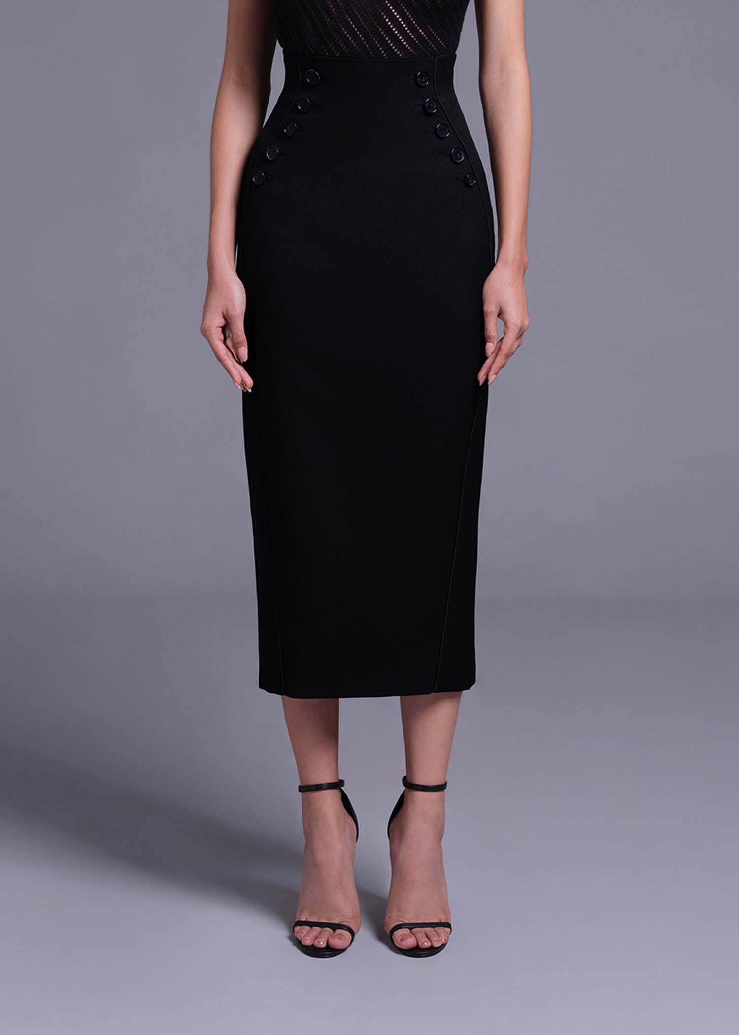 Black High-Waist Pencil Skirt with Button Detail