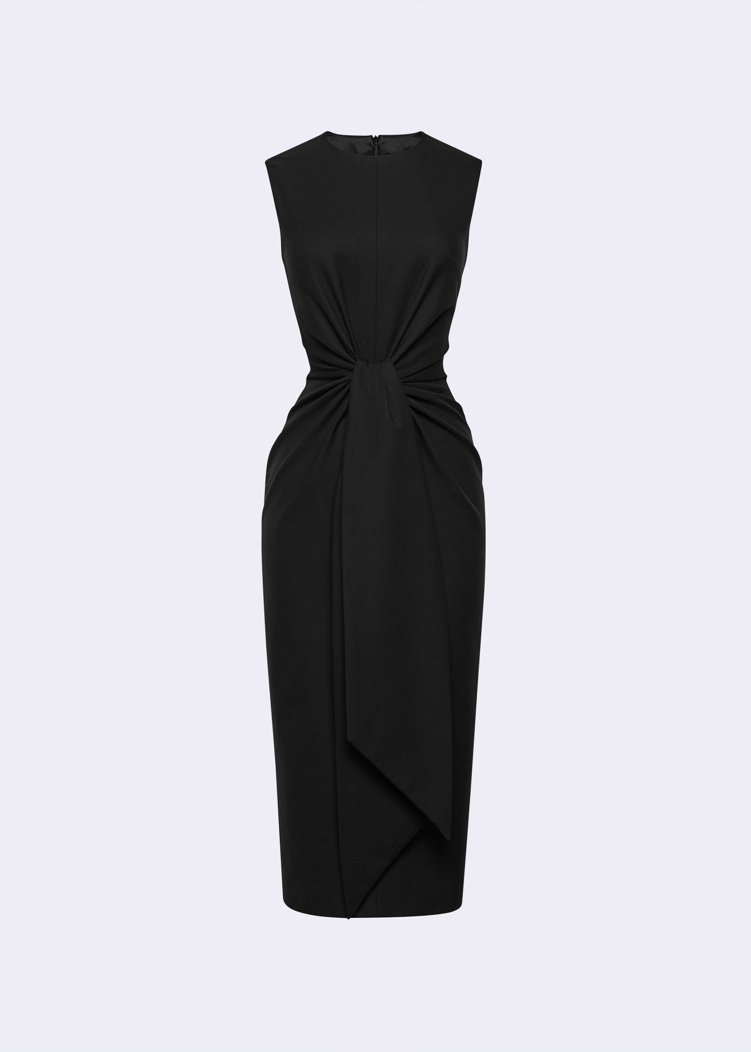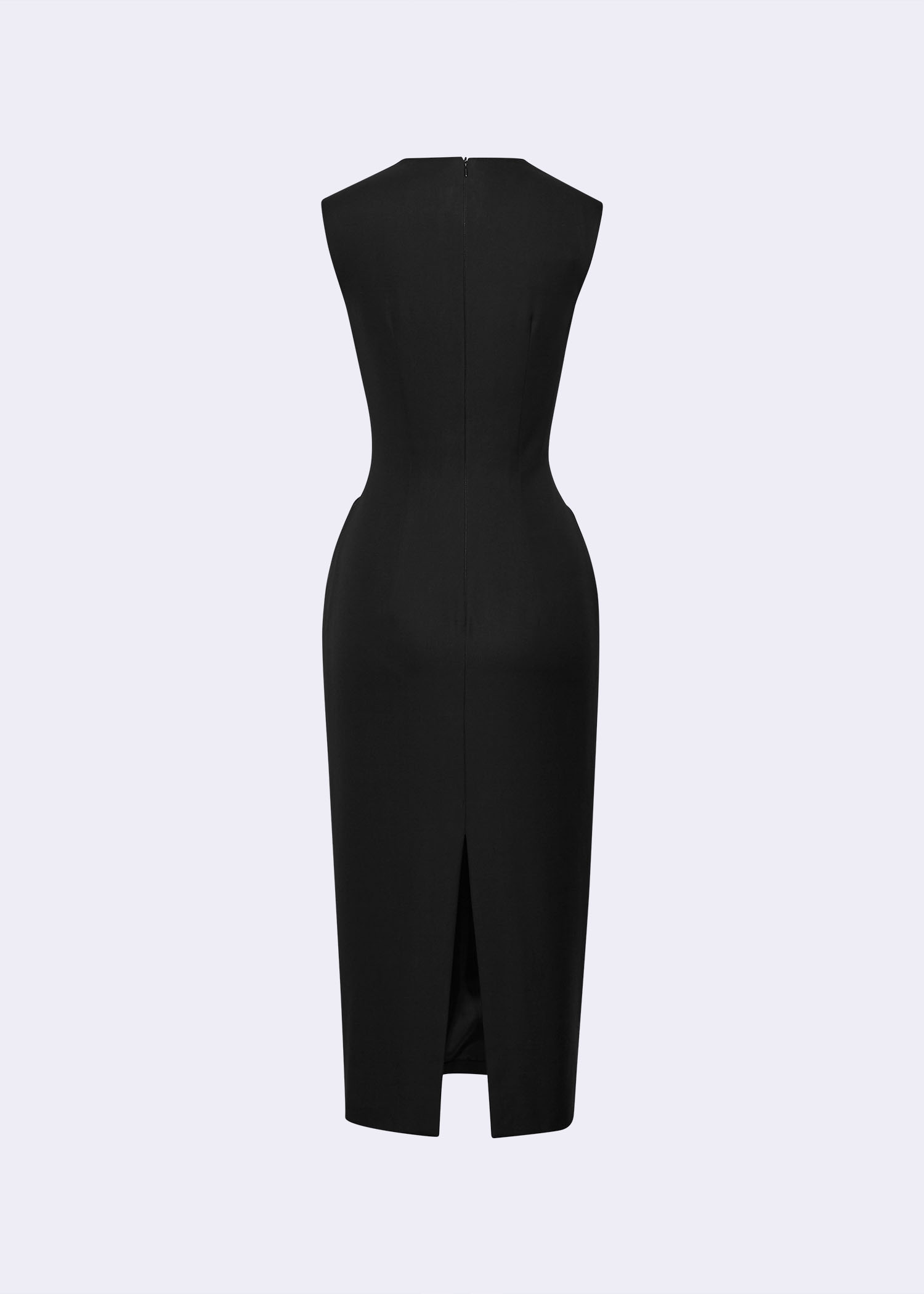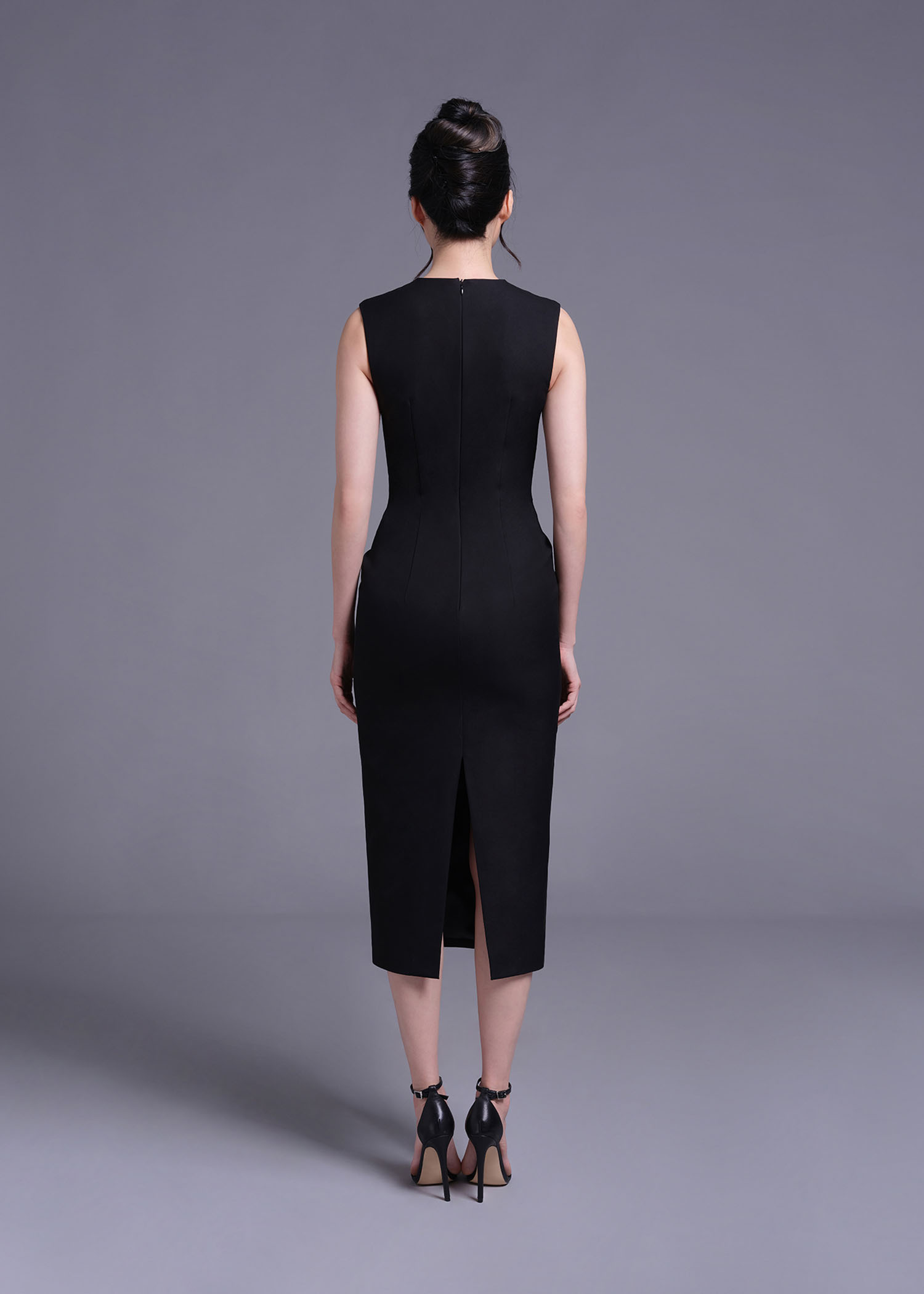 The black sheath dress is designed to flatter your silhouette with its sleek, form-fitting shape and unique waist twist detail. Crafted from a soft cotton spandex blend, it offers both comfort and flexibility, making it perfect for all-day wear. Whether you’re dressing up for a formal event, heading to the office, or going for a casual outing, this dress combines style and ease effortlessly. The twist detail at the waist adds a chic, fashionable touch, enhancing the natural curves for a timeless, elegant look.