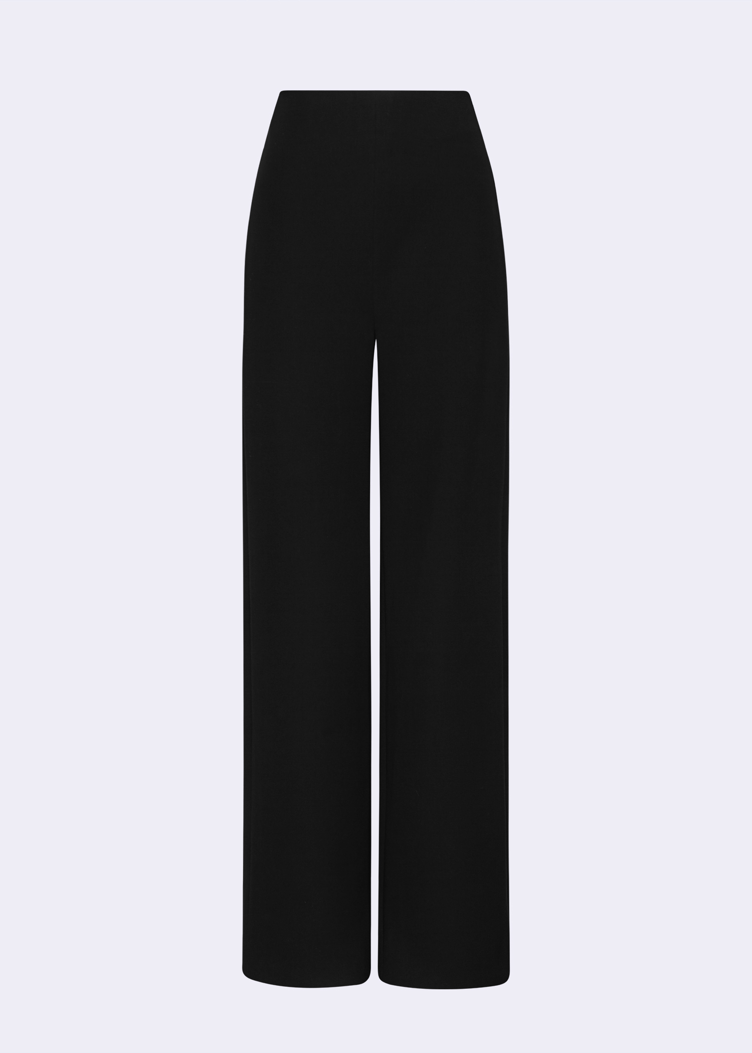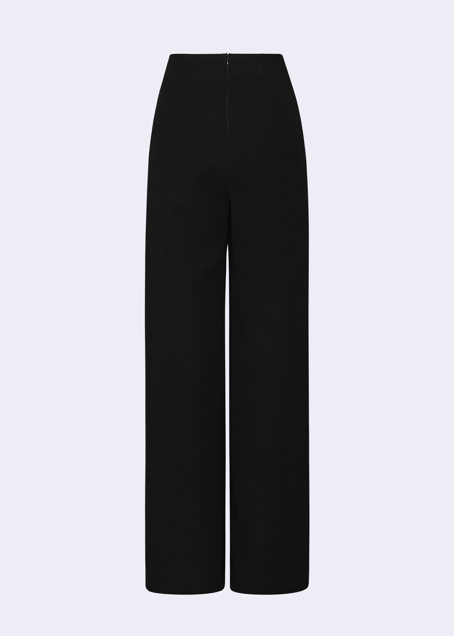 These black wide-leg pants offer a refined balance of elegance and modern tailoring. Crafted from premium polyester fabric, they feature a fluid drape and structured finish that elongates the silhouette. Designed with a high-rise waist and wide-leg cut, the pants create a confident, flattering shape ideal for contemporary power dressing. Versatile and timeless, this piece transitions effortlessly from formal occasions to elevated evening styling, making it an essential wardrobe staple.
