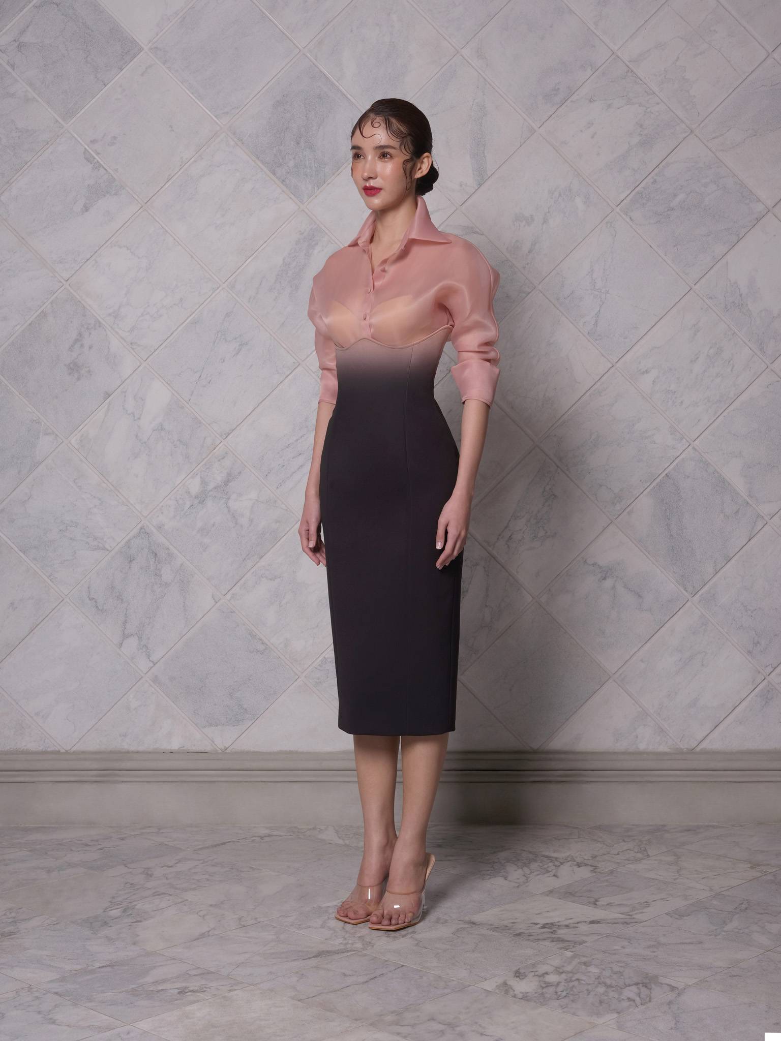 The Copper Organza Shirt, a stunning blend of modern elegance and sheer sophistication. Crafted from lightweight organza and durable polyester, this shirt is perfect for transitioning from day to night. The copper hue adds a warm, rich glow, making it ideal for formal events or elevating your everyday wardrobe. The semi-sheer fabric provides a soft, airy feel, while the tailored fit ensures a flattering silhouette. Pair it with high-waisted trousers or a sleek skirt for an effortlessly chic look.