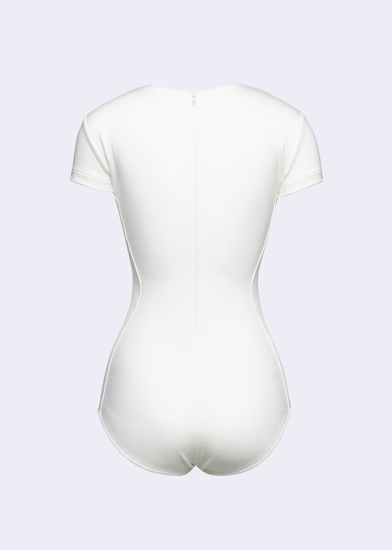 The Off-White Bodysuit combines style and comfort with its soft, stretchy fabric and flattering fit. Made from a luxurious blend of rayon and spandex, this bodysuit offers a smooth silhouette that hugs your curves, while the off-white hue adds a touch of minimalist elegance. Whether worn as a layering piece or as a statement top, it’s perfect for both casual and chic looks. The snap closure at the bottom ensures ease and convenience, making it an essential piece in any wardrobe.