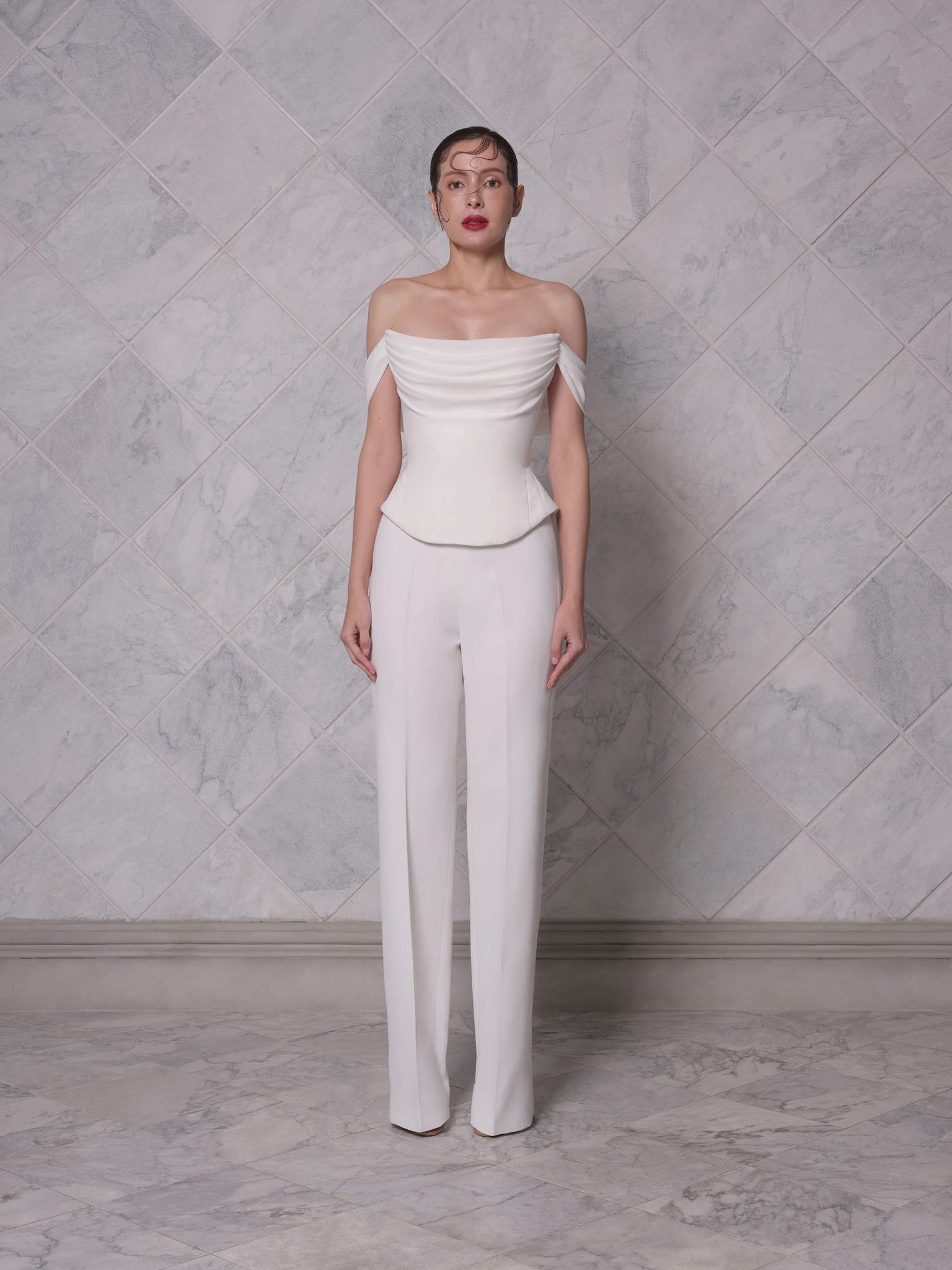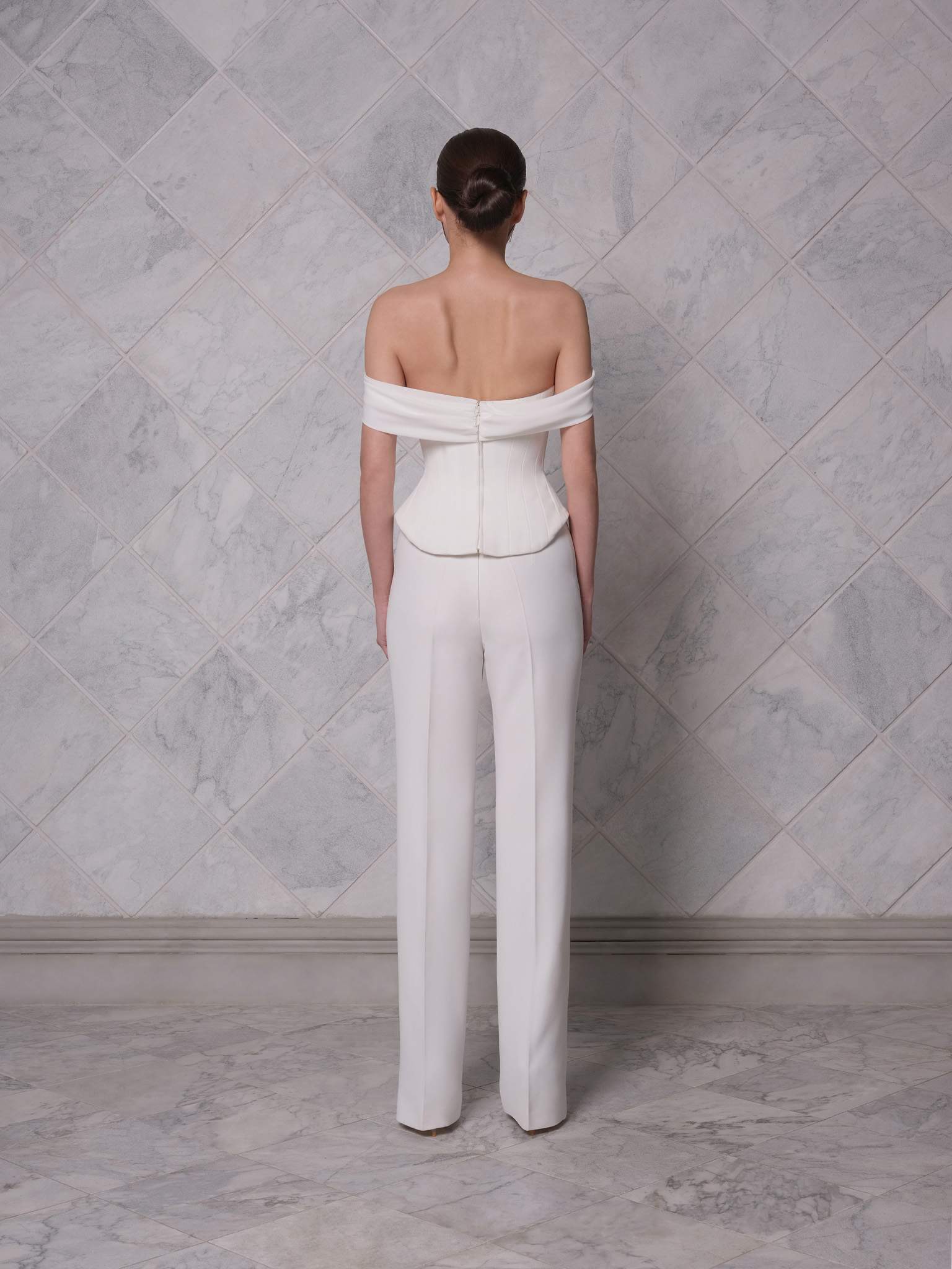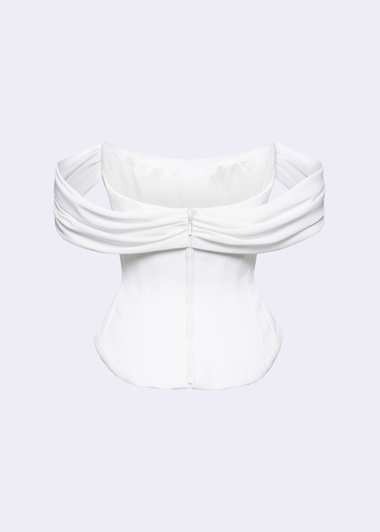 The off-white chiffon polyester off-shoulder corset top, designed for the modern woman who embraces both sophistication and style. This stunning piece is crafted from lightweight chiffon and durable polyester, offering a comfortable yet structured fit. The off-shoulder neckline adds a touch of allure, while the corset design provides a flattering, form-fitting silhouette. Perfect for special events, evening outings, or adding a chic touch to your everyday ensemble. Pair it with high-waisted skirts or trousers for a timeless look.