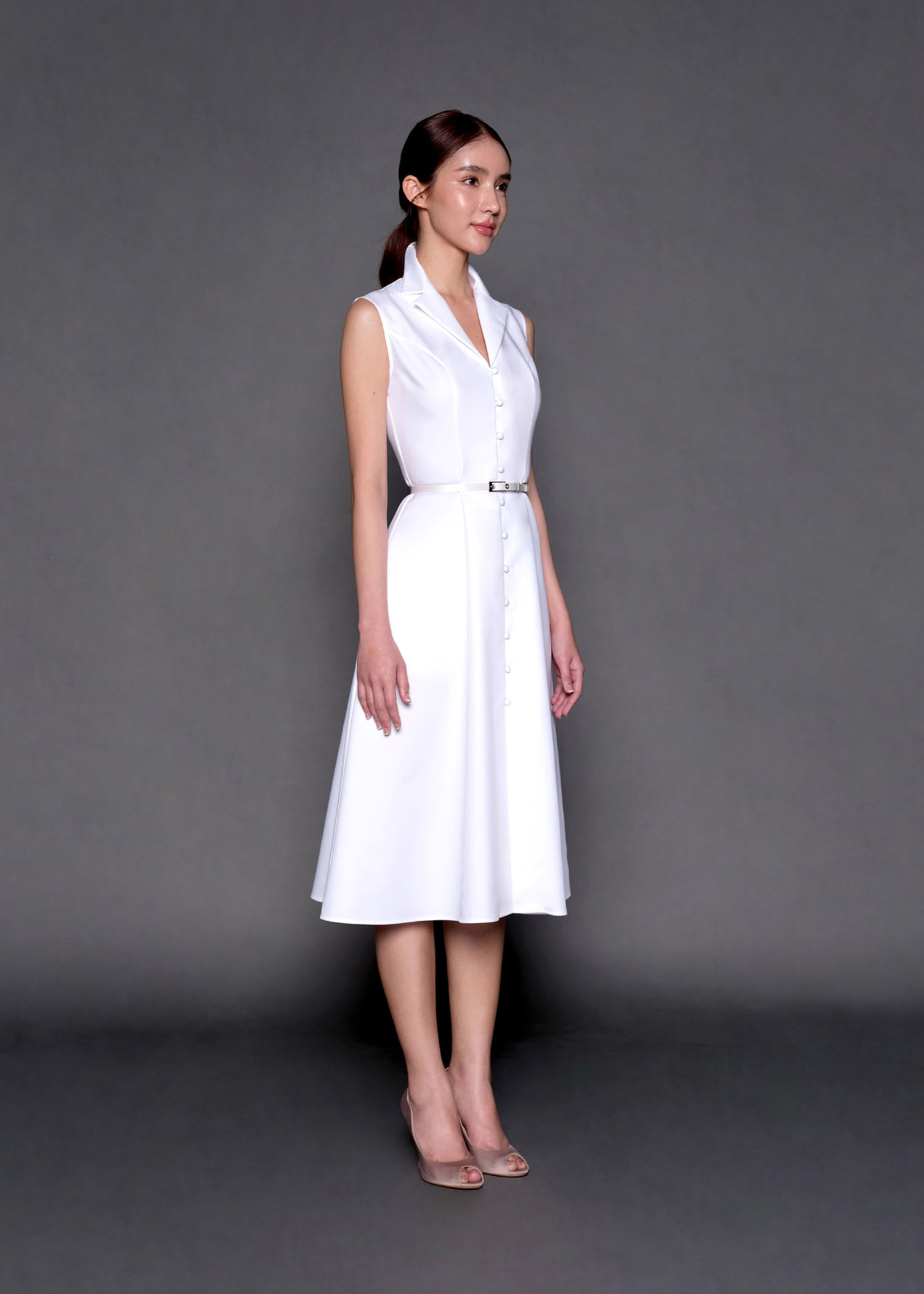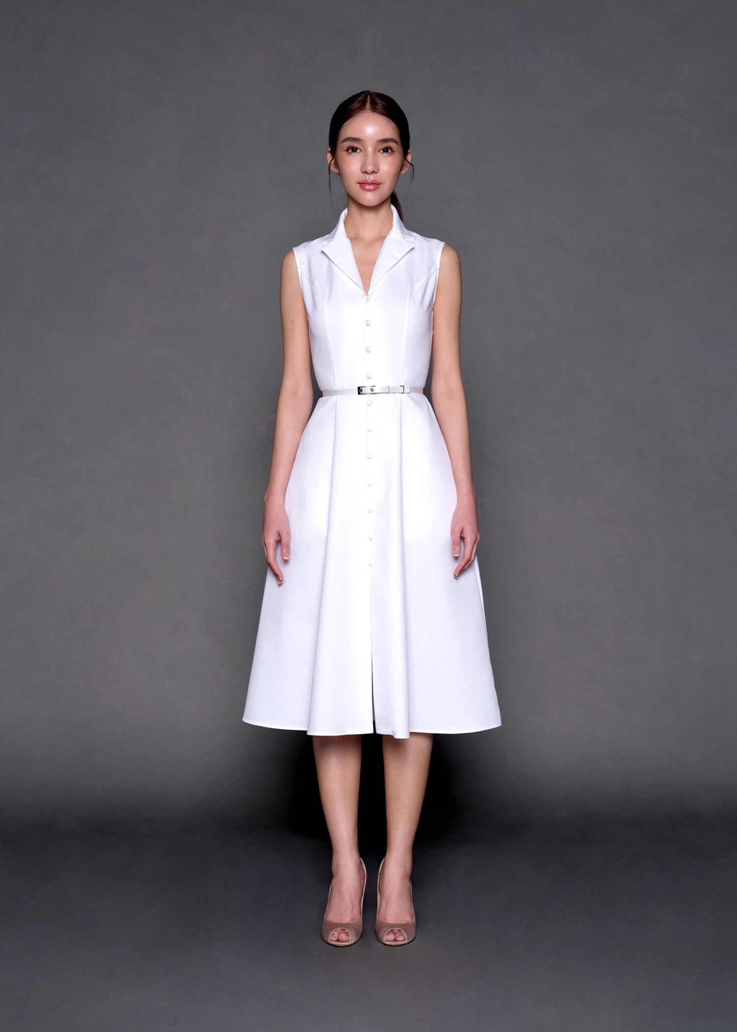 This off-white cotton sleeveless shirt dress, designed for style and comfort. Crafted from breathable cotton, this dress features a classic button-down front that adds a touch of sophistication. The versatile design makes it ideal for day-to-night transitions, whether you’re heading to brunch or a formal event. Pair it with your favorite accessories for a timeless and chic look. Available in multiple sizes for the perfect fit!