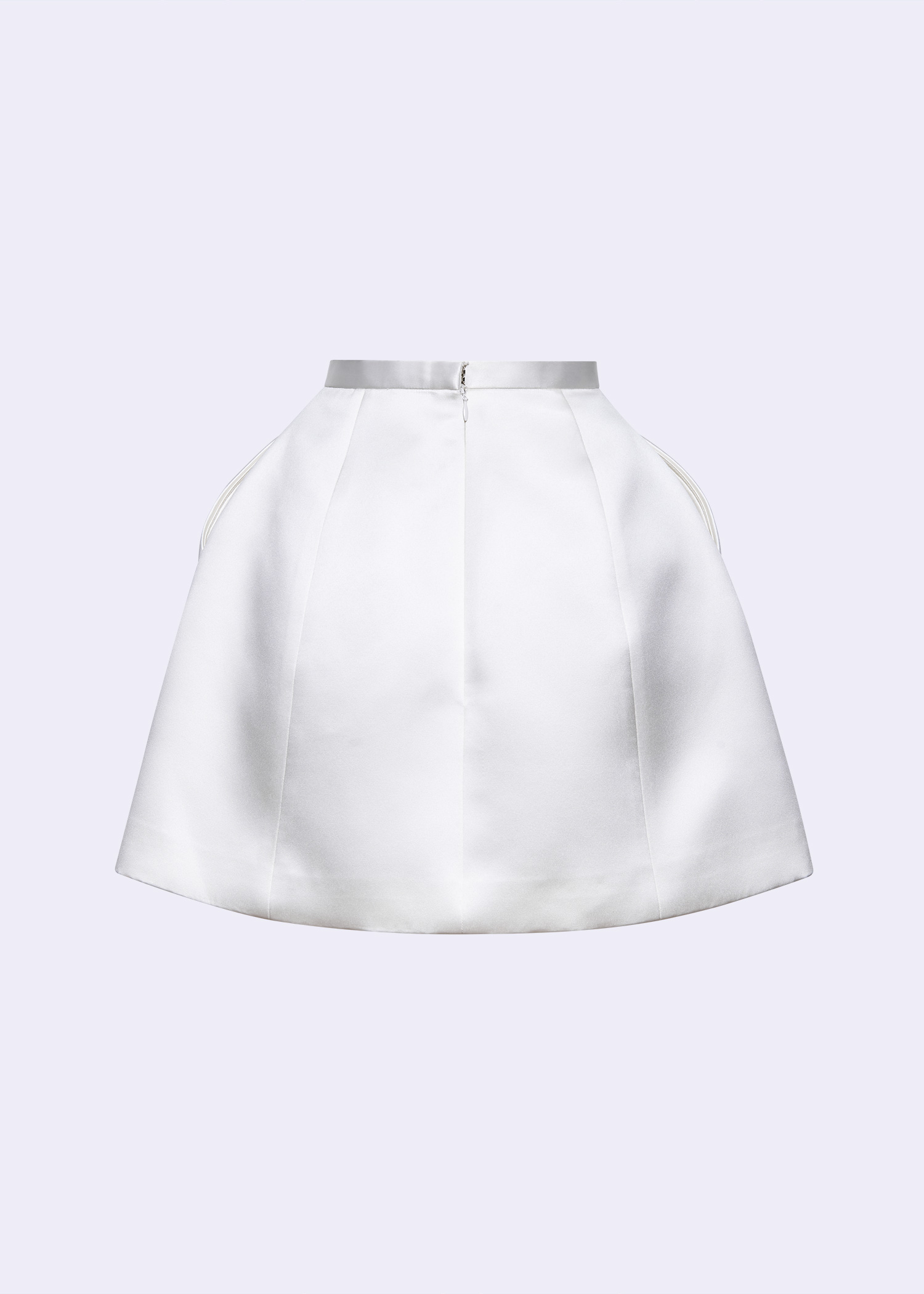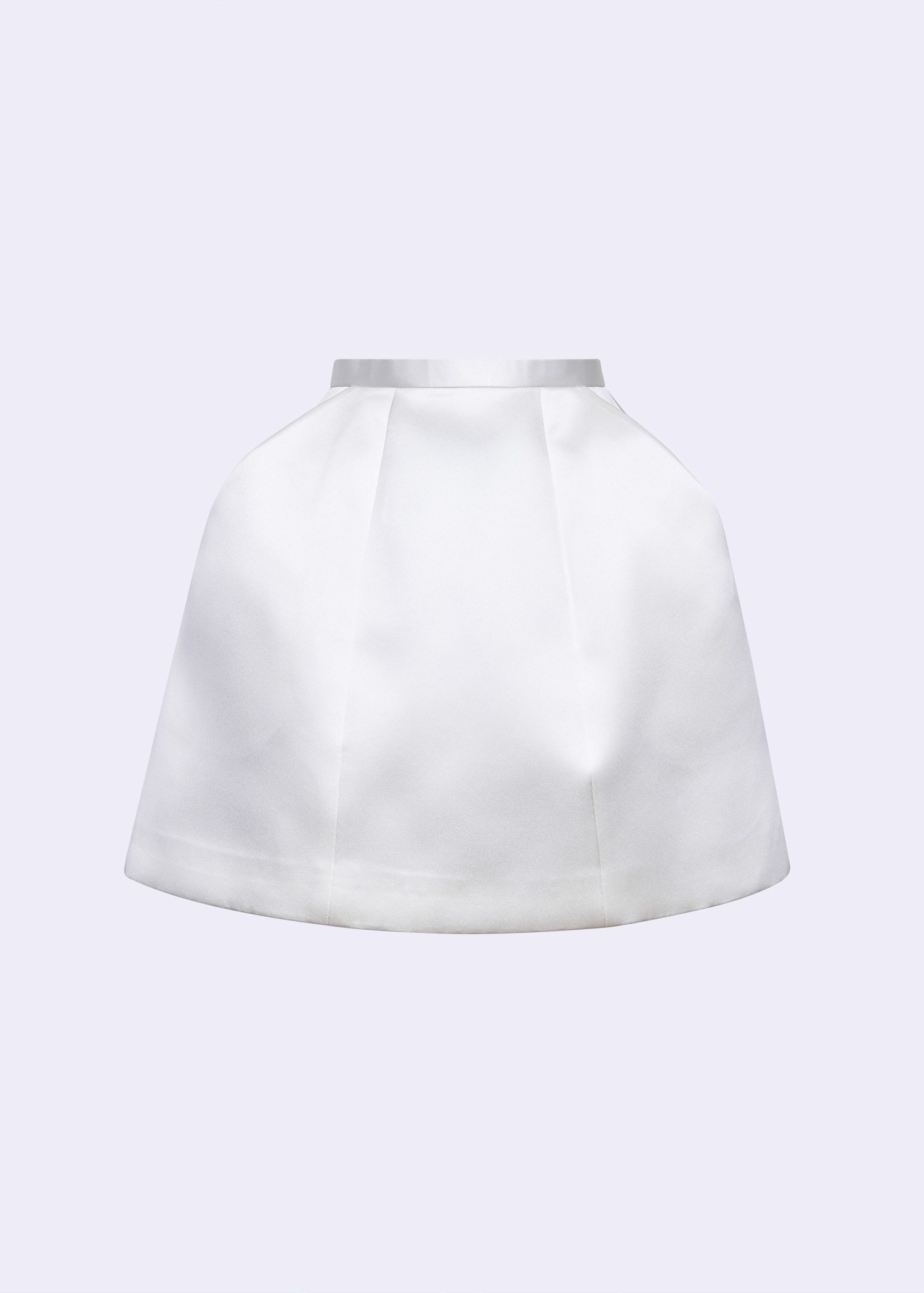 The Off-White Mini Bell Skirt, designed to exude grace and sophistication. Featuring a structured bell silhouette and a luxurious satin-crepe waistband, this mini skirt creates a flattering, feminine shape that’s perfect for special occasions or chic everyday wear. The duchess polyester fabric offers a smooth, elegant finish, while the off-white shade adds versatility and charm to any outfit. Whether paired with a blouse or a statement top, this skirt is a must-have for those who love timeless, polished fashion.