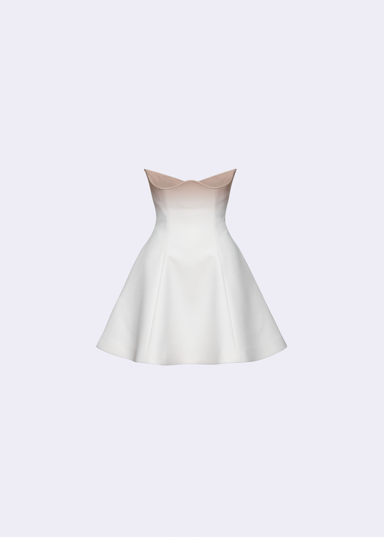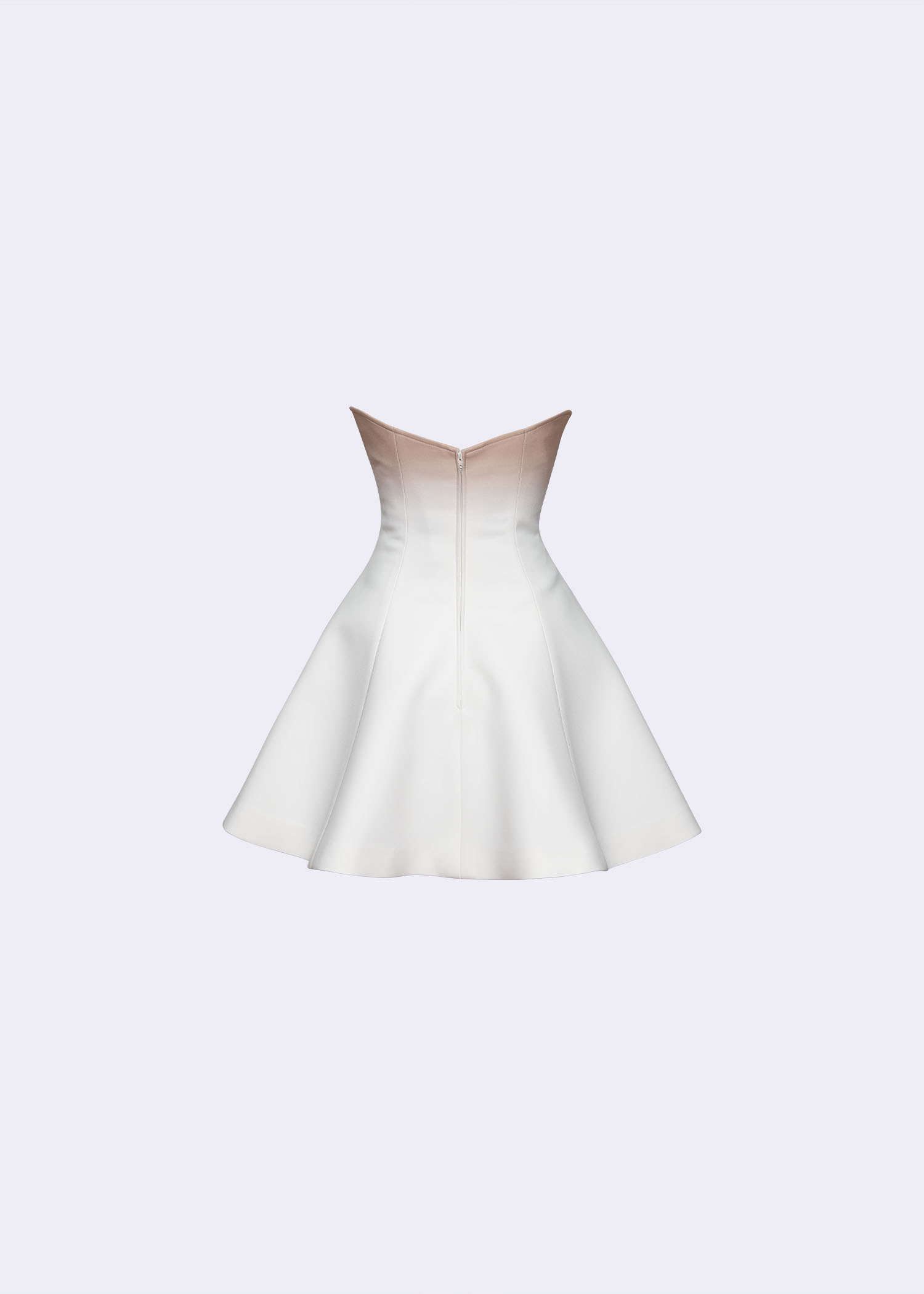 The Nude Ombre on Off-White Under-Bust Corset Mini Skirt. This exquisite skirt combines sophistication and modern flair, featuring a stunning nude ombre gradient that transitions beautifully on an off-white polyester base. The under-bust corset design adds a flattering, curve-enhancing effect, creating a sleek and confident silhouette. Perfect for evening events, special occasions, or a chic night out, this mini skirt offers a blend of comfort and style with its high-quality polyester fabric and impeccable tailoring. Pair it with a matching corset top or a classic blouse to complete the look. Embrace elegance with a twist!