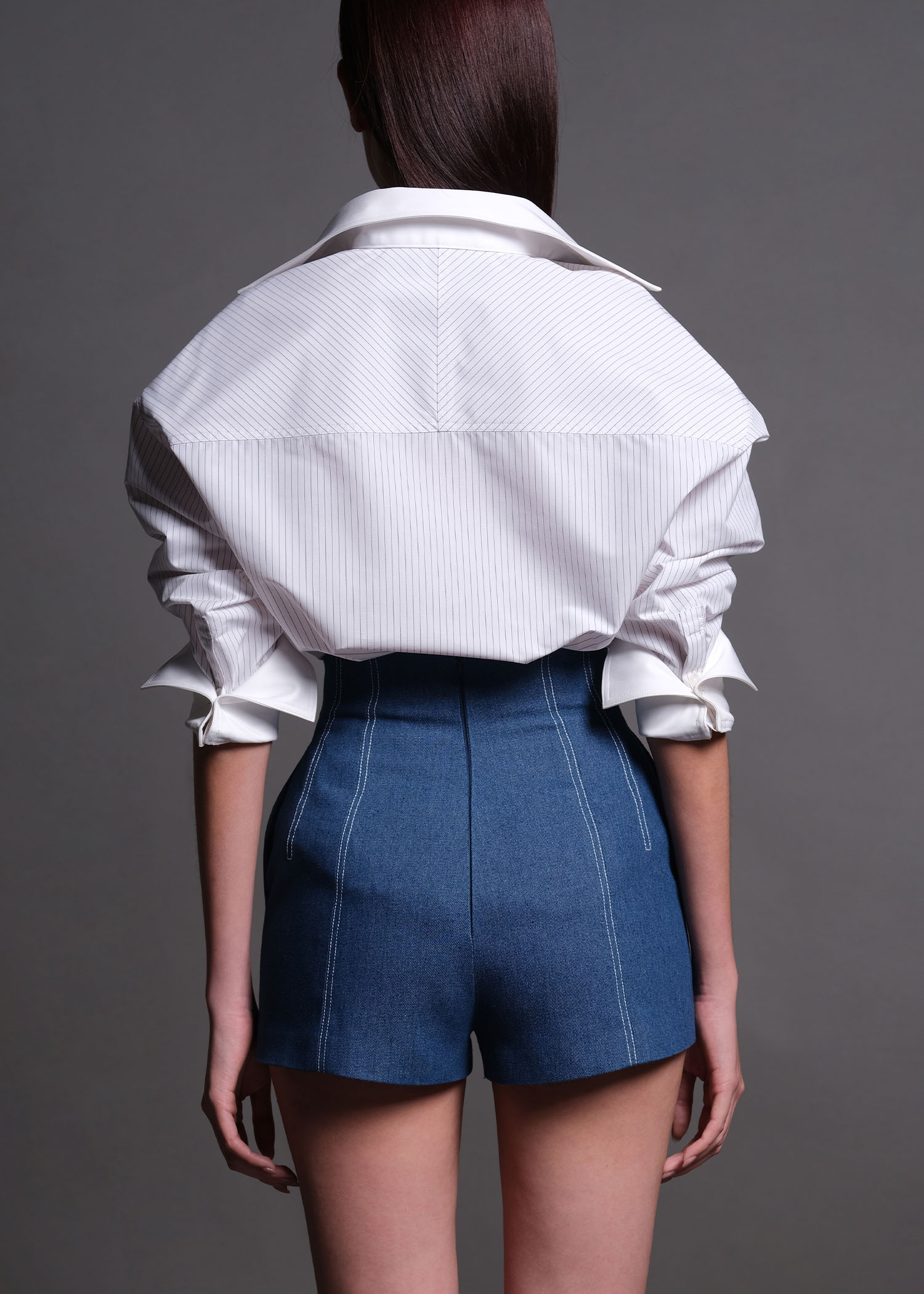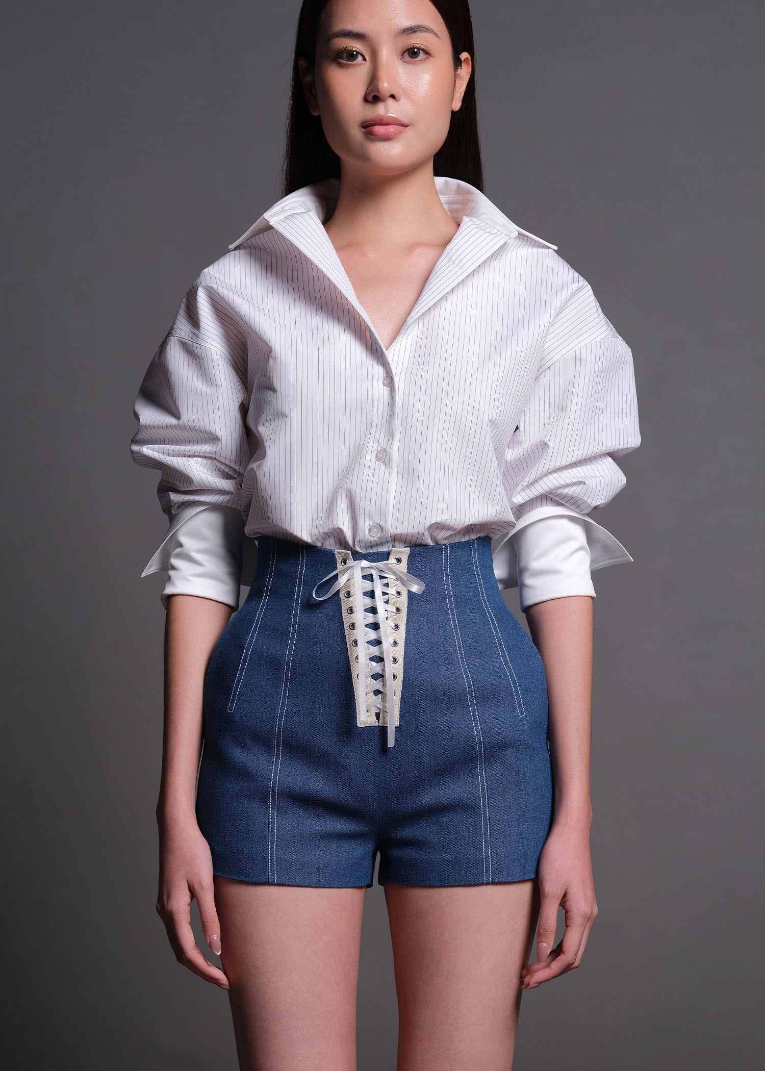 This off-white pinstripe cotton shirt, designed with a refined silhouette and timeless appeal. Crafted from premium cotton fabric, the shirt offers breathability, comfort, and a polished look suitable for both workwear and modern casual styling. Featuring subtle vertical pinstripes, a structured collar, and a clean button-down front, this shirt delivers a sophisticated balance between classic tailoring and contemporary fashion. Perfect for pairing with skirts, tailored trousers, or denim.