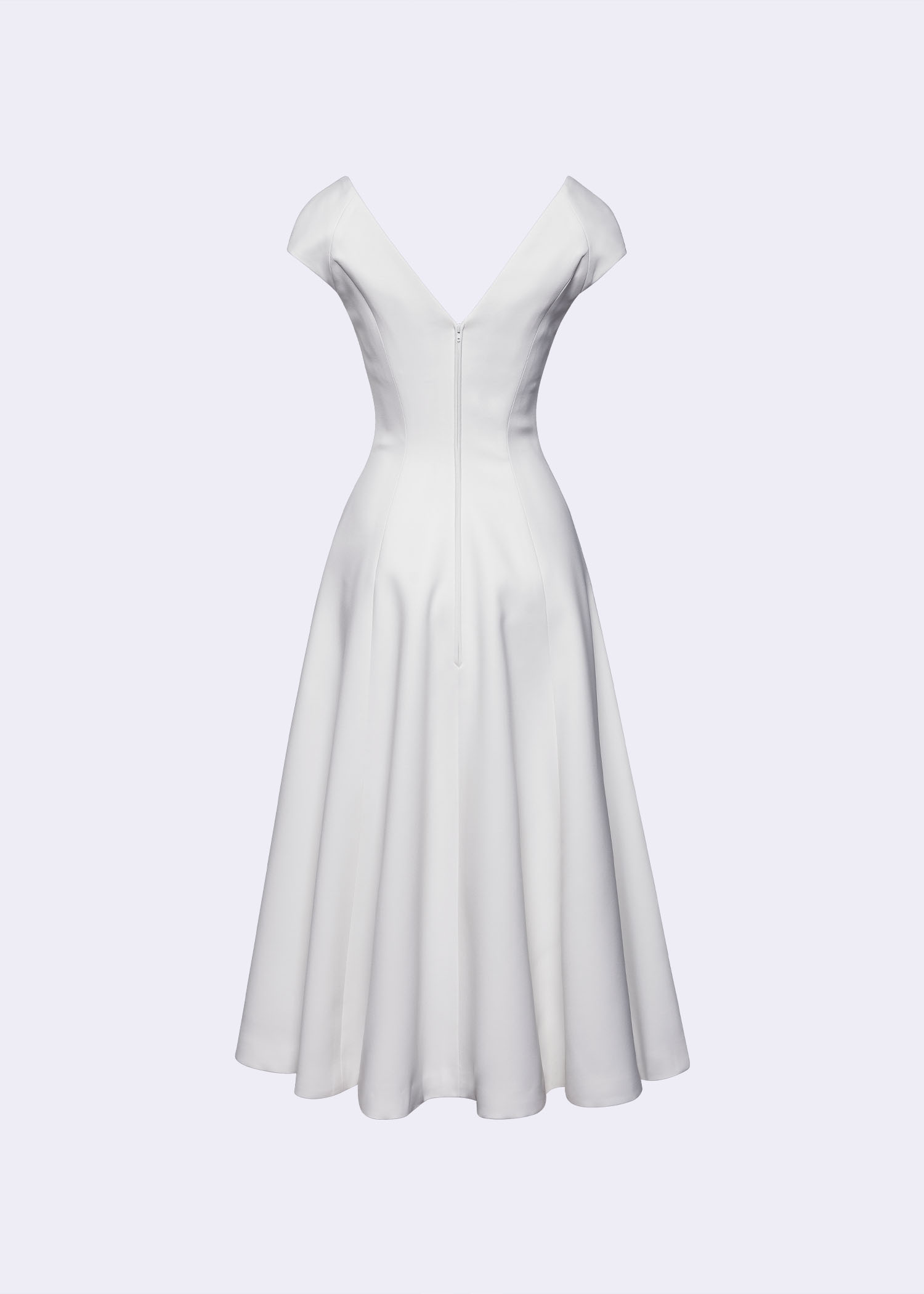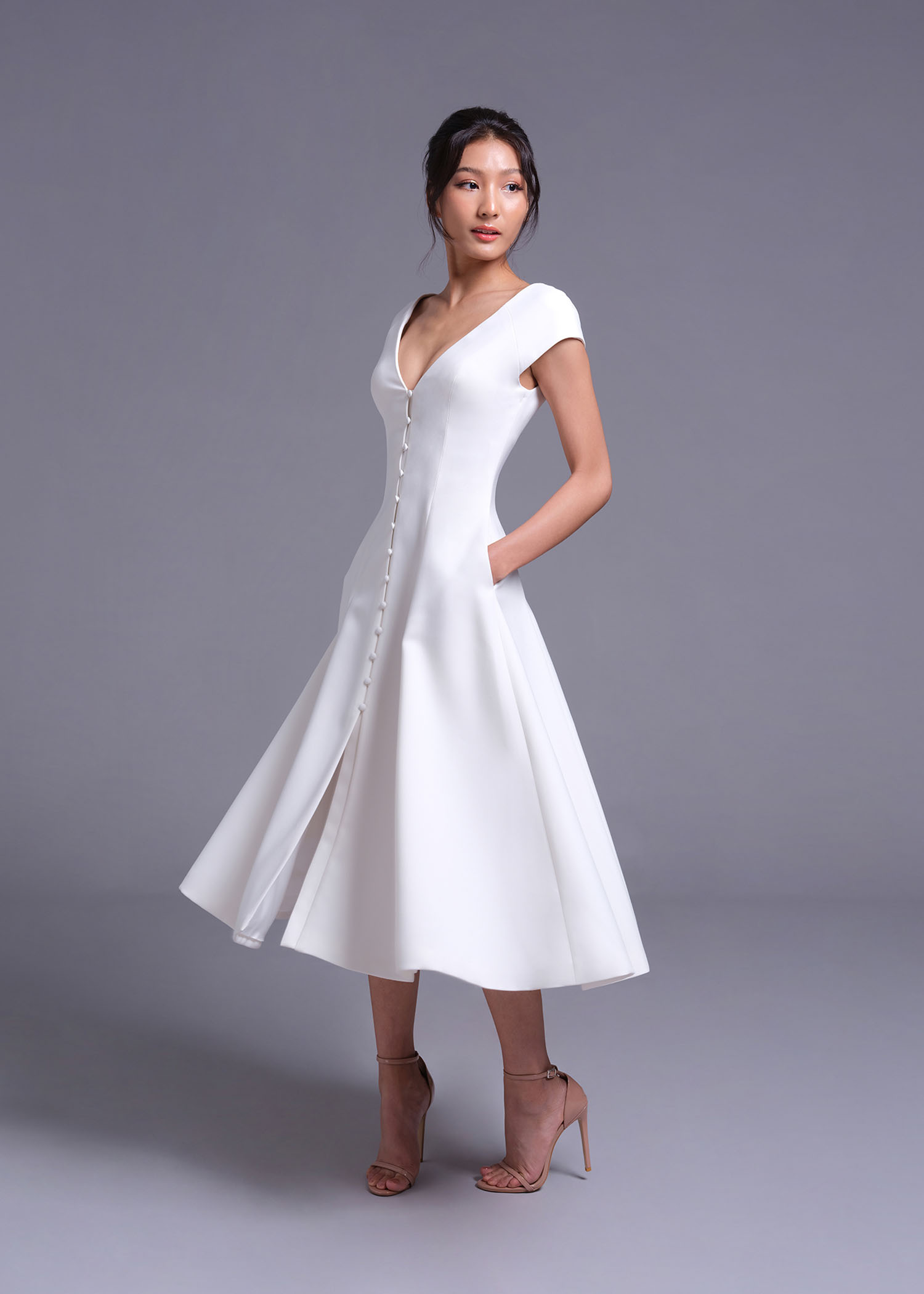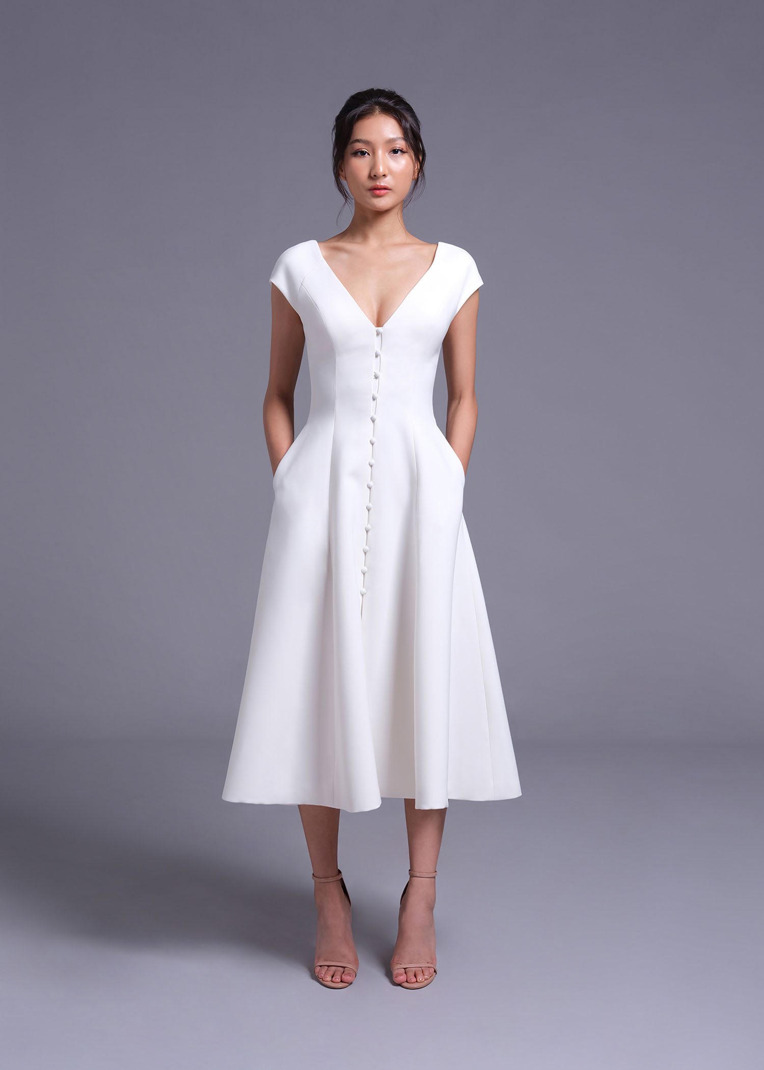 This chic off-white V-neck A-line dress. Designed for versatility, this dress features a flattering A-line silhouette that enhances your natural shape, while the button-down front adds a touch of sophistication. Made from soft, breathable polyester, it offers all-day comfort without compromising style. Whether paired with heels for a polished office look or sandals for a casual day out, this dress is a must-have for any modern wardrobe.