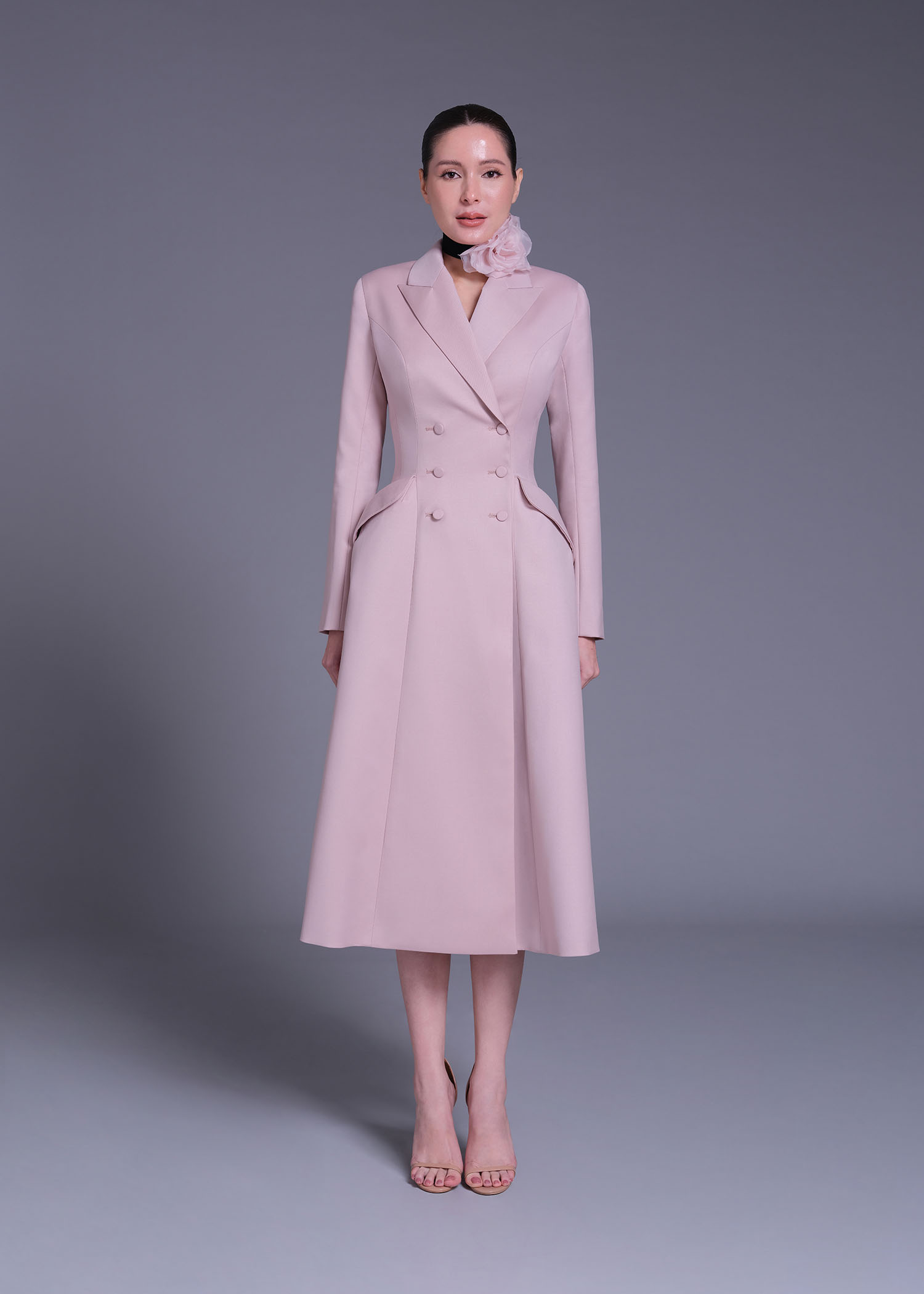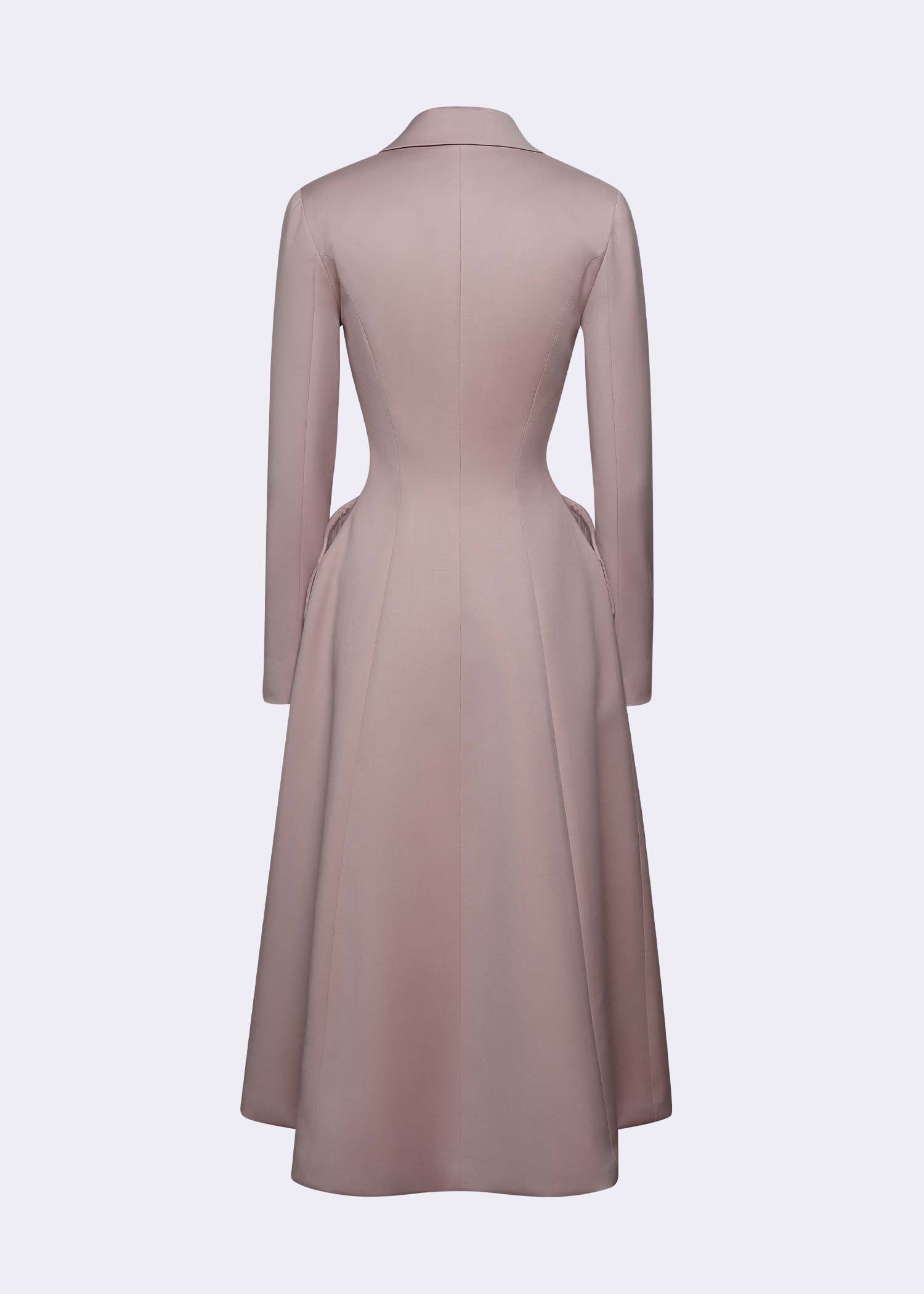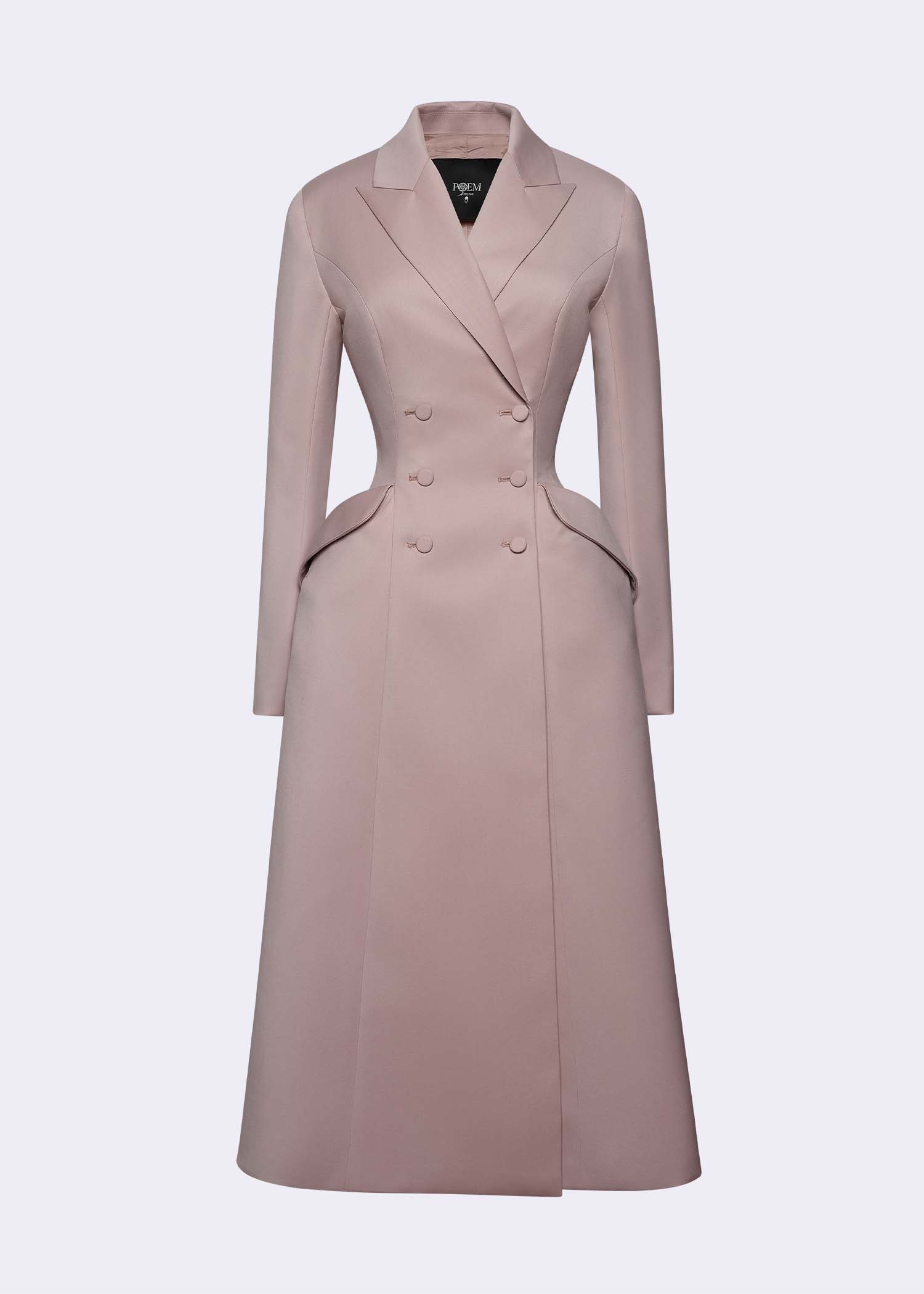 The pink wool “Cecile Brunner” double-breasted coat is a timeless statement of elegance and refined craftsmanship. Designed with a longline silhouette and structured shoulders, it highlights precision tailoring and feminine sophistication. Crafted from premium wool, its delicate blush hue evokes softness while maintaining a powerful presence. Perfect for formal occasions, transitional layering, and polished day-to-evening looks, the “Cecile Brunner” coat embodies modern classic luxury.