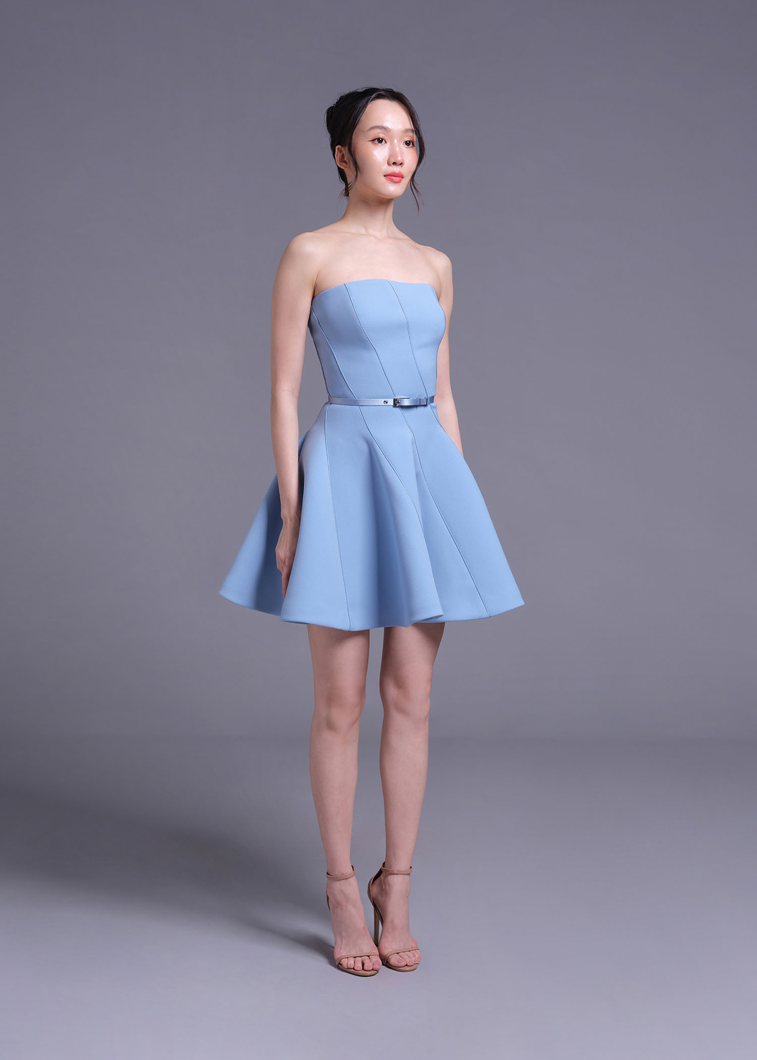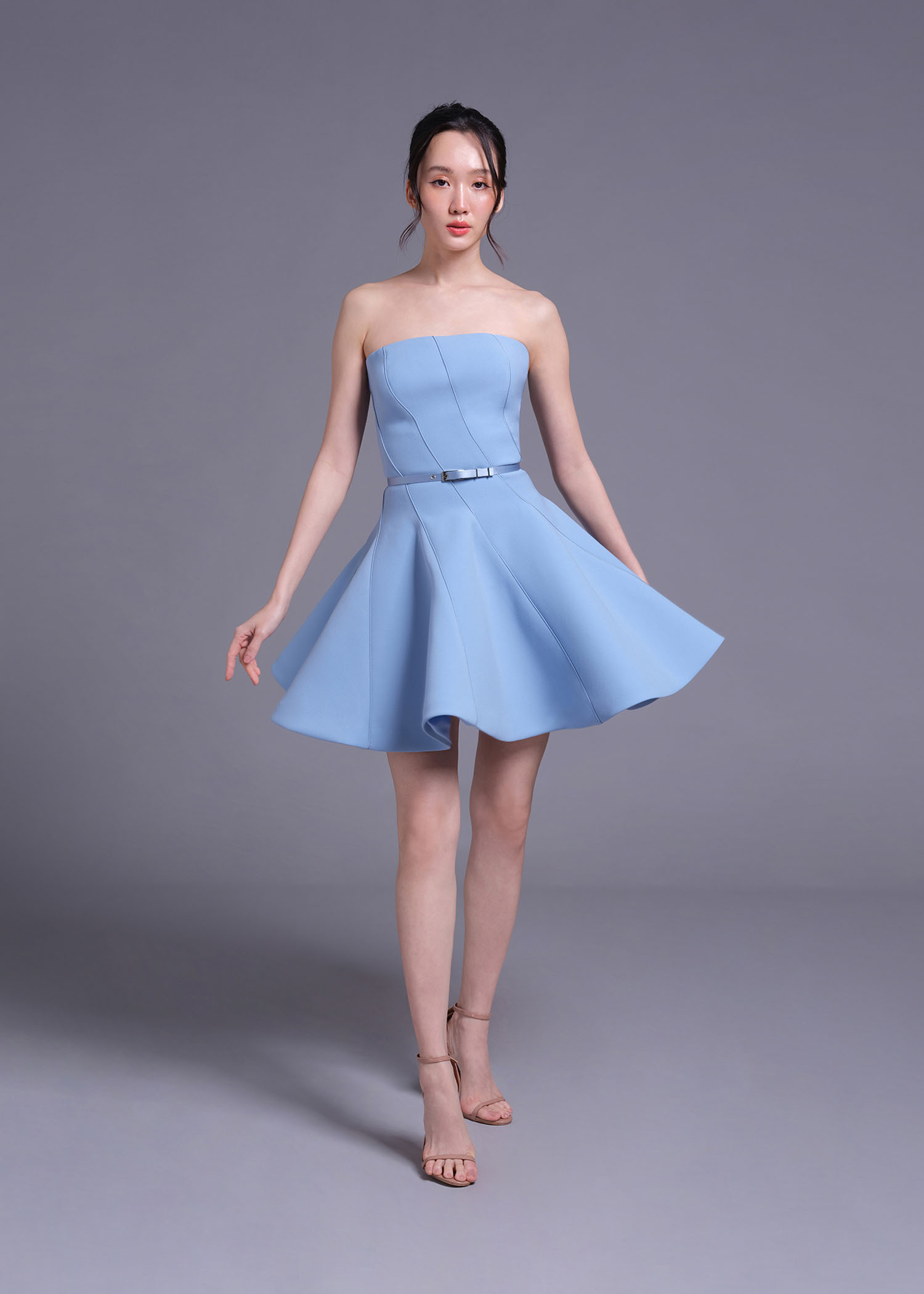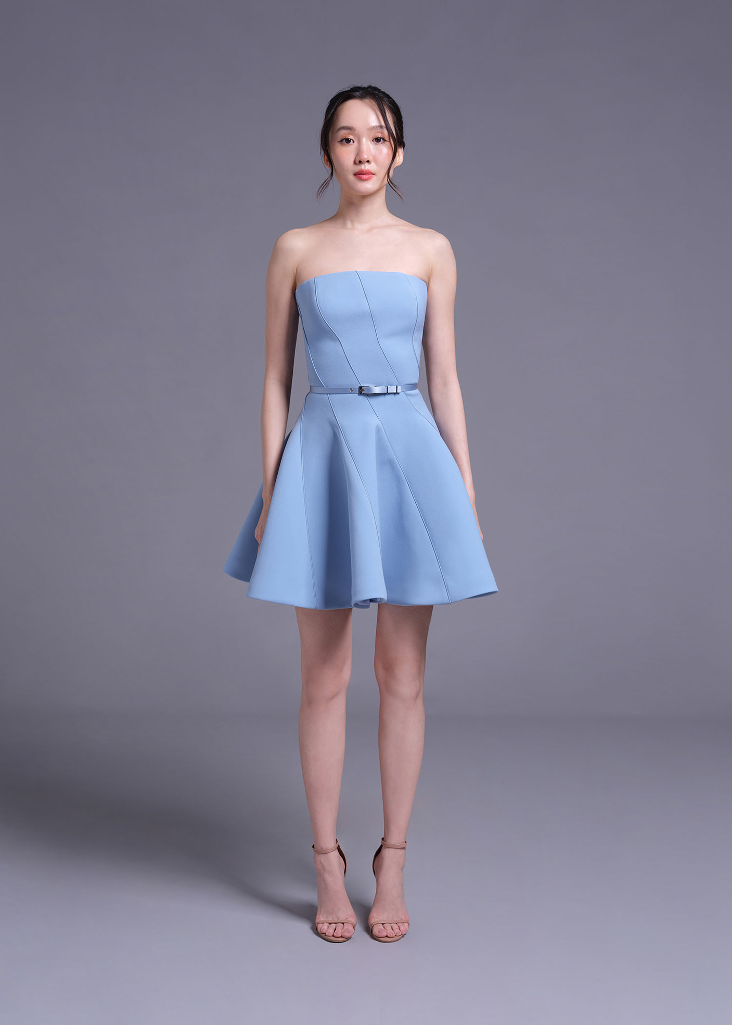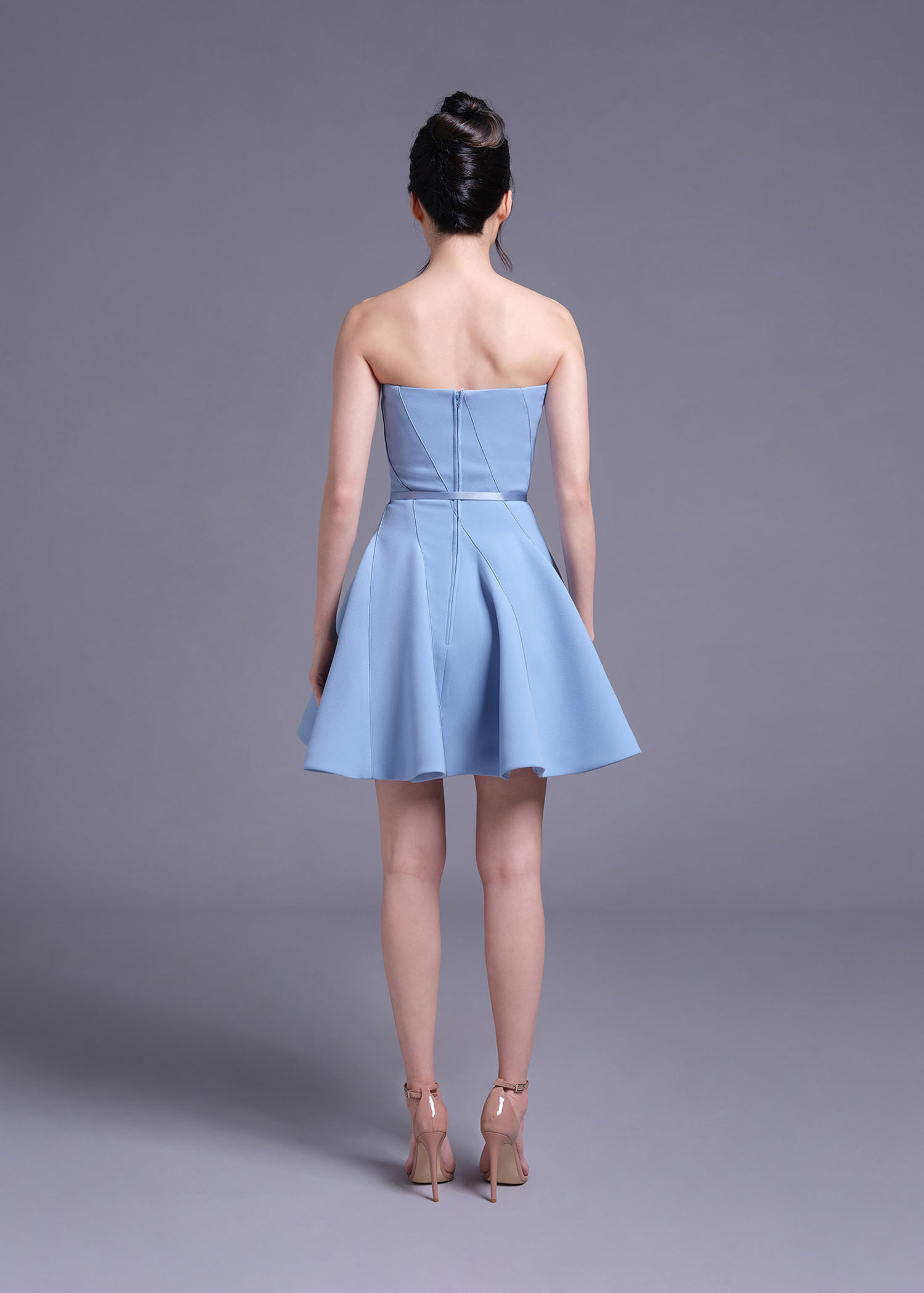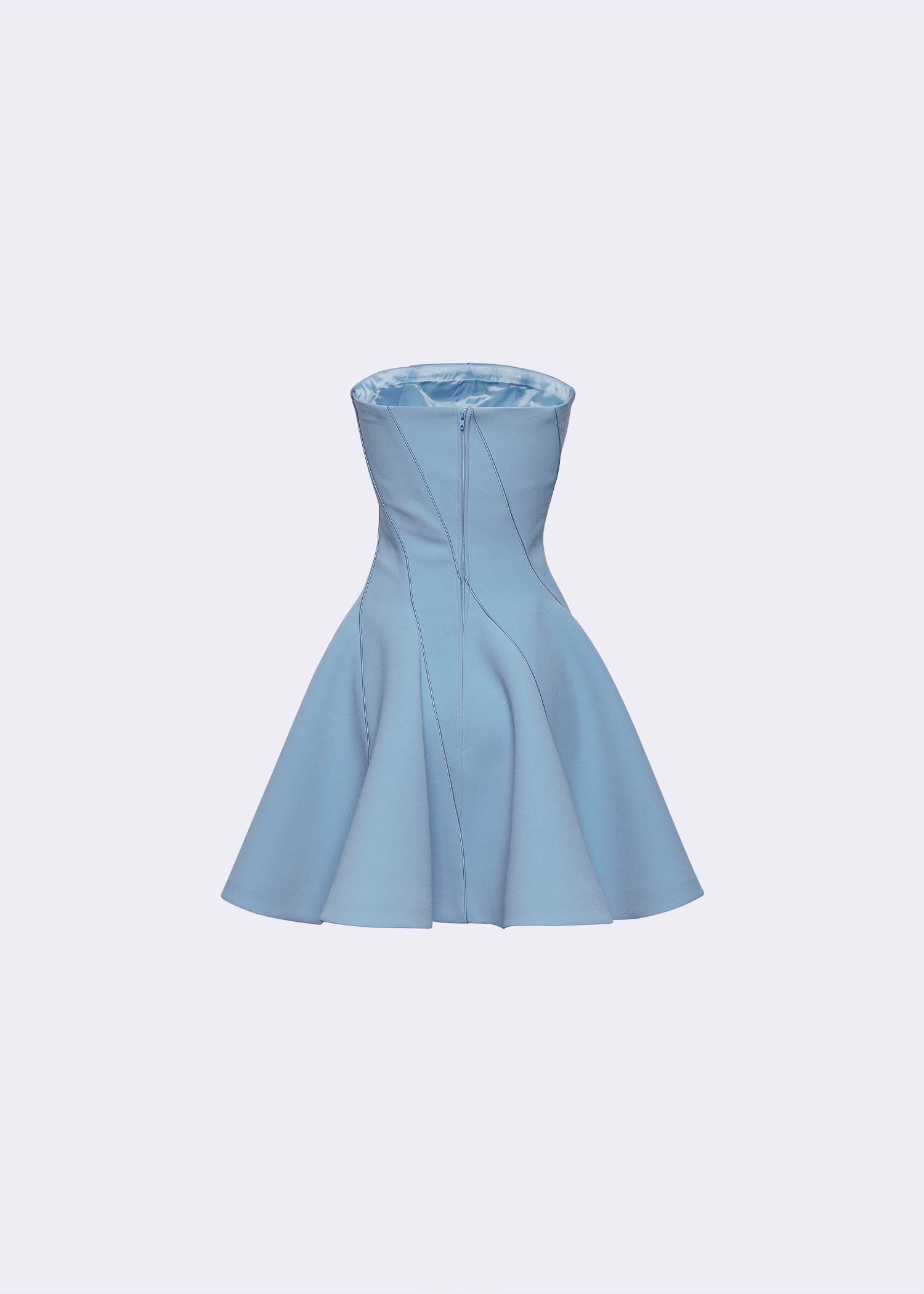 This powder-blue strapless mini dress. Featuring a unique intertwine-cut detail, this dress creates a sculpted and modern silhouette, while the strapless neckline enhances its chic appeal. The soft powder-blue shade adds a refreshing touch, perfect for special occasions, evening events, or a standout party look. Crafted from high-quality polyester, this dress offers both structure and comfort, ensuring you look stunning from every angle.