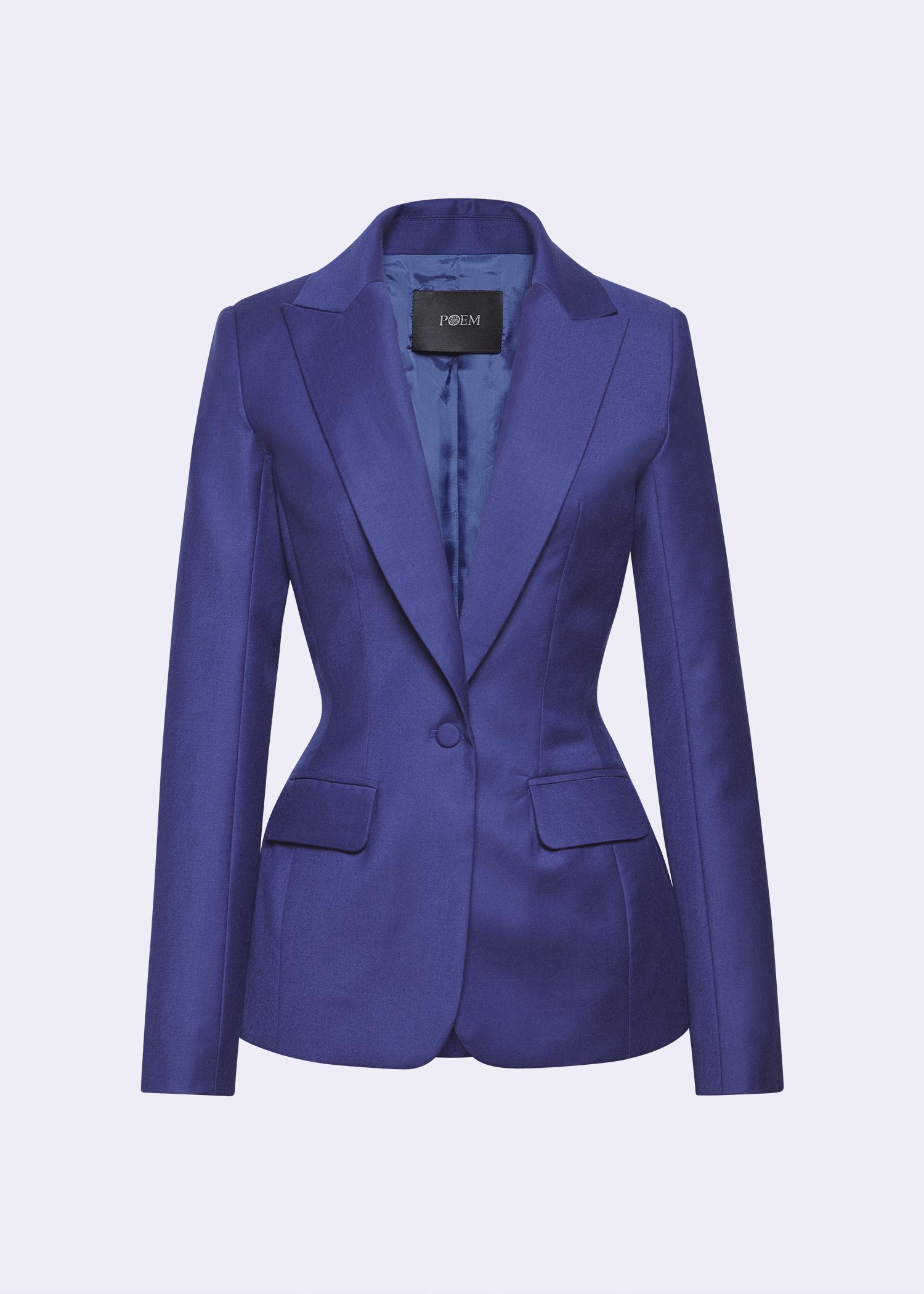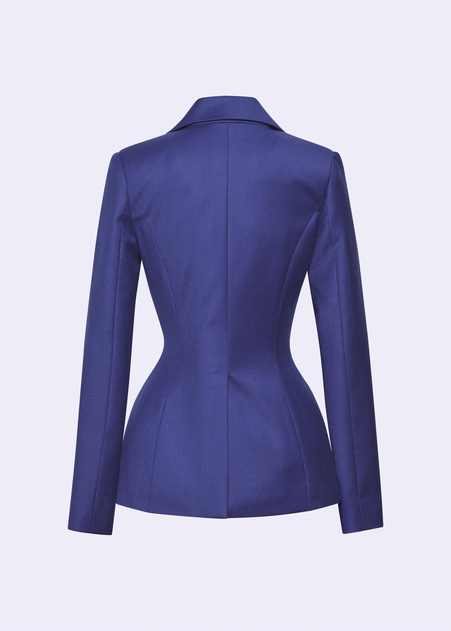 The Ultramarine Wool Le Smoking Jacket brings a modern twist to an iconic silhouette. Crafted from premium wool in a vibrant ultramarine hue, this jacket features sharp tailoring with a sleek, double-breasted design. Inspired by the classic Le Smoking style, it showcases a structured fit, sharp lapels, and precise detailing for an effortlessly chic look. Whether worn for formal occasions or evening affairs, this jacket adds a pop of color and a sense of luxury to any ensemble. Pair it with fitted trousers or a sleek dress for a statement-making look.