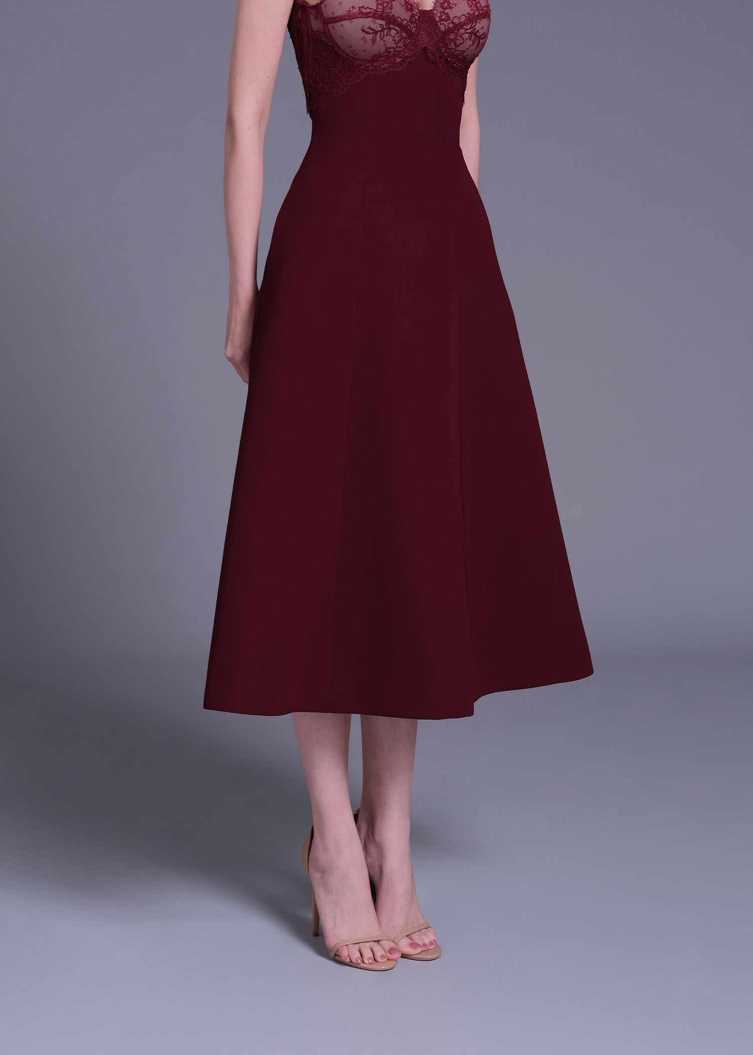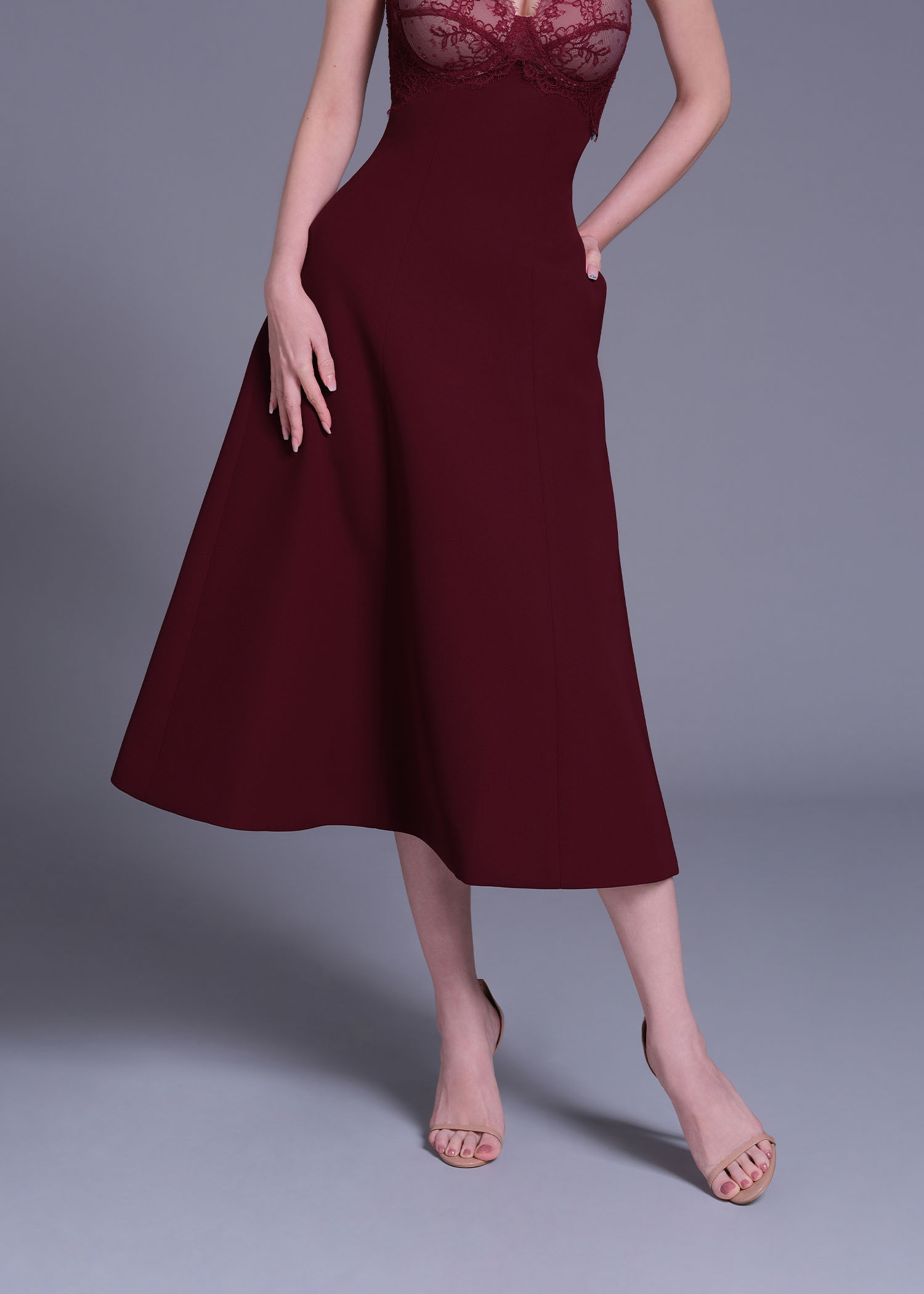 Refined yet effortless, this Wine A-Line Midi Skirt adds a touch of timeless elegance to any wardrobe. Crafted from high-quality polyester, the skirt features a fluid drape and a flattering A-line silhouette that skims the body and moves gracefully with every step. The rich wine color adds sophistication, making it ideal for both daytime affairs and evening occasions.