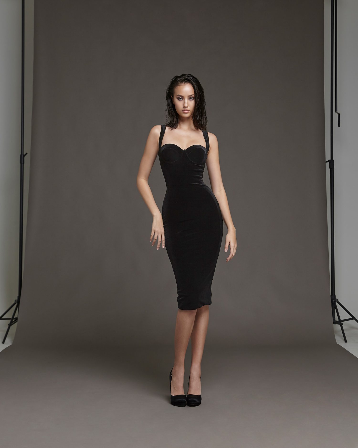 Black “Charles de Nervous” Halter Dress with Satin-Crepe Detail
