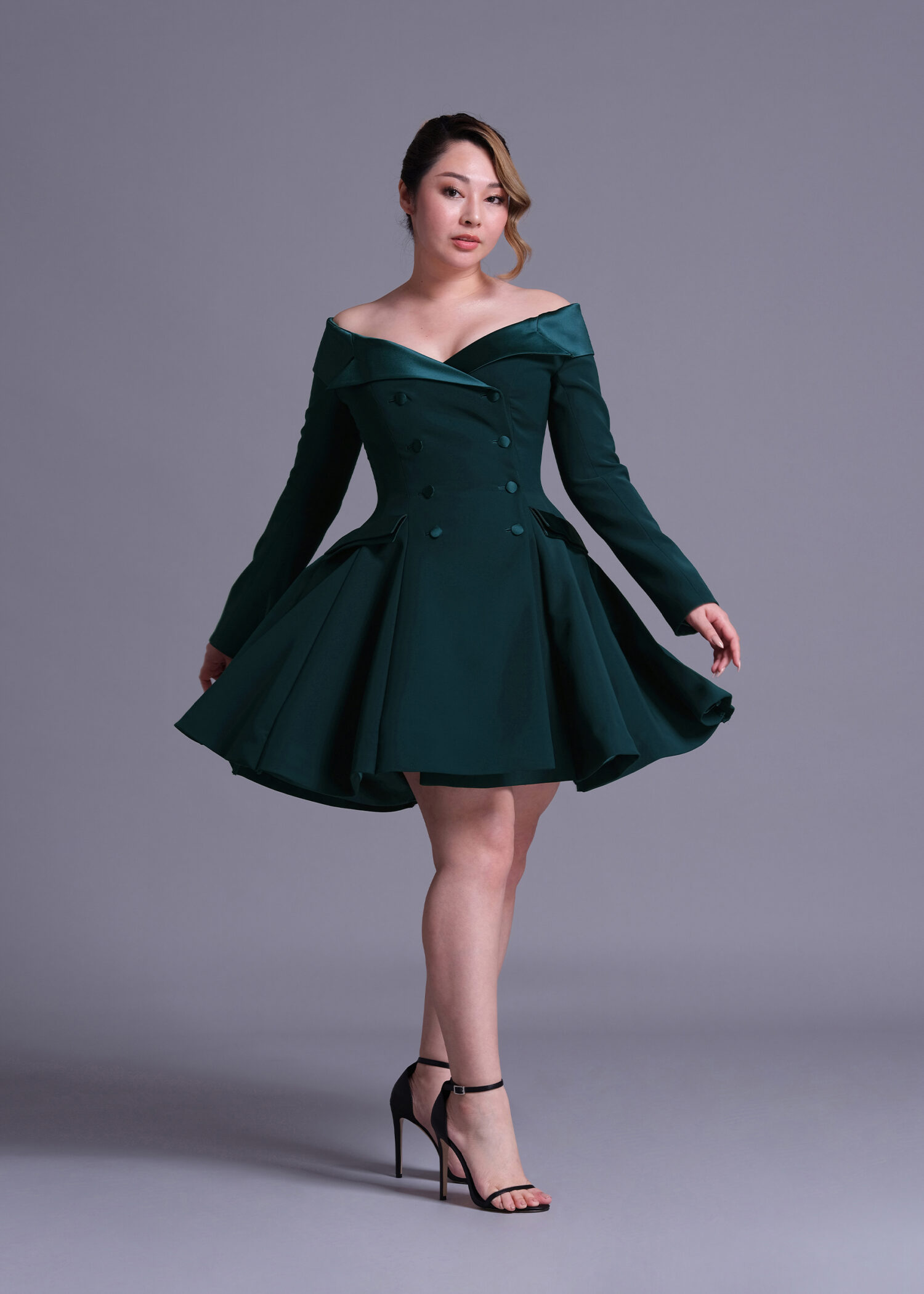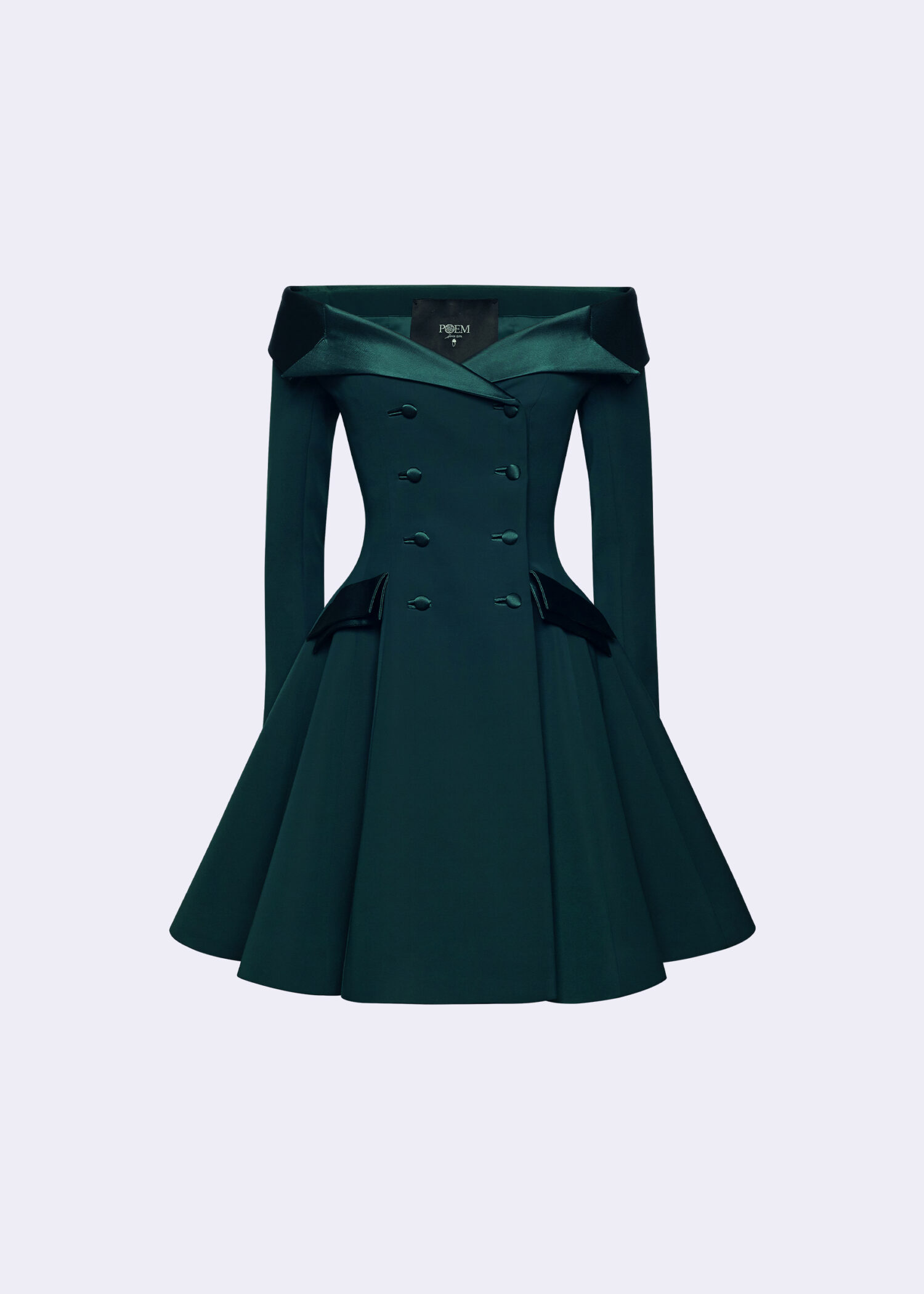 Navy Wool Double-Breasted Off-Shoulder Jacket
