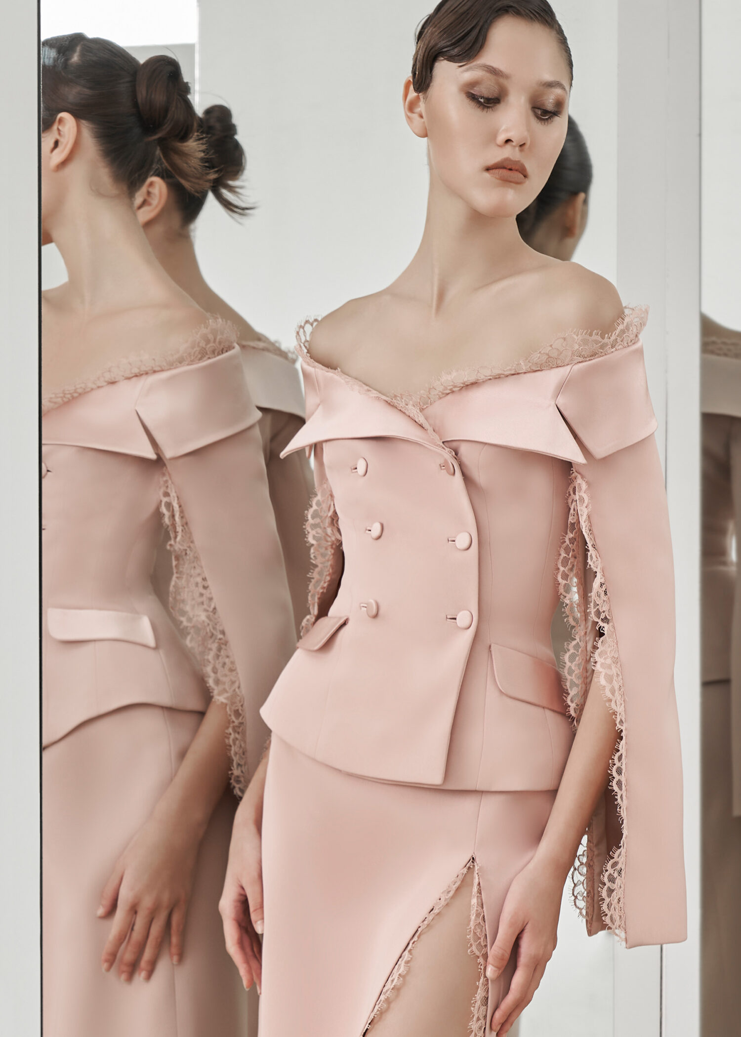 Pink Wool “Cecile Brunner” Double-Breasted Coat