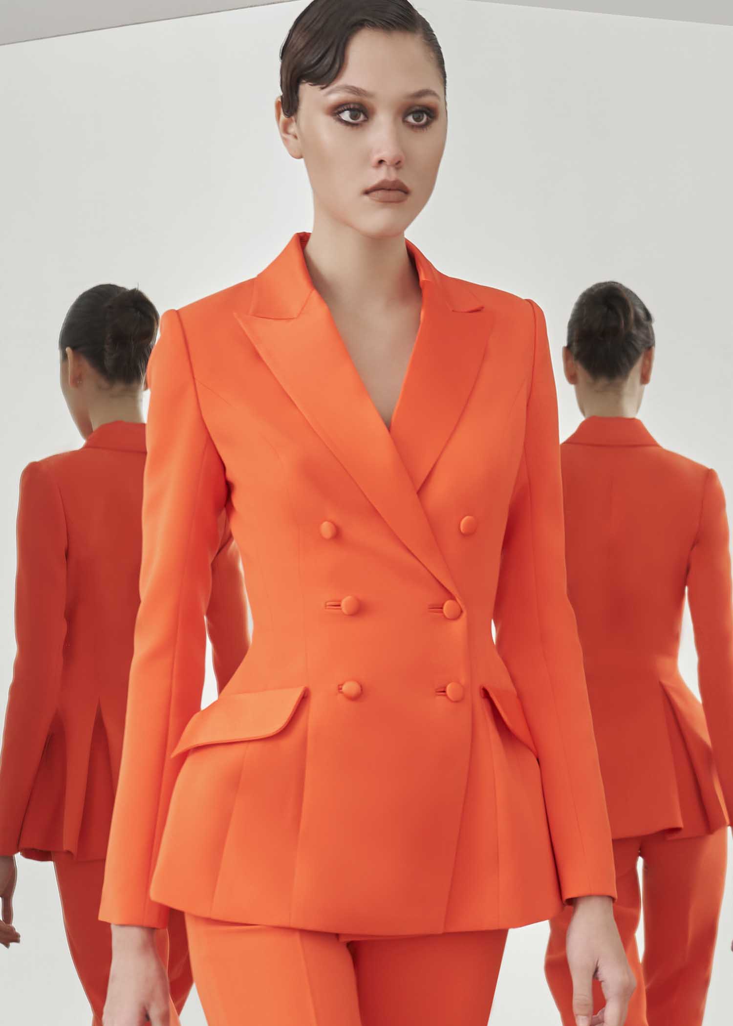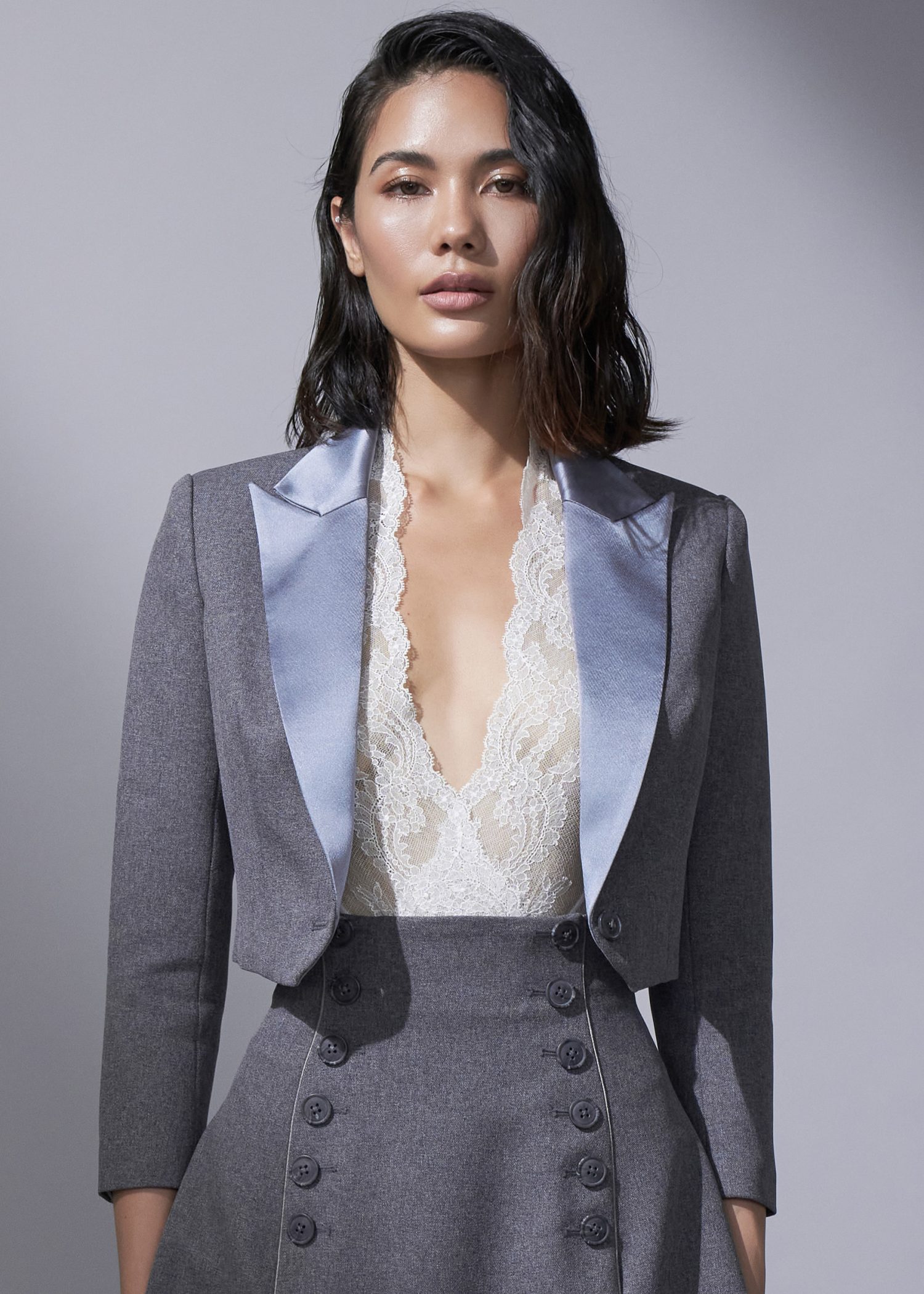 Navy Satin-Crepe “Ebb Tide” Double Layer Waist Jacket