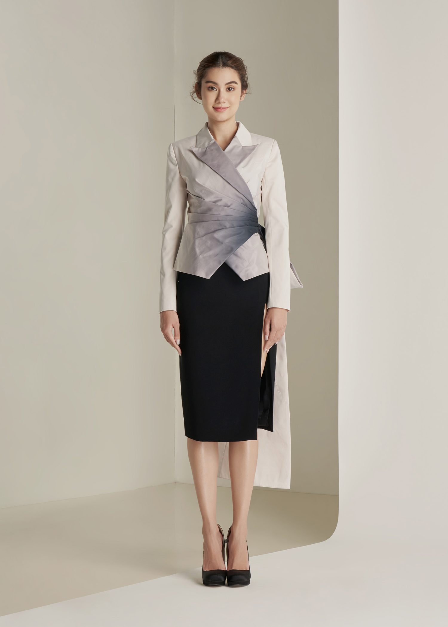 Black & White Ombre “Charon” Double-Breasted Le Smoking Jacket