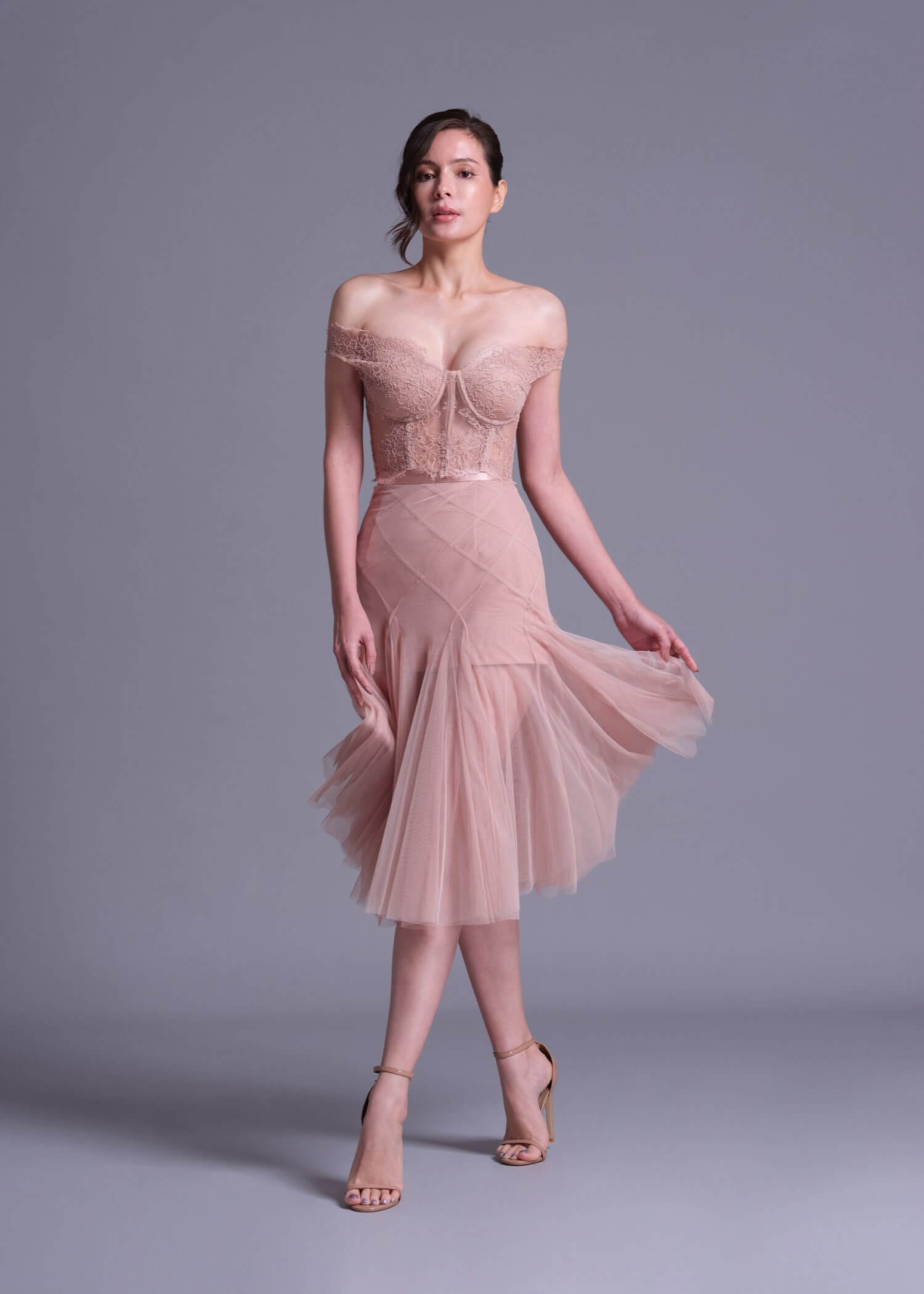 Pink Soft Net Double Layer Intertwine-Cut Skirt